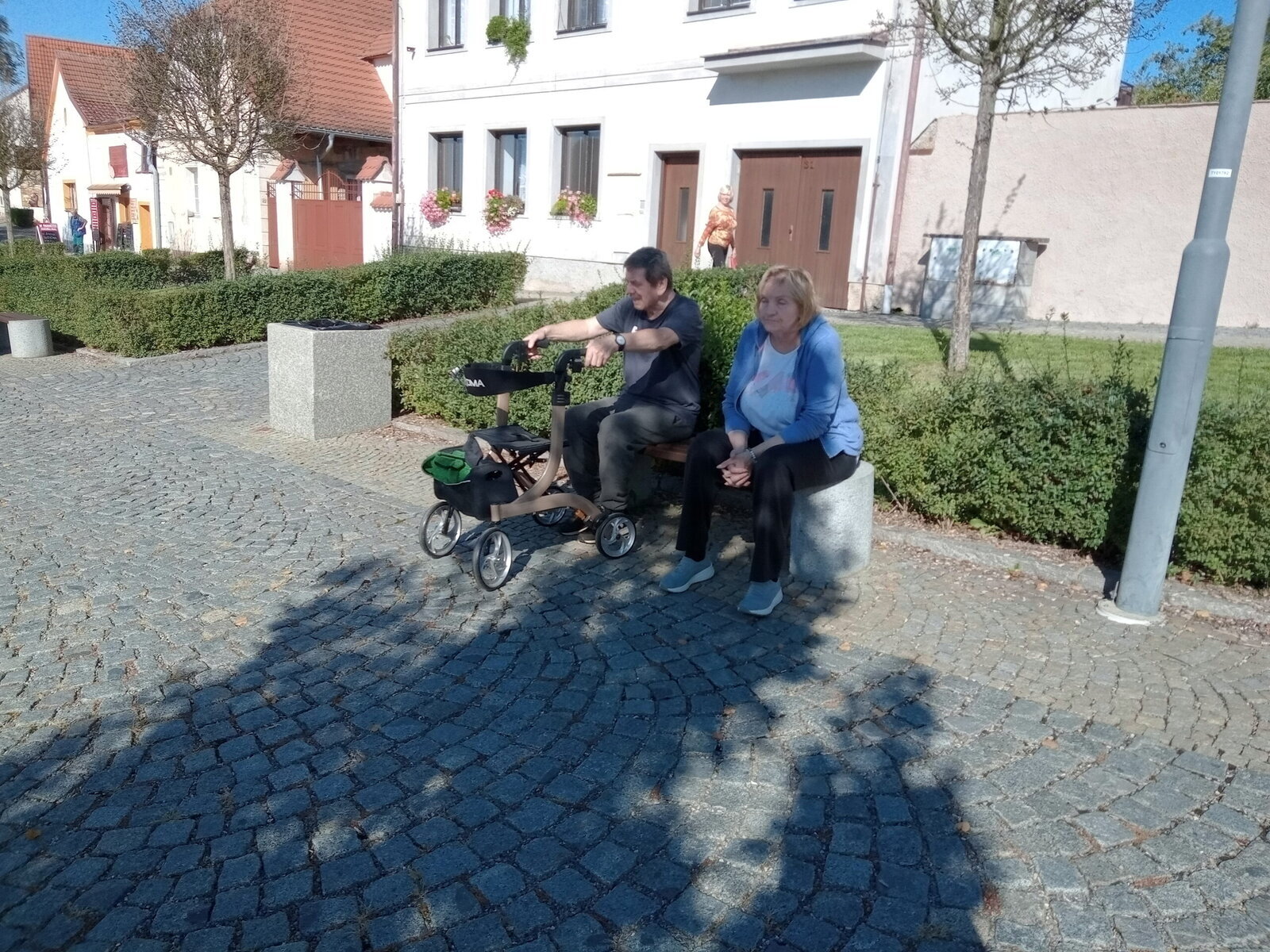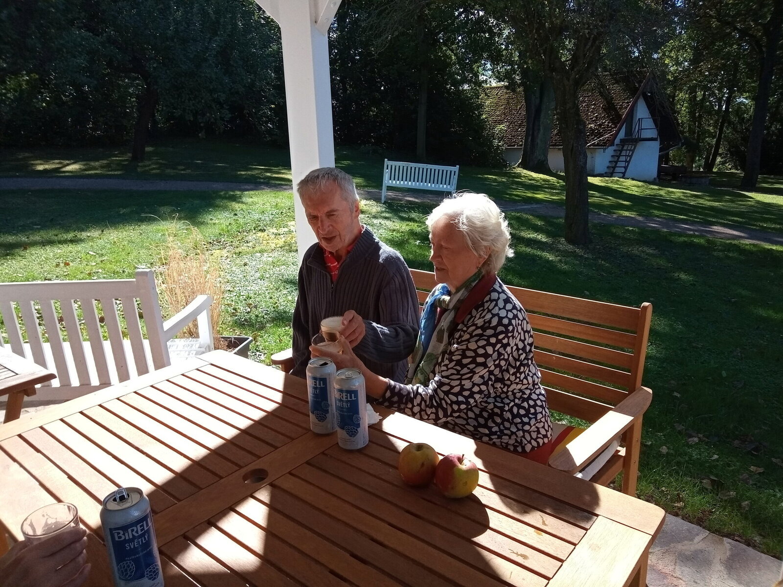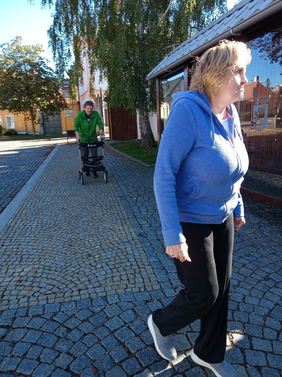 Procházky po obci Pyšely probíhají pravidelně. Ke kostelíku, do obchodu, po návsi. Všude to tu máme pěkné. Procházky poté zakončíme v našem altánu, kde si nalejeme náš národní nápoj.