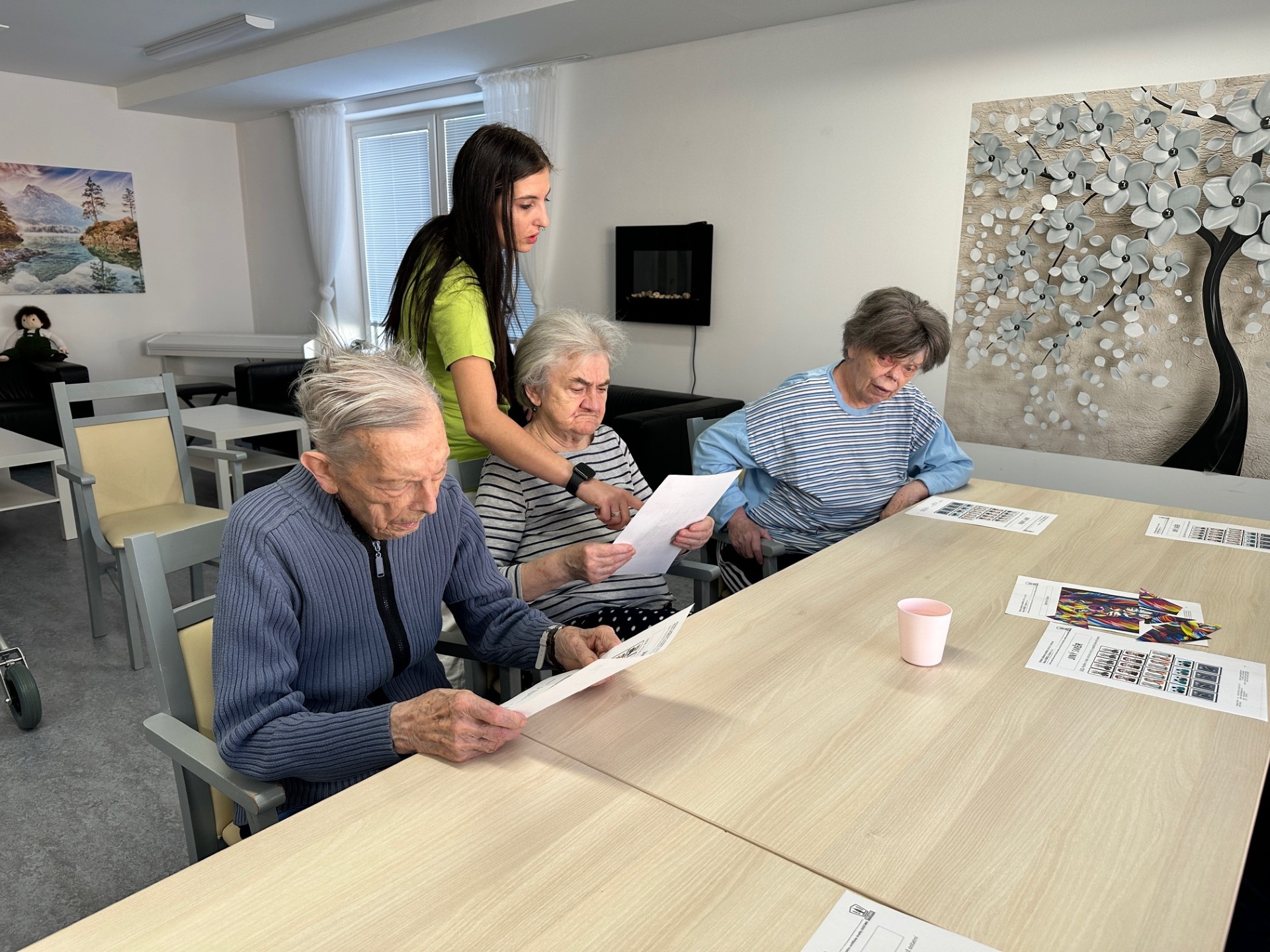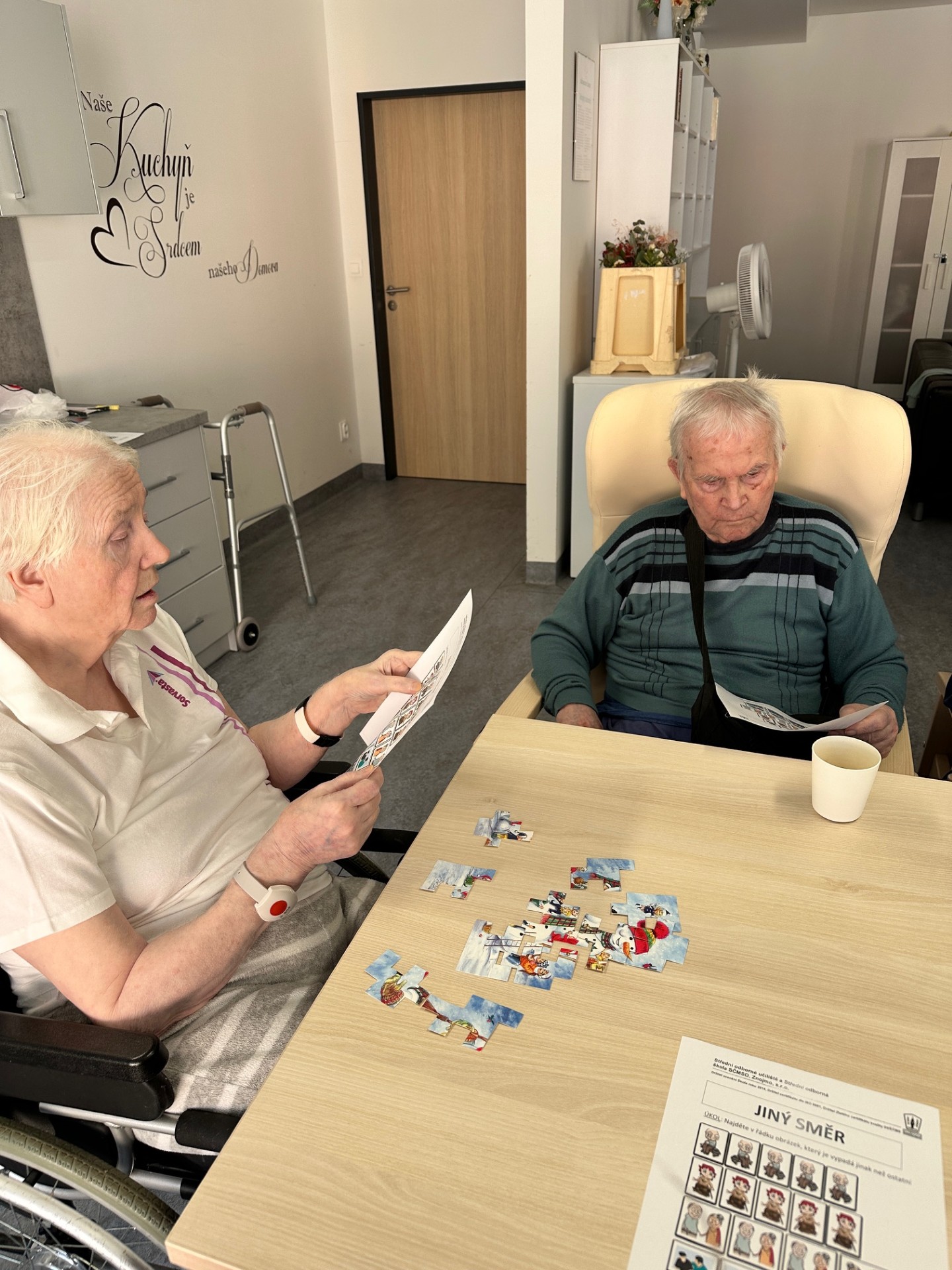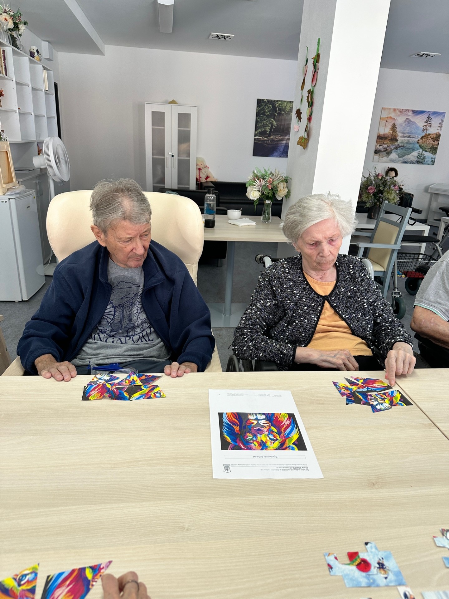 S klienty domova Senevida Jasmín jsme trénovali kognitivní funkce pomocí jednoduchých papírových puzzlí a pracovních listů 🧩. Tyto aktivity podporovaly soustřední, logické myšlení i jemnou motoriku 🧠. Zároveň přinášely klientům dobrý pocit z dobře odvedené práce 😊💙.