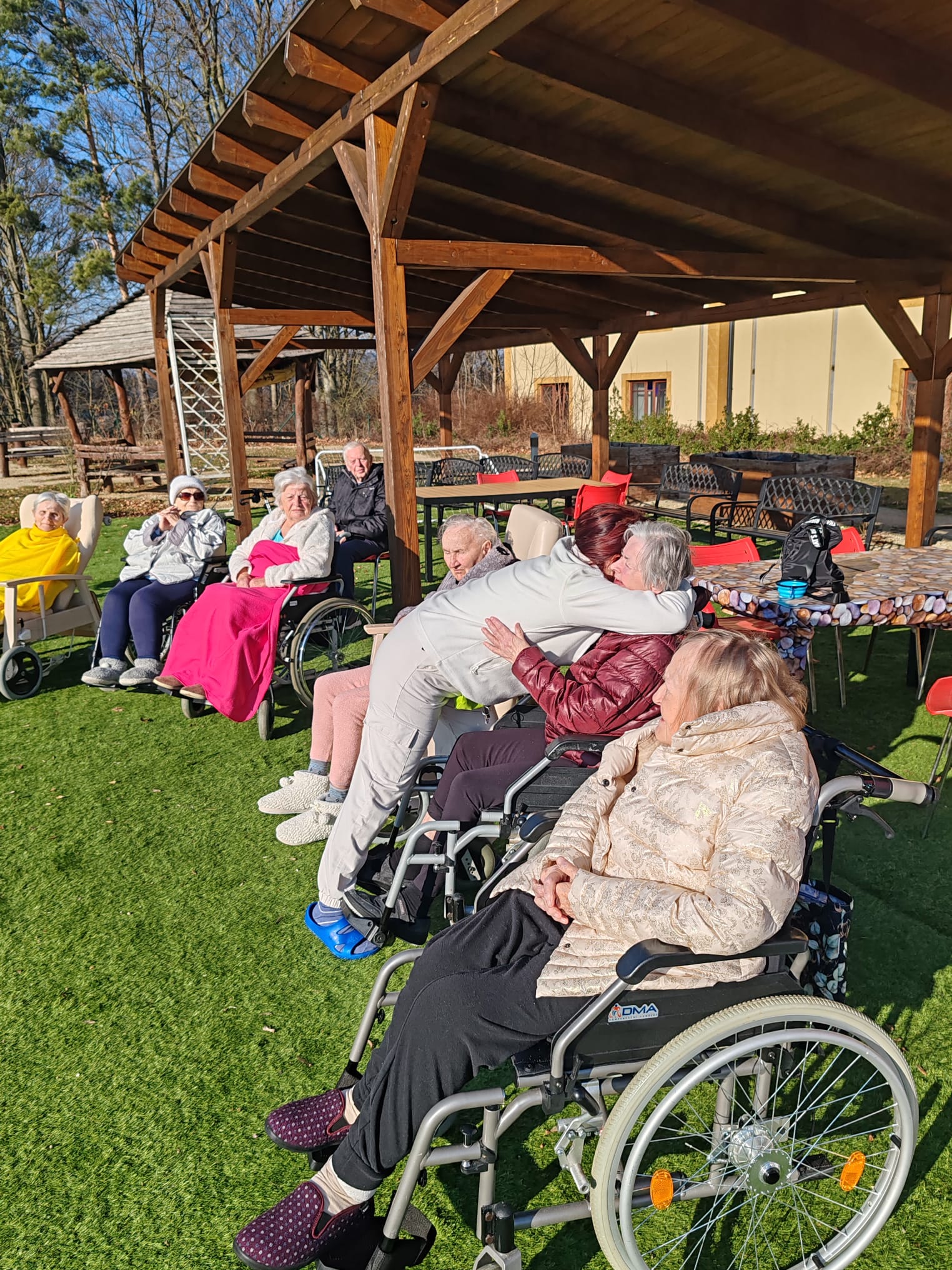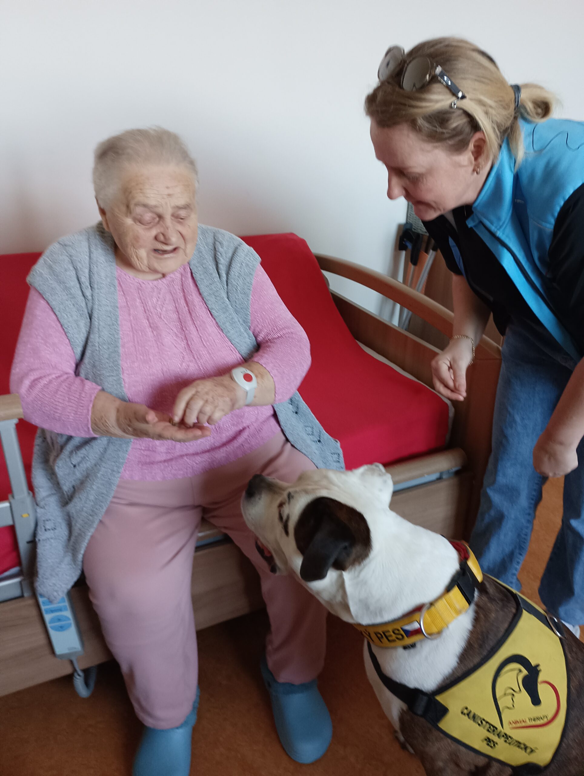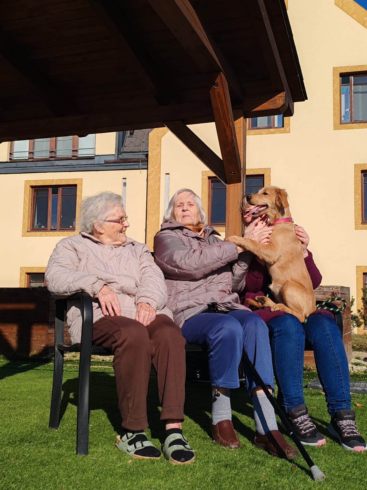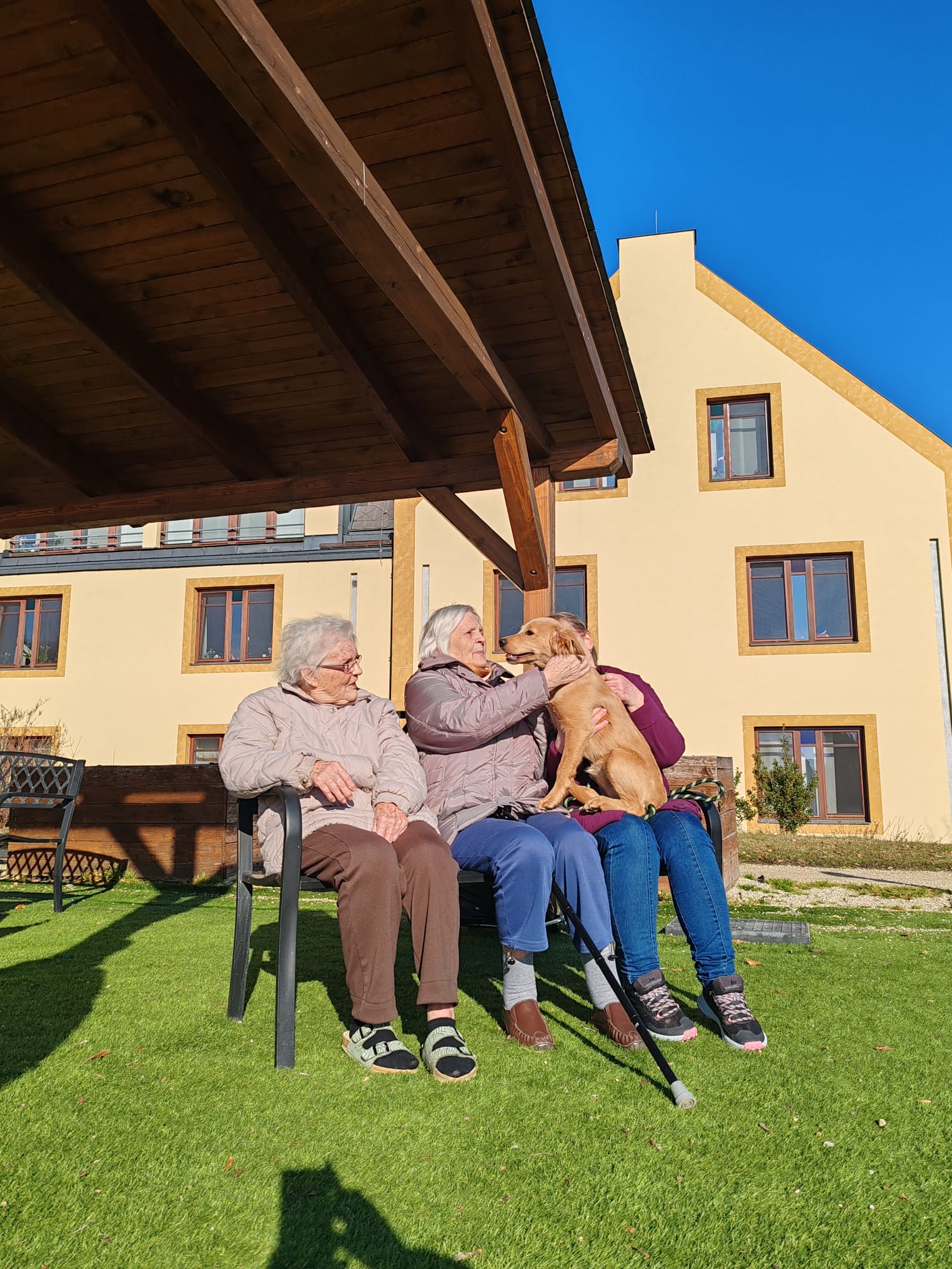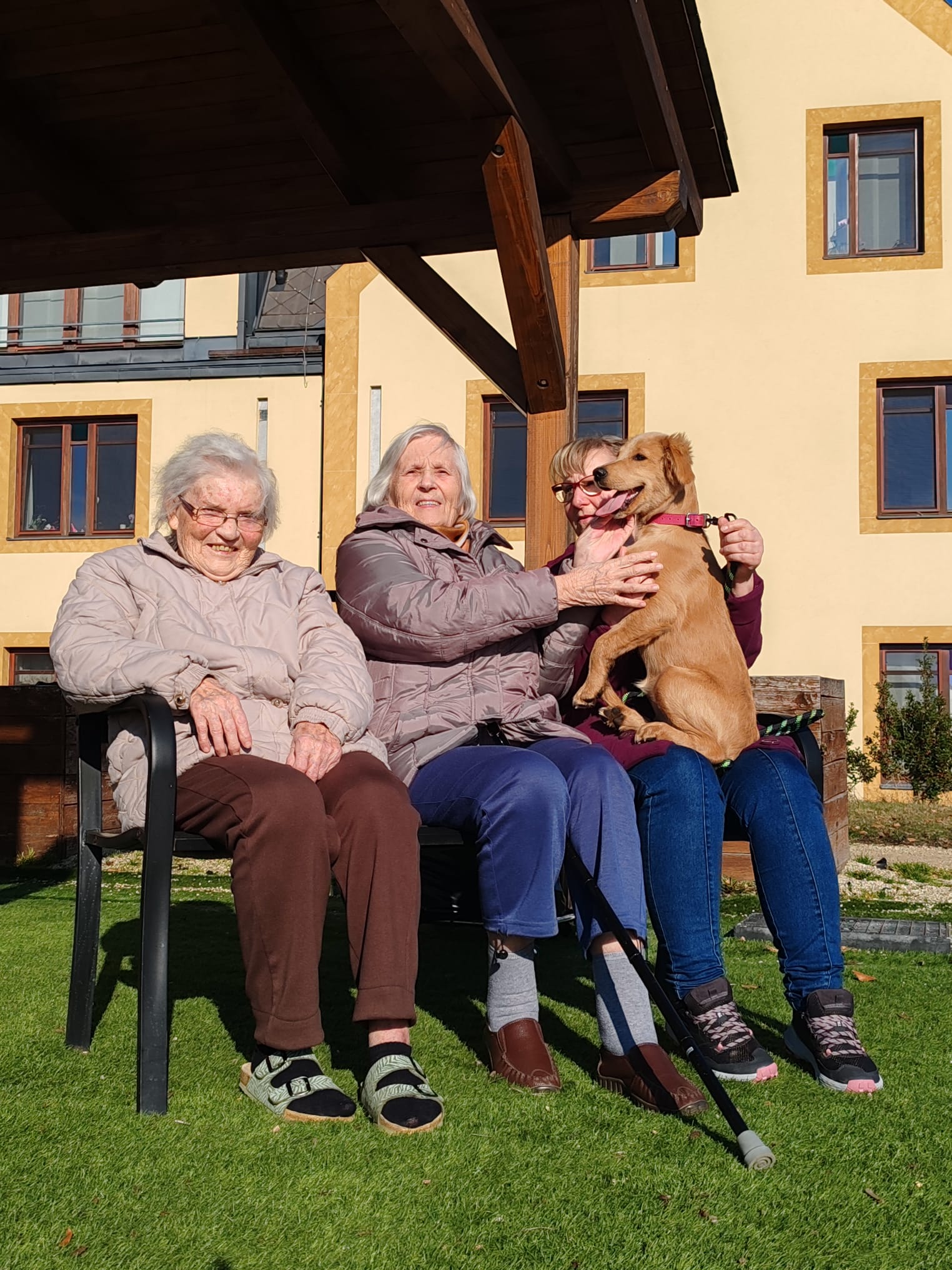 Odpoledne máme krásné počasí, a tak první sluneční paprsky už společně trávíme venku na naší zahradě. A dnes nás navštívila naše psí kamarádka Eni. Dopoledne jsme měli canisterapii s naším čtyřnohým kamarádem Dárečkem, a také jsme malovali jarní květiny.