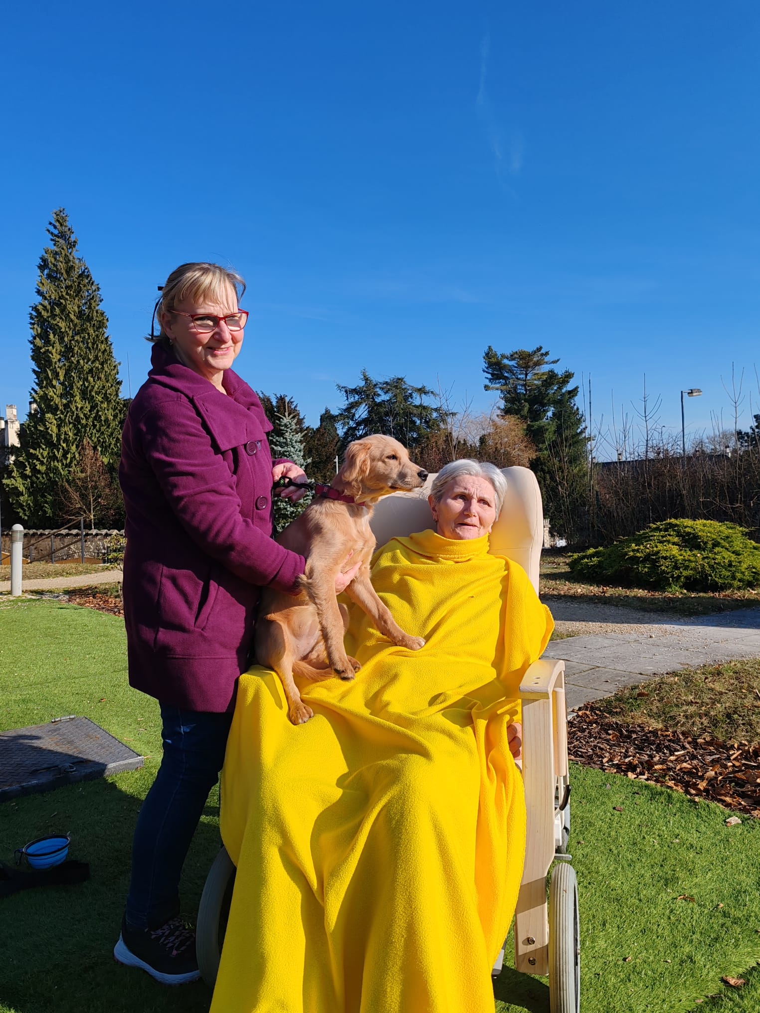 První slunce a odpoledne na naší zahradě s pejskem