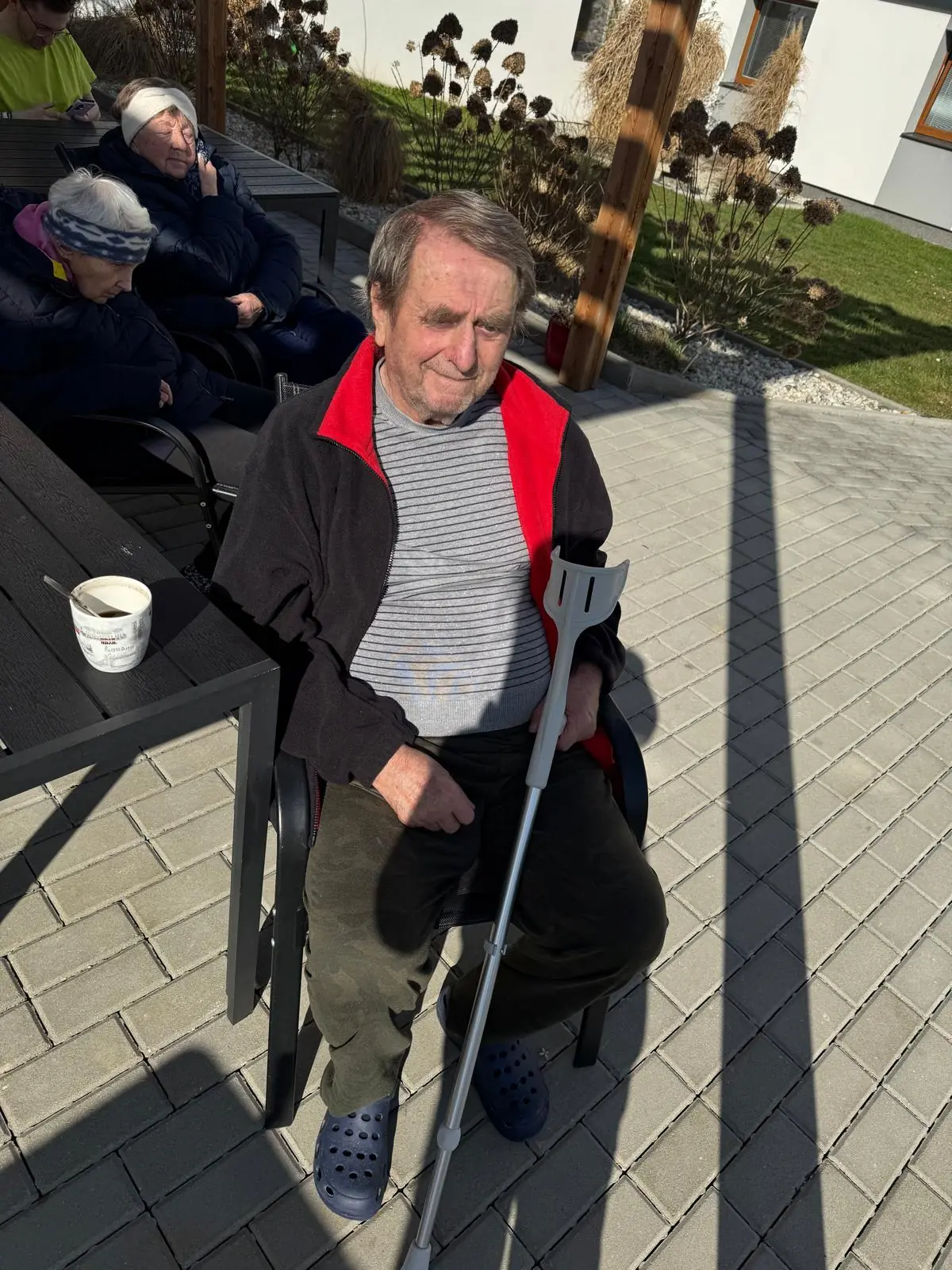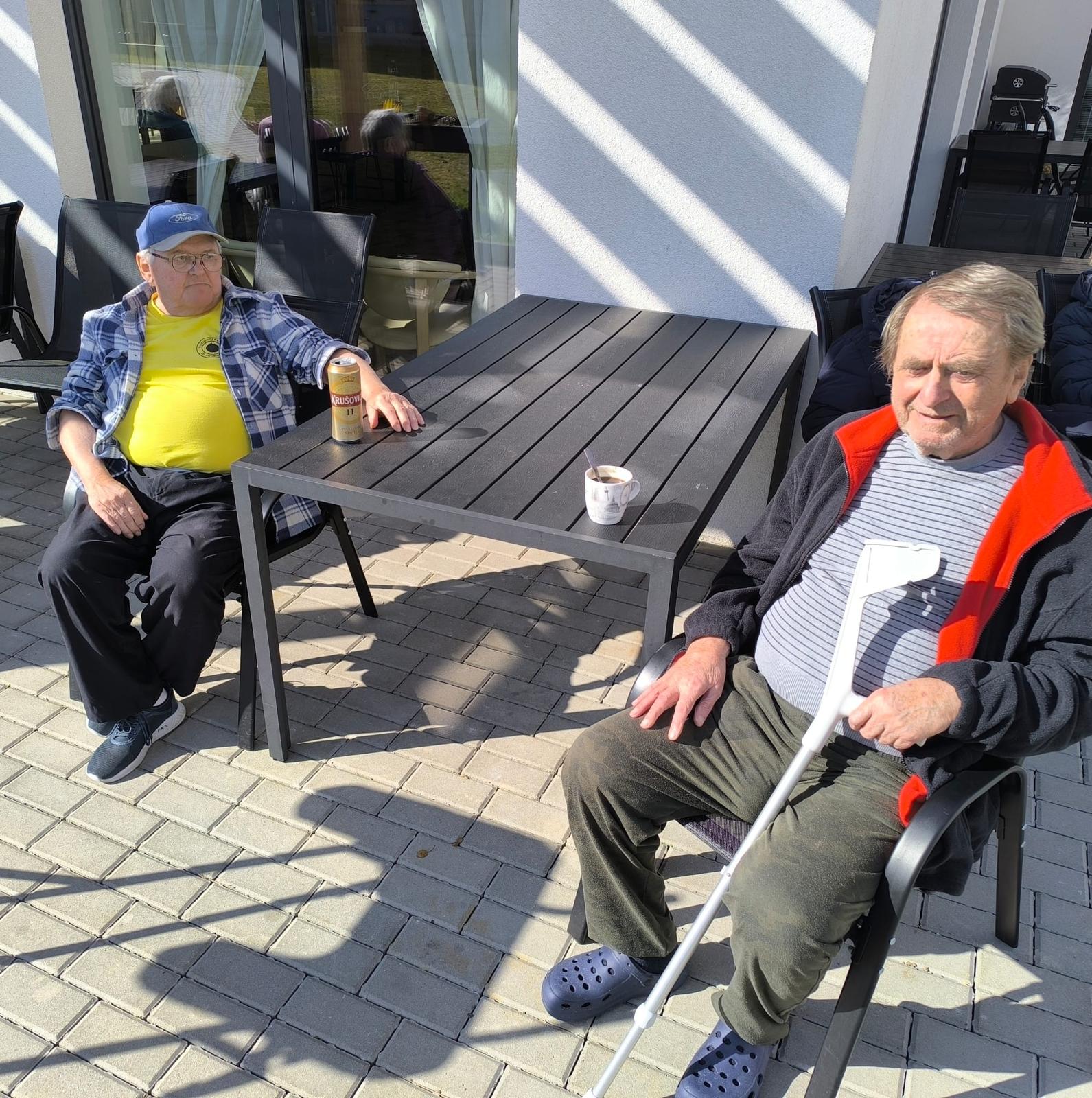První sluníčko nás zlákalo k odpolední kávě na terase.