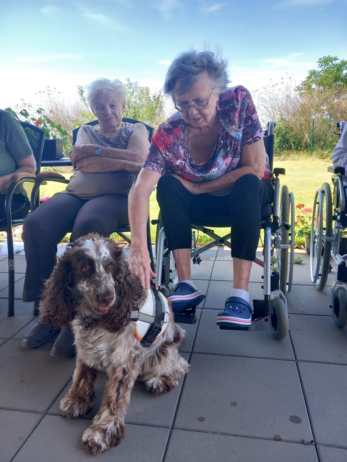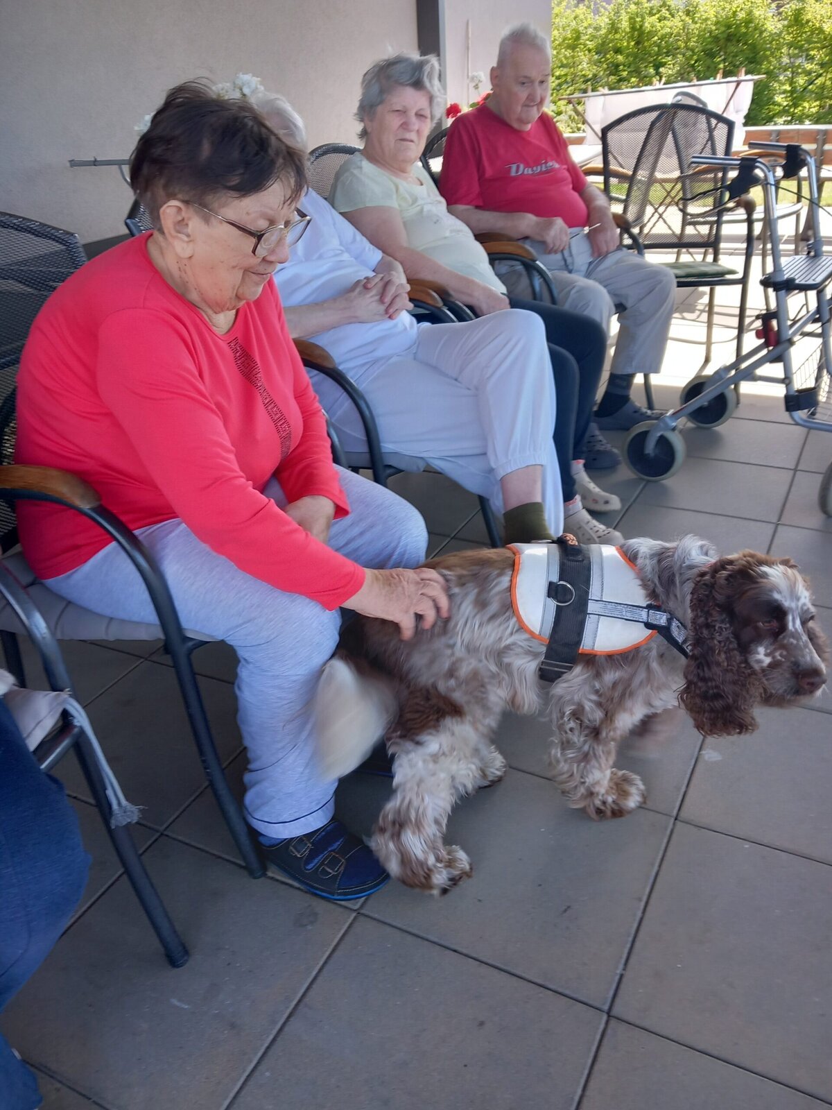 Na naši zahradu přišla psí kamarádka Dáše se svým páníčkem, který poutavě vyprávěl o jejích dovednostech. Dáše předvedla, co vše umí, a její vystoupení přineslo radost všem přítomným. Klienti byli nadšeni z jejího talentu a milé povahy. Akce byla úspěšná a vytvořila příjemnou atmosféru plnou úsměvů a pohody.