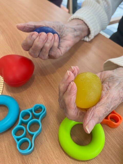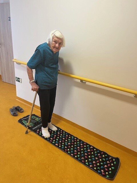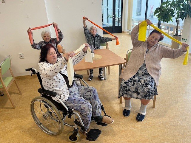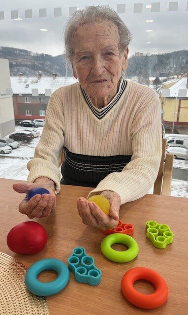 Naši klienti Senevida Boskovice pravidelně cvičí s naší fyzioterapeutkou Klárkou. Nový rok přinesl i nové rehabilitační pomůcky, aby si každodenní cvičení zpestřili. Oblíbené cvičení je s therabandy, což jsou posilovací gumy různých barev a pevností. Dále máme také sadu pomůcek na jemnou motoriku a úplnou novinkou je rotoped a akupresurní, masážní podložka.