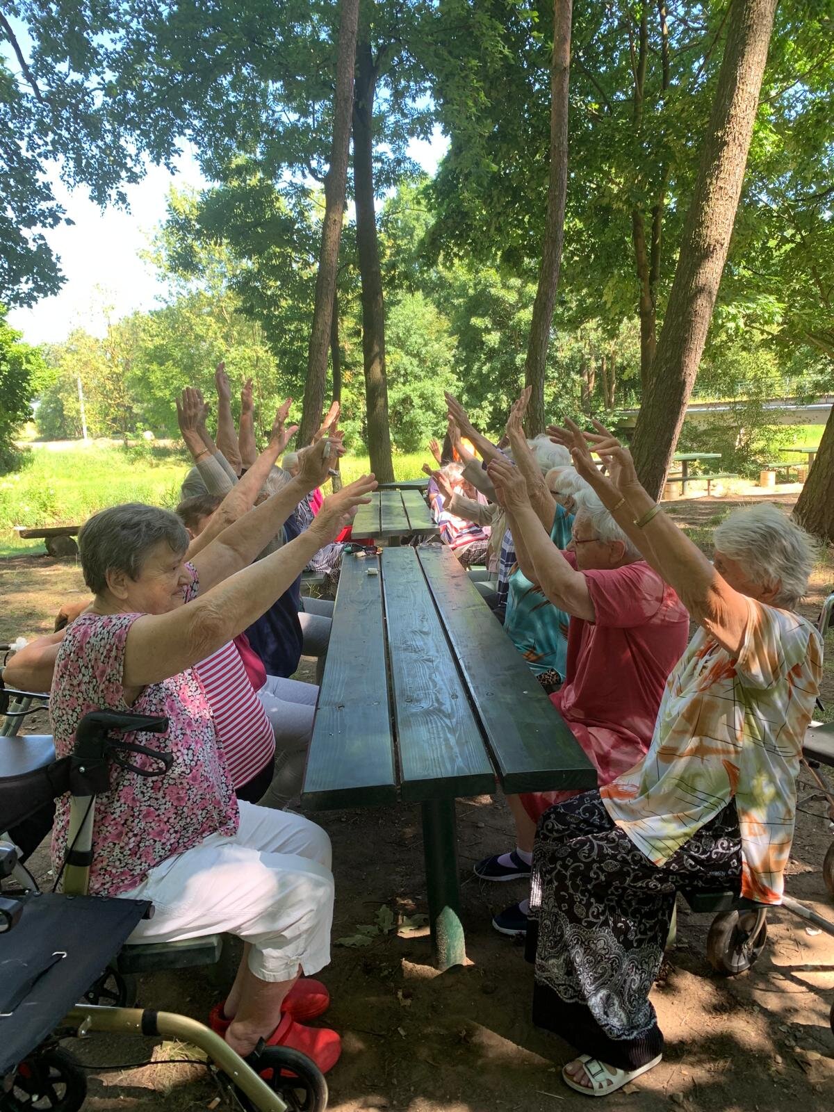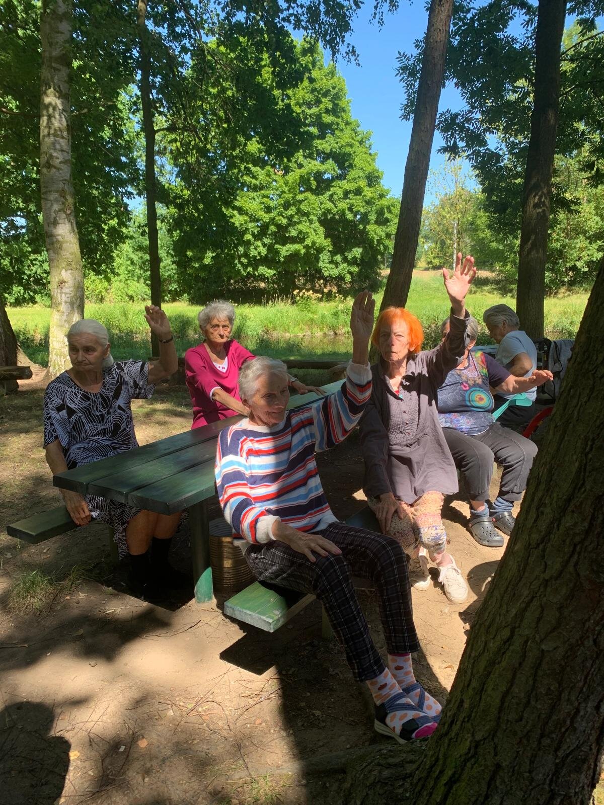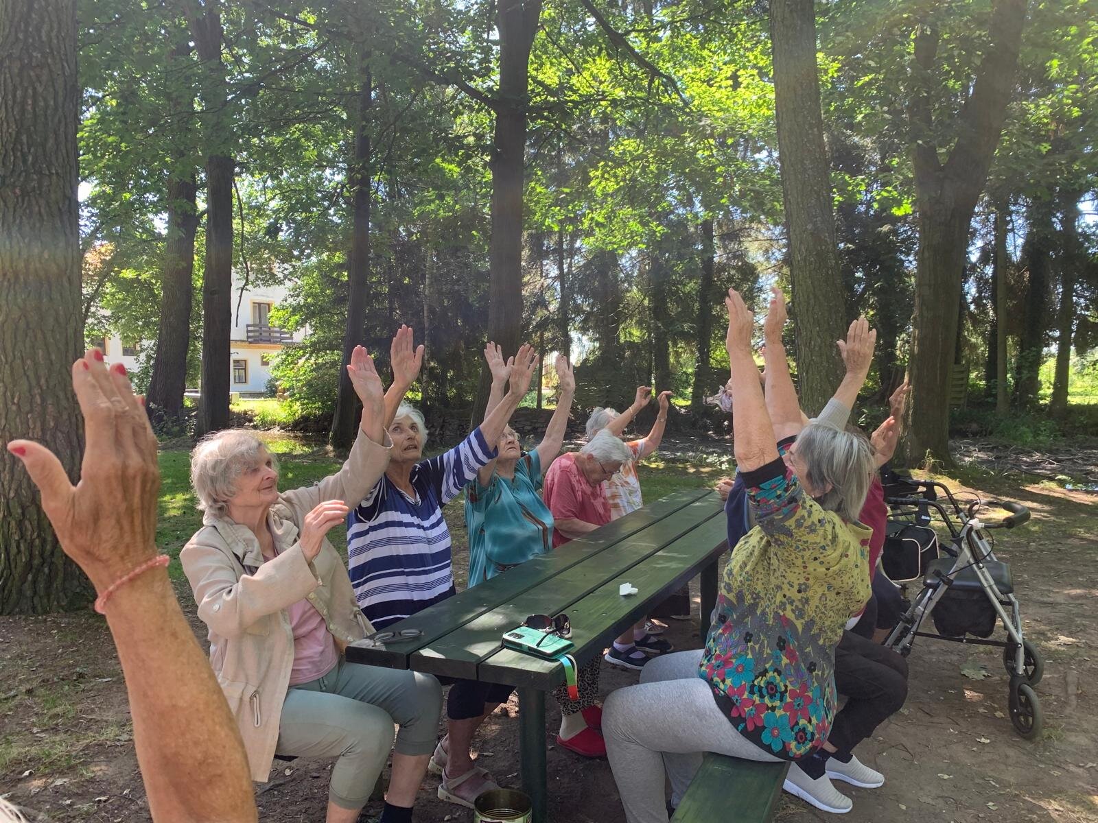 Když počasí přeje, vyrazíme z Senevida Loucký Mlýn na rozcvičku k nedaleké řece a ve stínu vzrostlých stromů se protahujeme 💪👍☀️