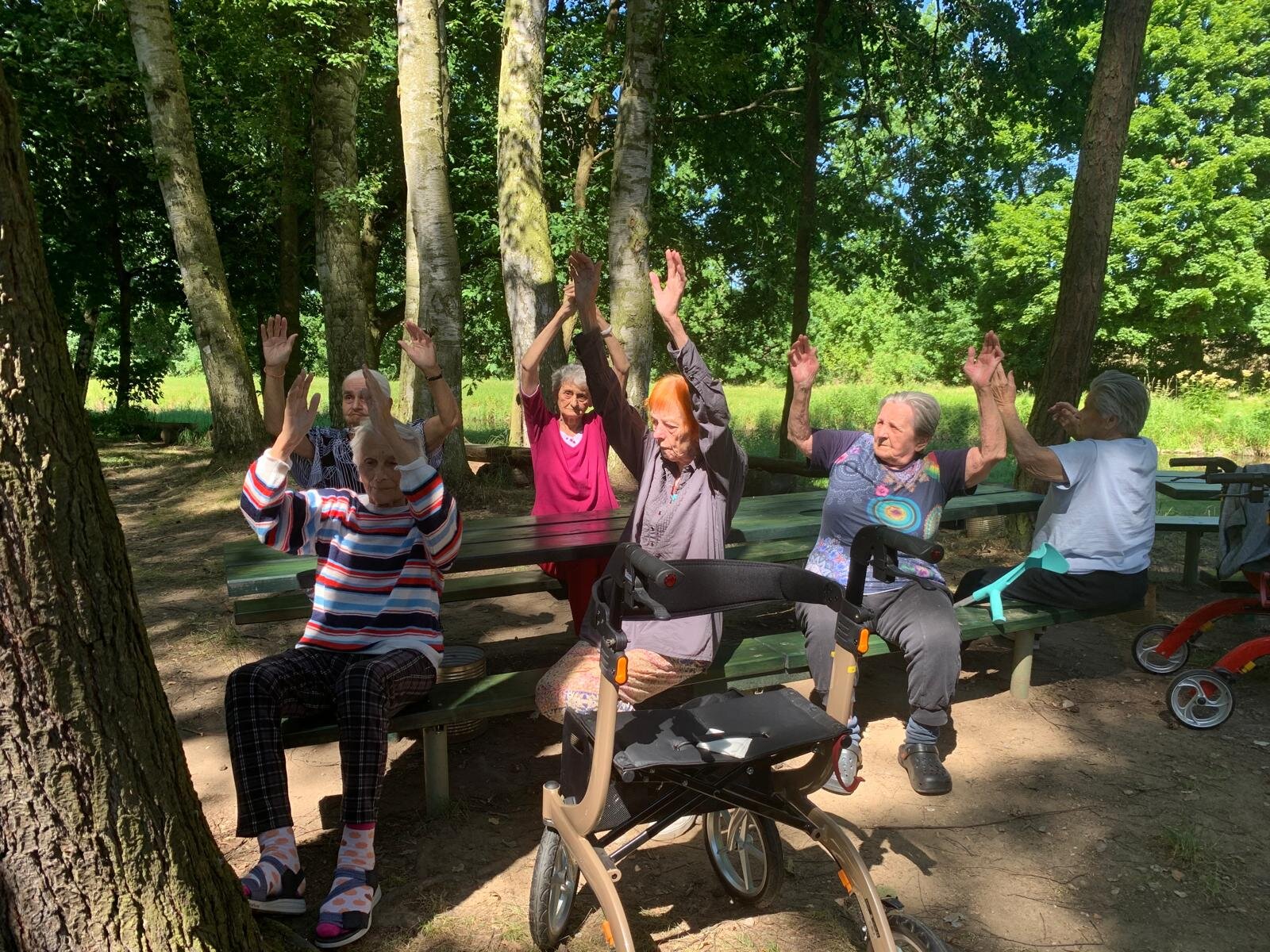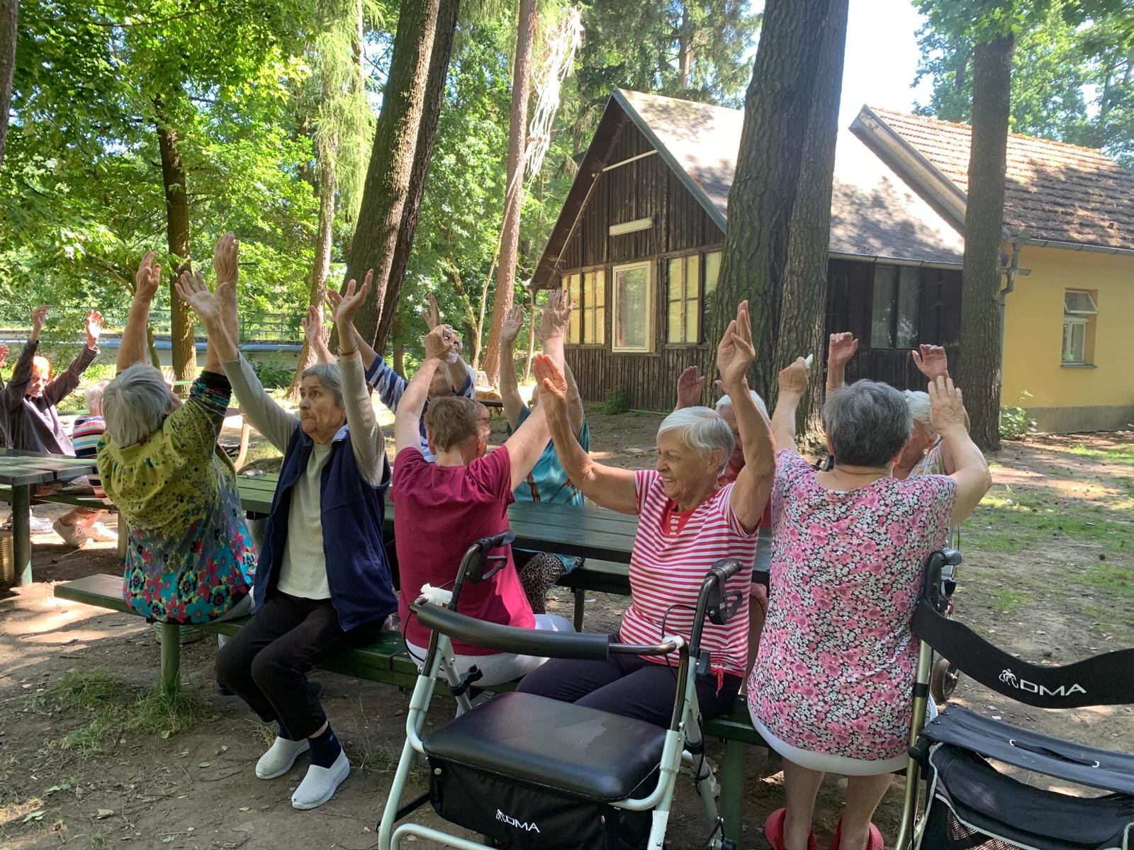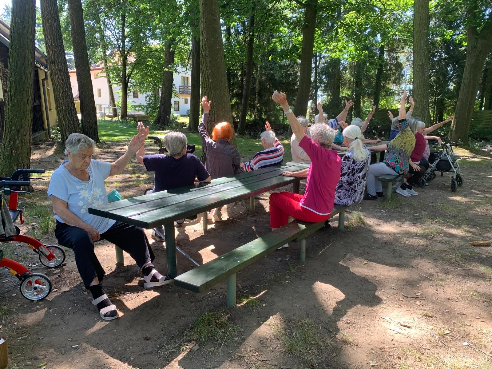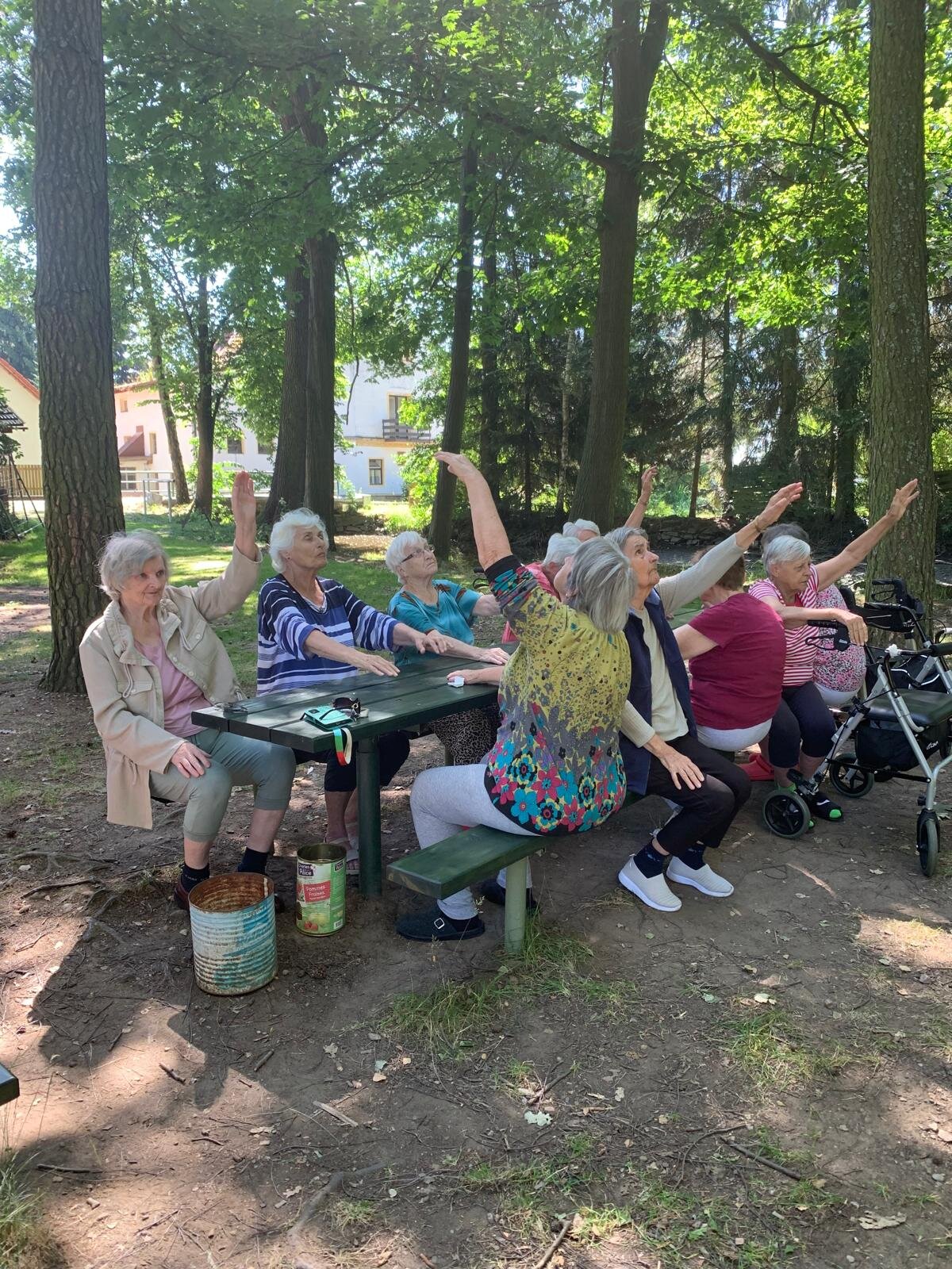 Když počasí přeje, vyrazíme z Senevida Loucký Mlýn na rozcvičku k nedaleké řece a ve stínu vzrostlých stromů se protahujeme 💪👍☀️