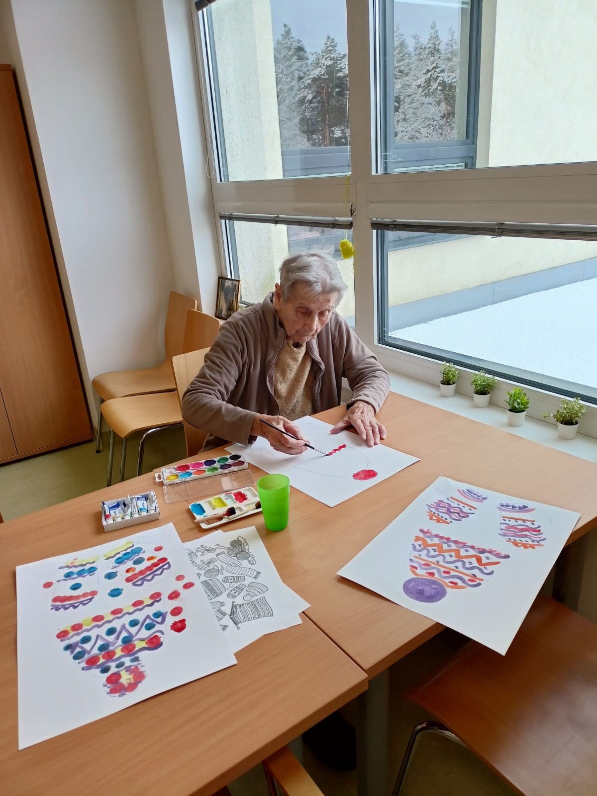 Na jednotlivých patrech probíhaly ruční práce s různým zaměřením. Aktivita podporovala jemnou motoriku, kreativitu, soustředění a navazovala zimní atmosféru.