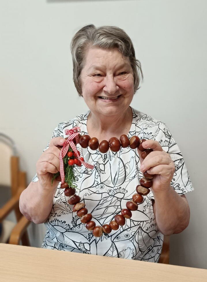 Naše šikovné klientky v Senevida Modřany si rády užívají tvořivé dopoledne. Tentokrát jsme se pustily do výroby srdcí z kaštanů. Ruční práce podporují jemnou motoriku, trpělivost, ale zároveň přinášejí radost, klid a společně strávené chvíle. Podzimní dekorace teď krásně zdobí pokoje našich klientek.🍂👌🧡