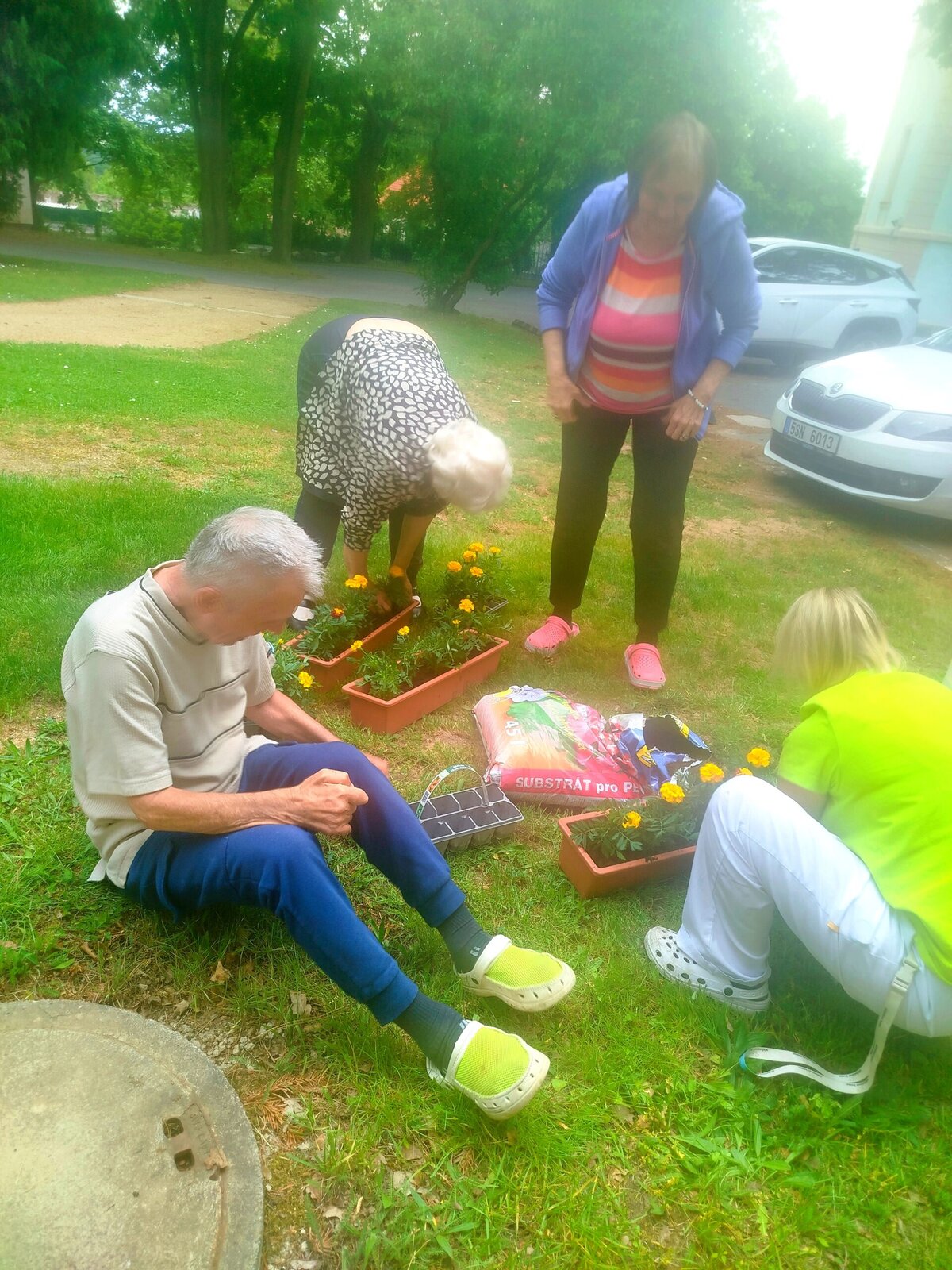 Sluníčko a dobrá nálada nás v Senevida Pyšely vyvedly do zahrady. Zasadili jsme spoustu krásných květin a zkrášlili si tak naše okolí. Šlo to báječně