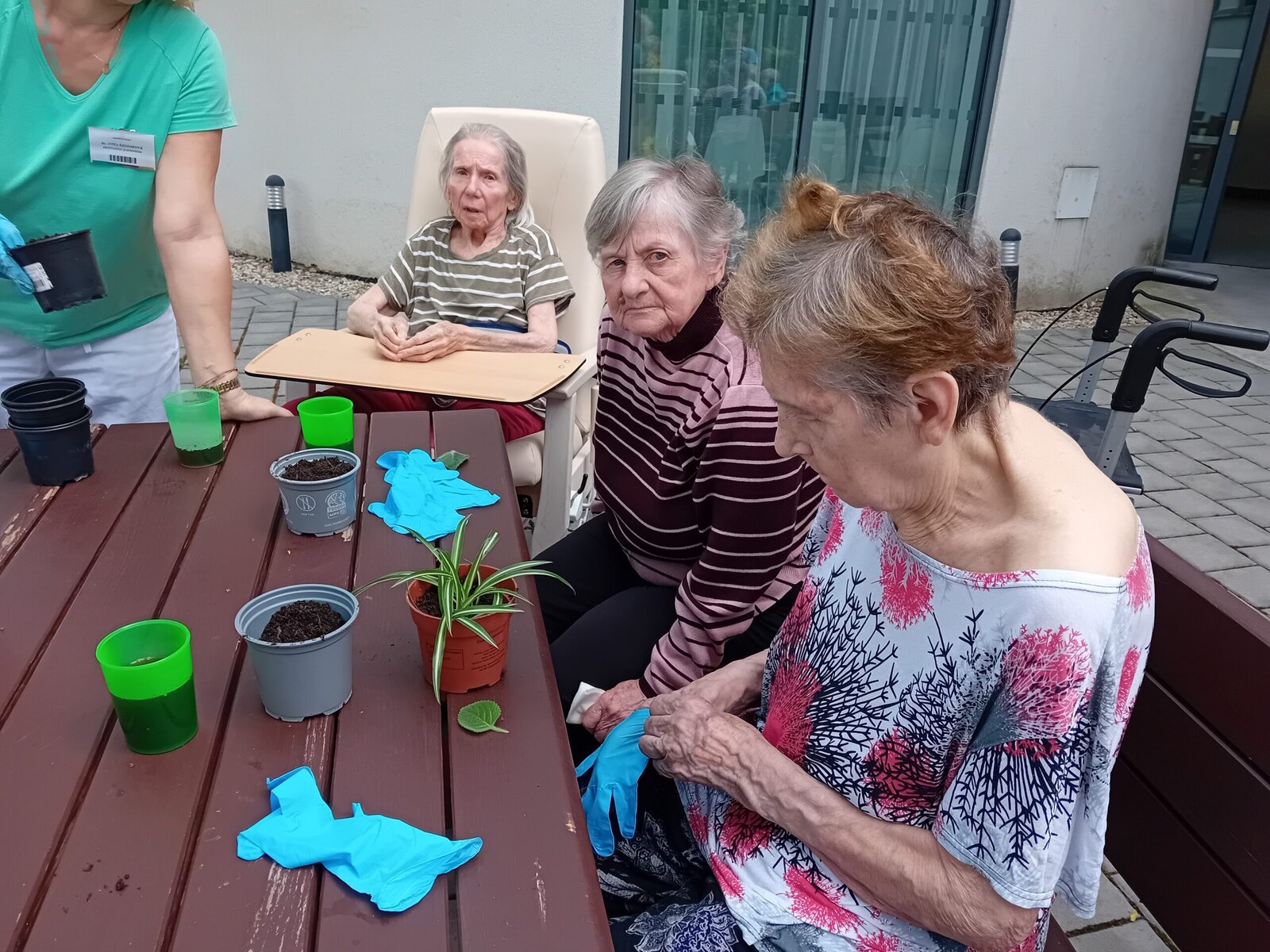 Pondělní slunečné odpoledne jsme v Senevida Slavkov u Brna využili v rámci aktivizací k pobytu na zahradě. Tentokrát jsme se dali do sázení pokojových rostlin a práci s hlínou jsme si náramně užívali.