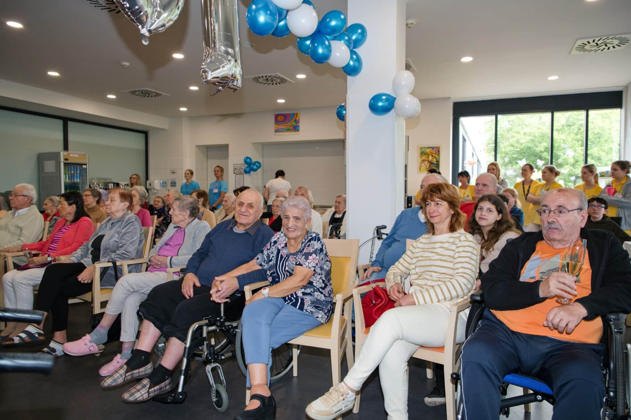 O krásnou výzdobu celé oslavy se s velkou péčí postaraly naše aktivizační pracovnice. Díky nim prostory doslova zářily slavnostní náladou. Balónky, květiny i drobné detaily pomohly vytvořit atmosféru plnou barev a radosti.