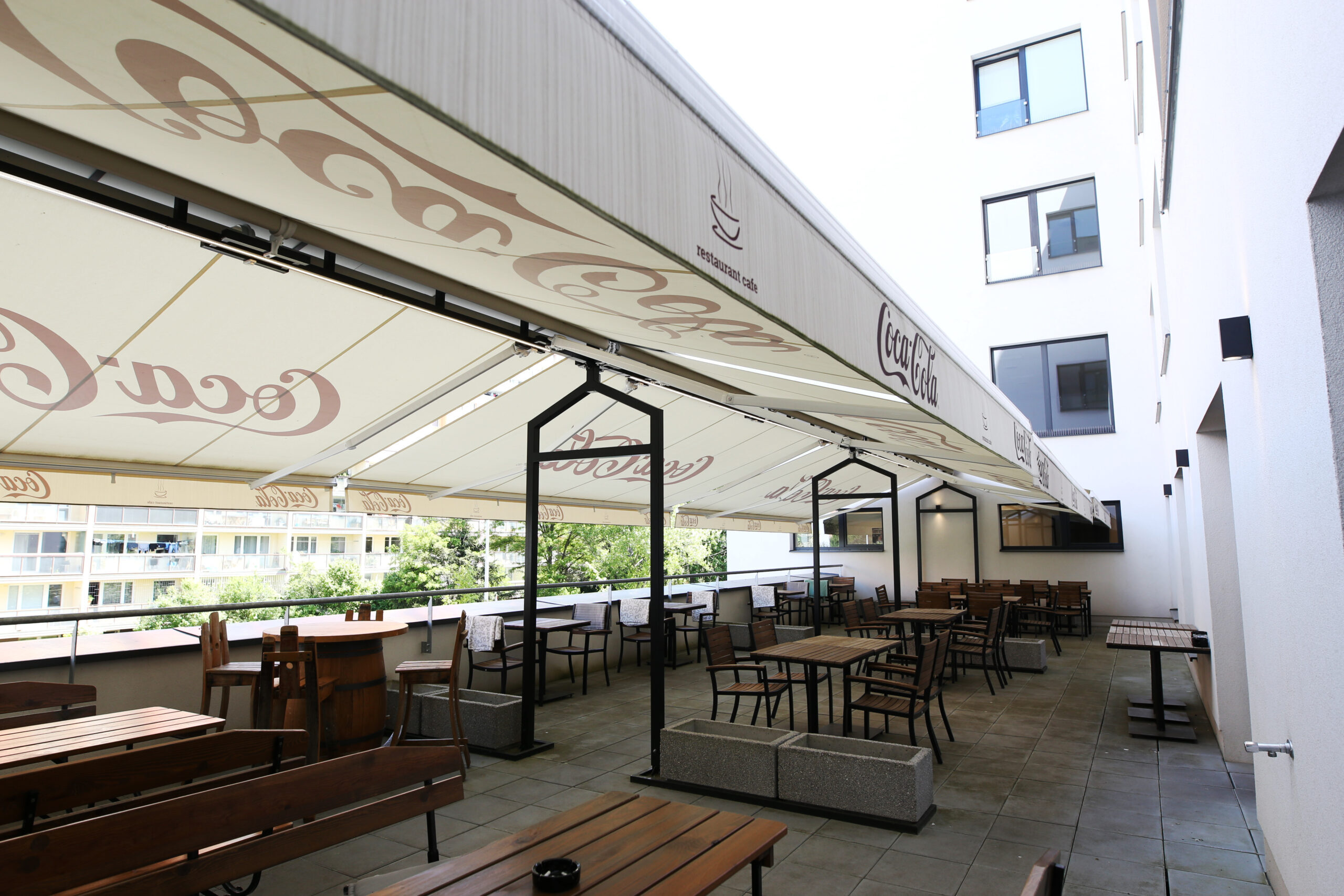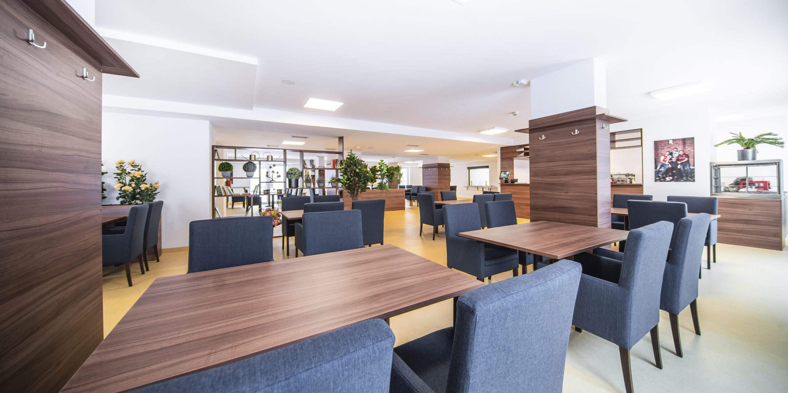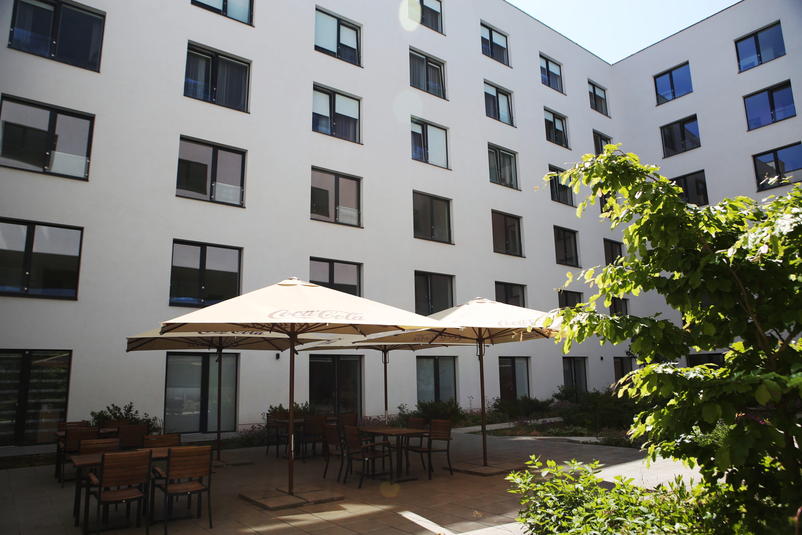 Součástí centra je uzavřené atrium a terasa pro procházky a odpočinek. Celý areál domu pro seniory je plně bezbariérový.