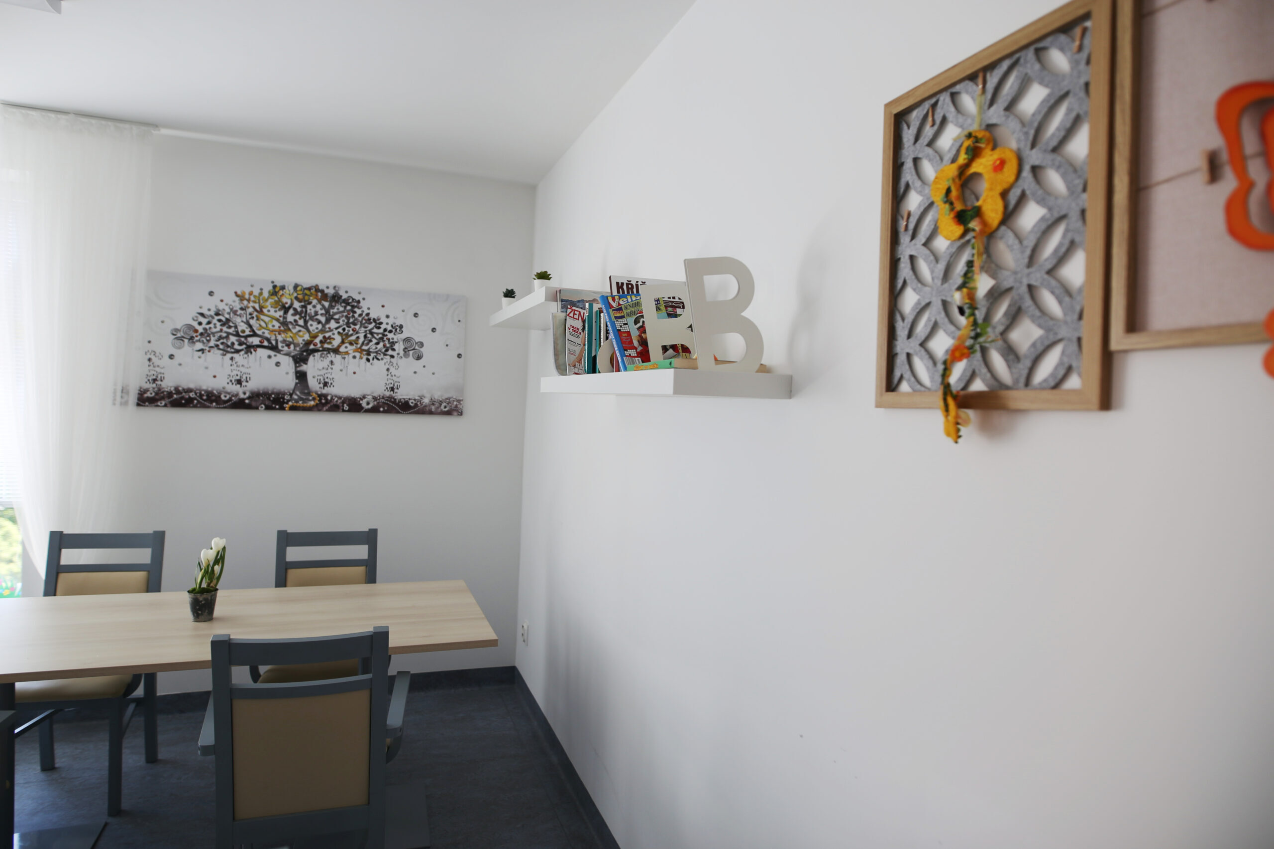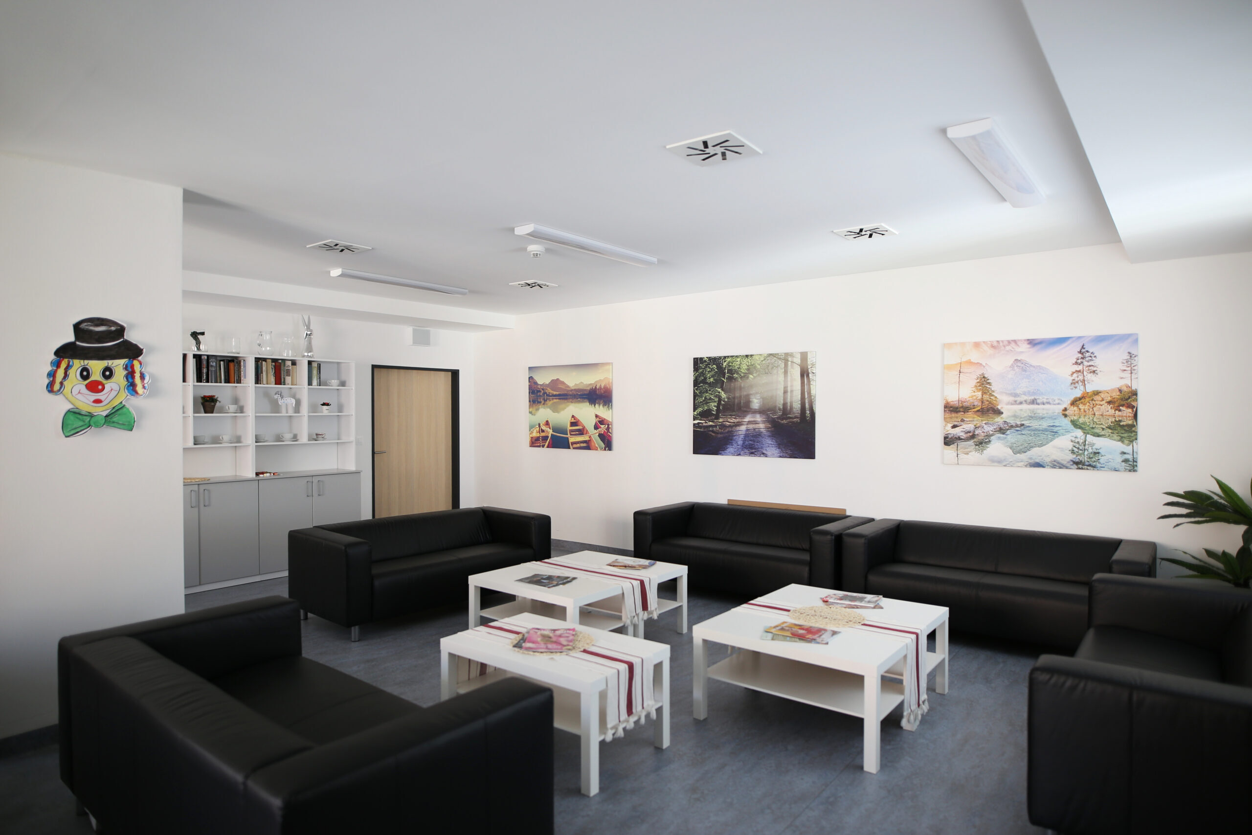 K dispozici jsou prostorné společenské a terapeutické místnosti s jídelnou.