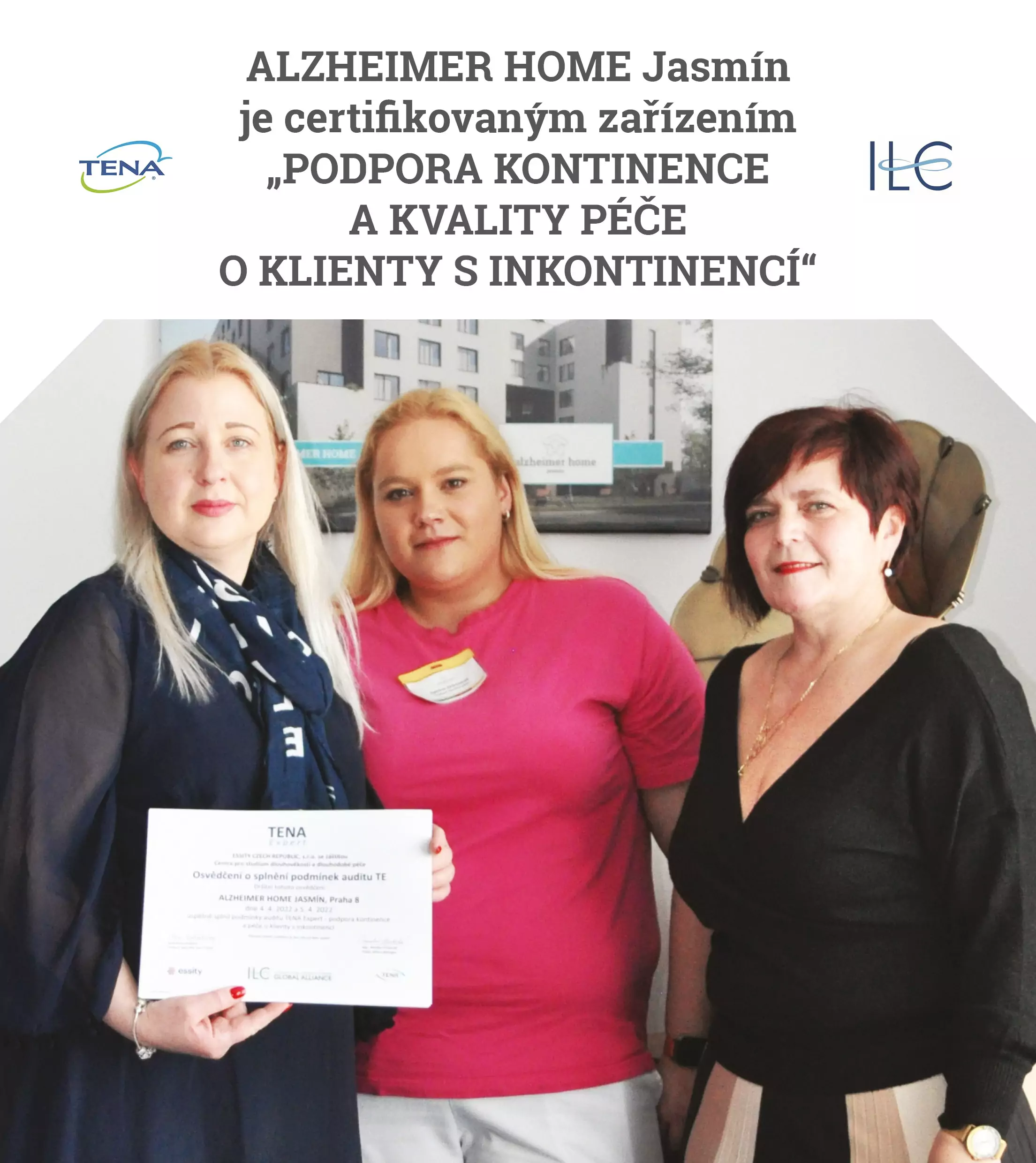 V dubnu 2022 Senevida Jasmín prošel úspěšně auditem „AUDIT PODPORY KONTINENCE A KVALITY PÉČE O KLIENTY S INKONTINENCÍ“ se záštitou CENTRA PRO STUDIUM DLOUHOVĚKOSTI A DLOUHODOBÉ PÉČE Doc. MUDr. Iva Holmerová PhD.