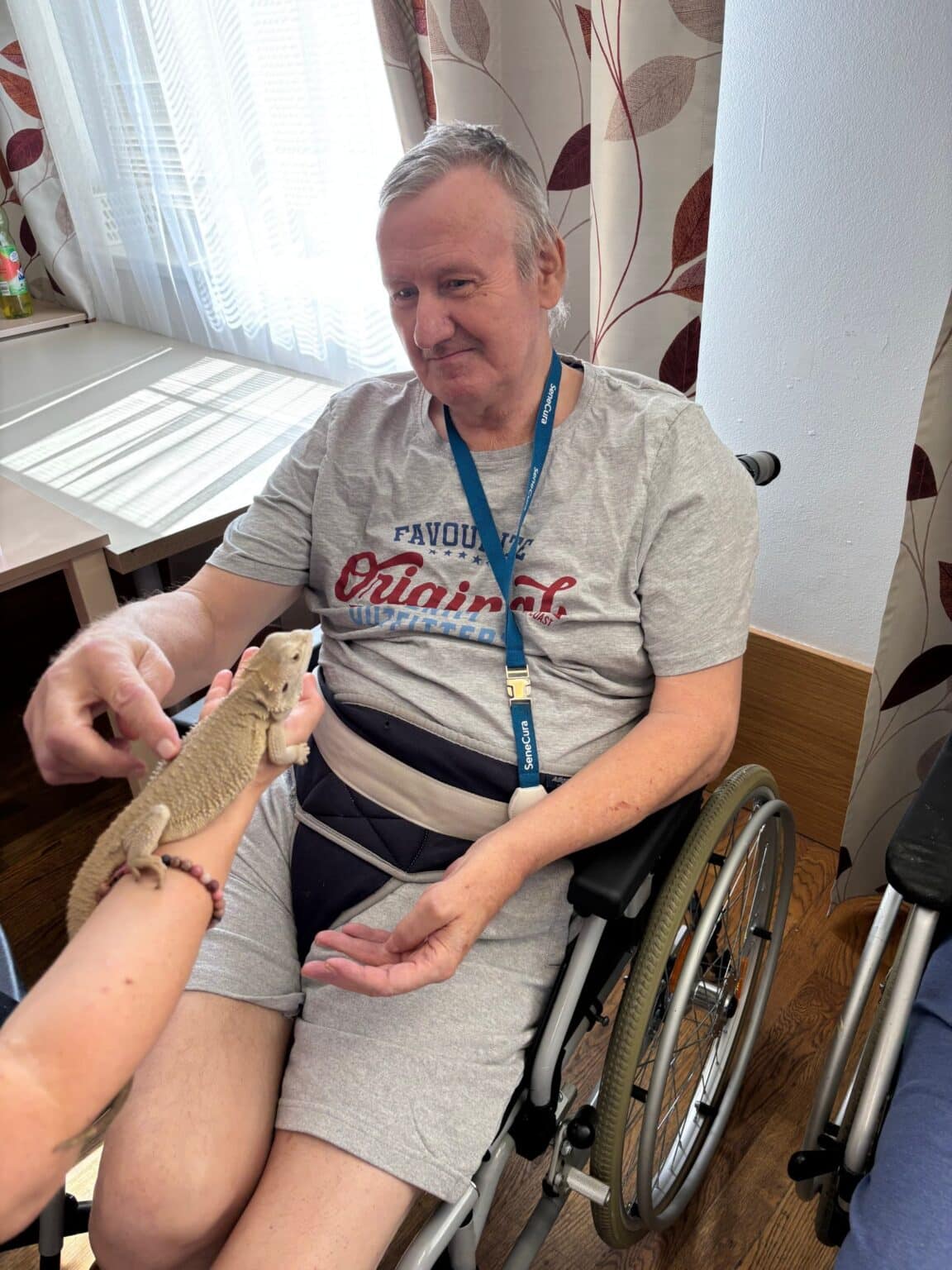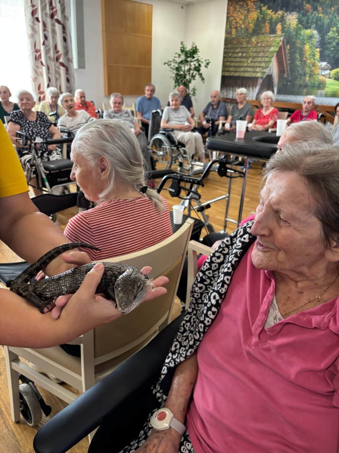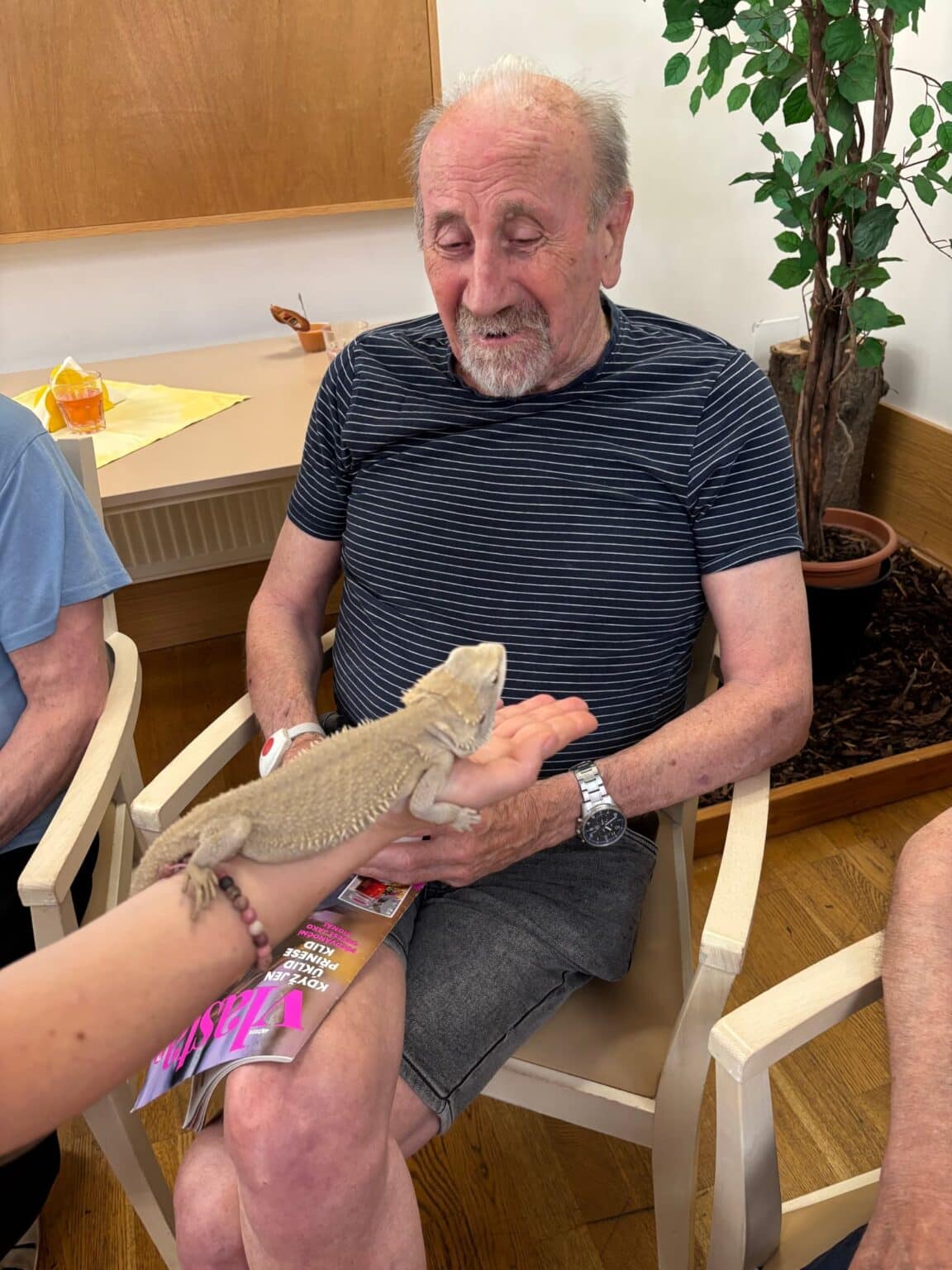 Tento týden jsme měli v našem domově nevšední a velmi milou návštěvu. Zavítal k nám chovatel exotických zvířat pan Filípek, který s sebou přivezl zajímavé a neobvyklé obyvatele zvířecí říše. Klienti tak měli jedinečnou možnost zblízka si prohlédnout a dokonce pohladit nebo vzít do rukou tvory, které běžně vídáme spíše v přírodopisných dokumentech.