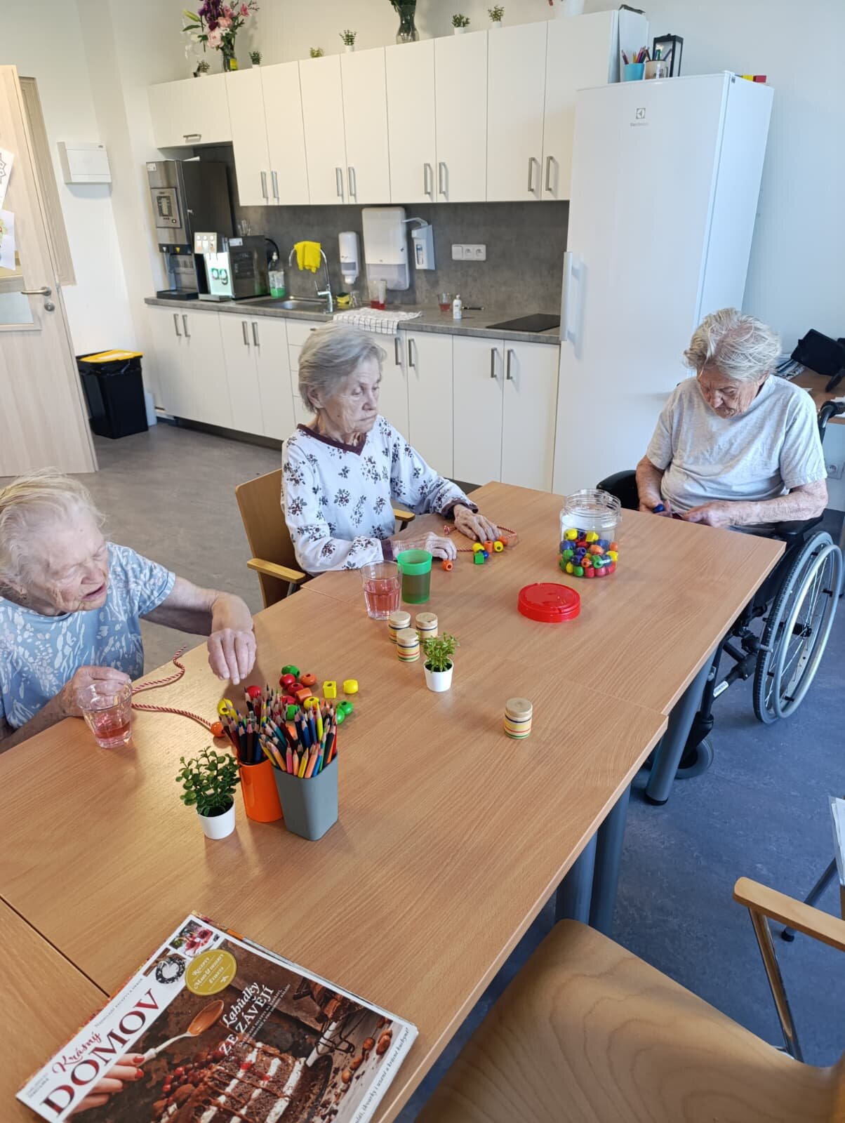 Naše šikovné ruce v akci! 🙌 Dnes jsme se v Senevida Nepomuk v rámci terapie setkali, abychom rozvíjeli jemnou motoriku a kreativitu. Někteří naši klienti si užili relaxační navlékání barevných korálků, zatímco jiní se s nadšením pustili do výroby z papíru. Každé takové tvoření přináší radost, pocit užitečnosti a krásné výsledky.