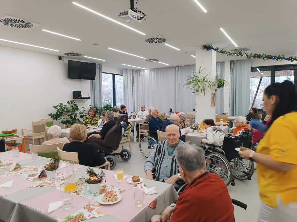 Společnými silami klientů a aktivizačních pracovnic vznikly výborné jednohubky. Část klientů chystala pohoštění, zatímco ostatní se sešli u sledování tradiční pohádky Mrazík.