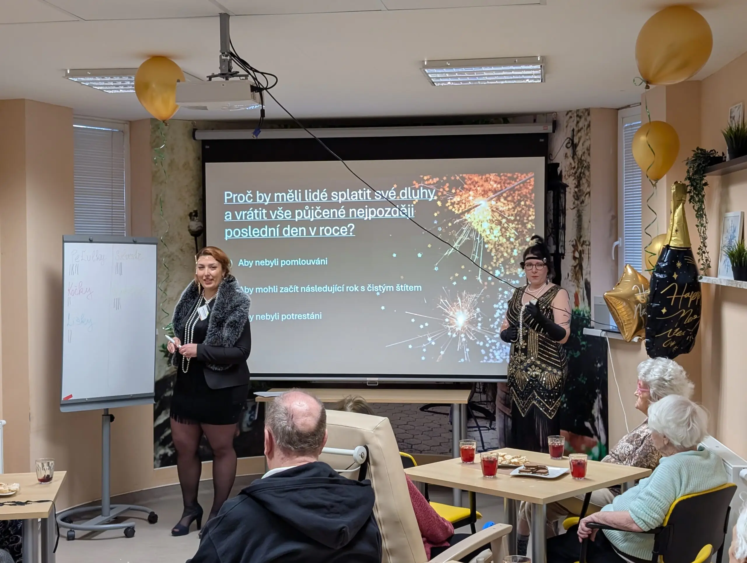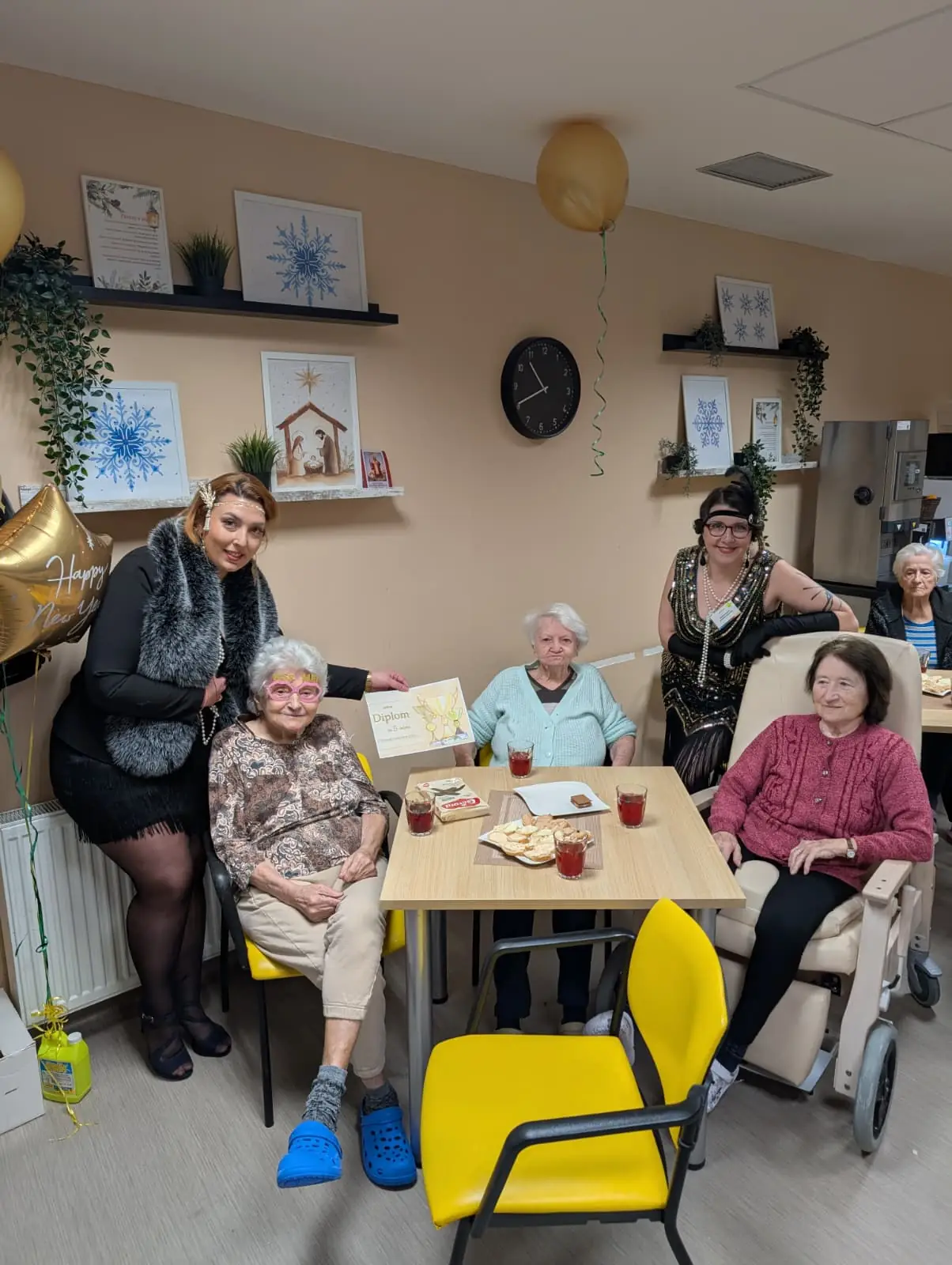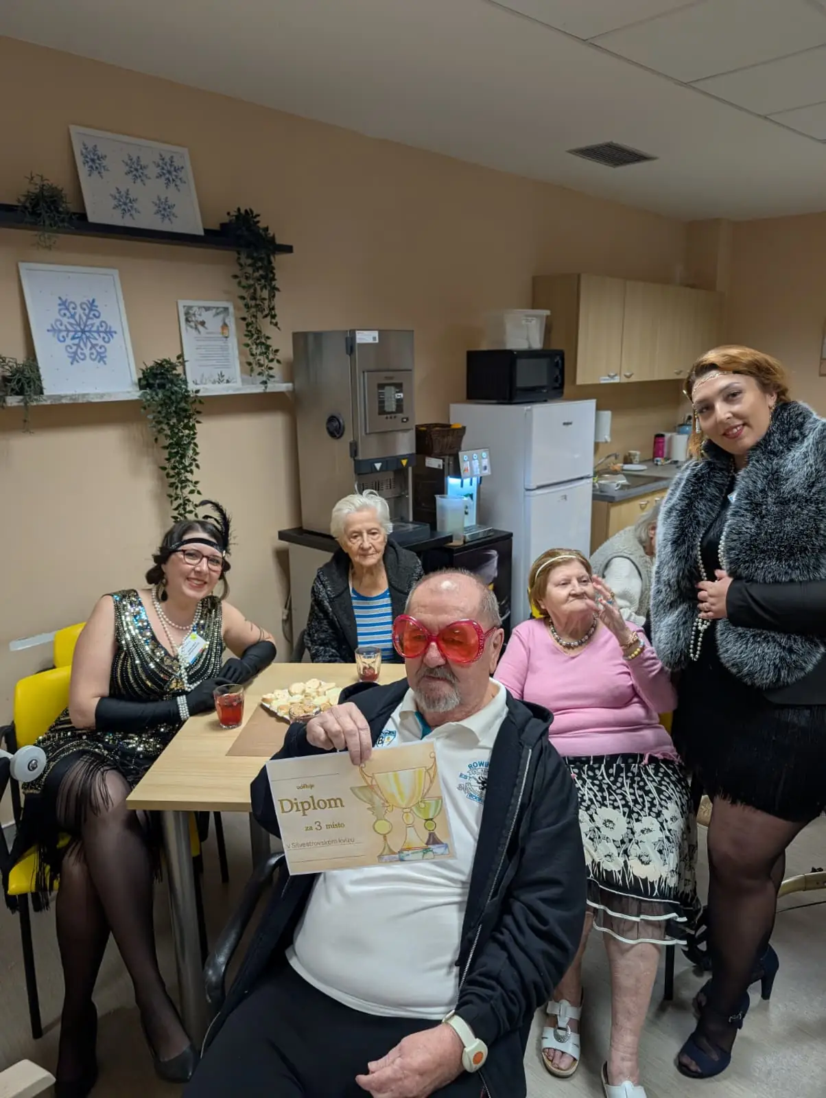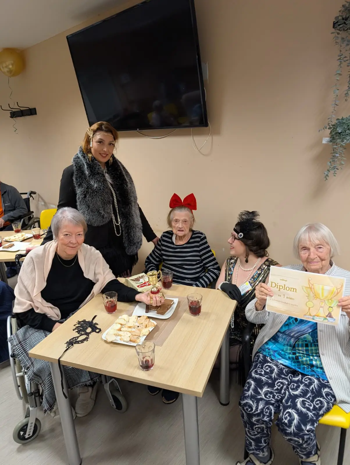 Dnes dopoledne se u nás v domově zastavil čas. Jako tým aktivizace jsme pro naše seniory připravili rozloučení s rokem 2025 v noblesním stylu 30. let. ✨