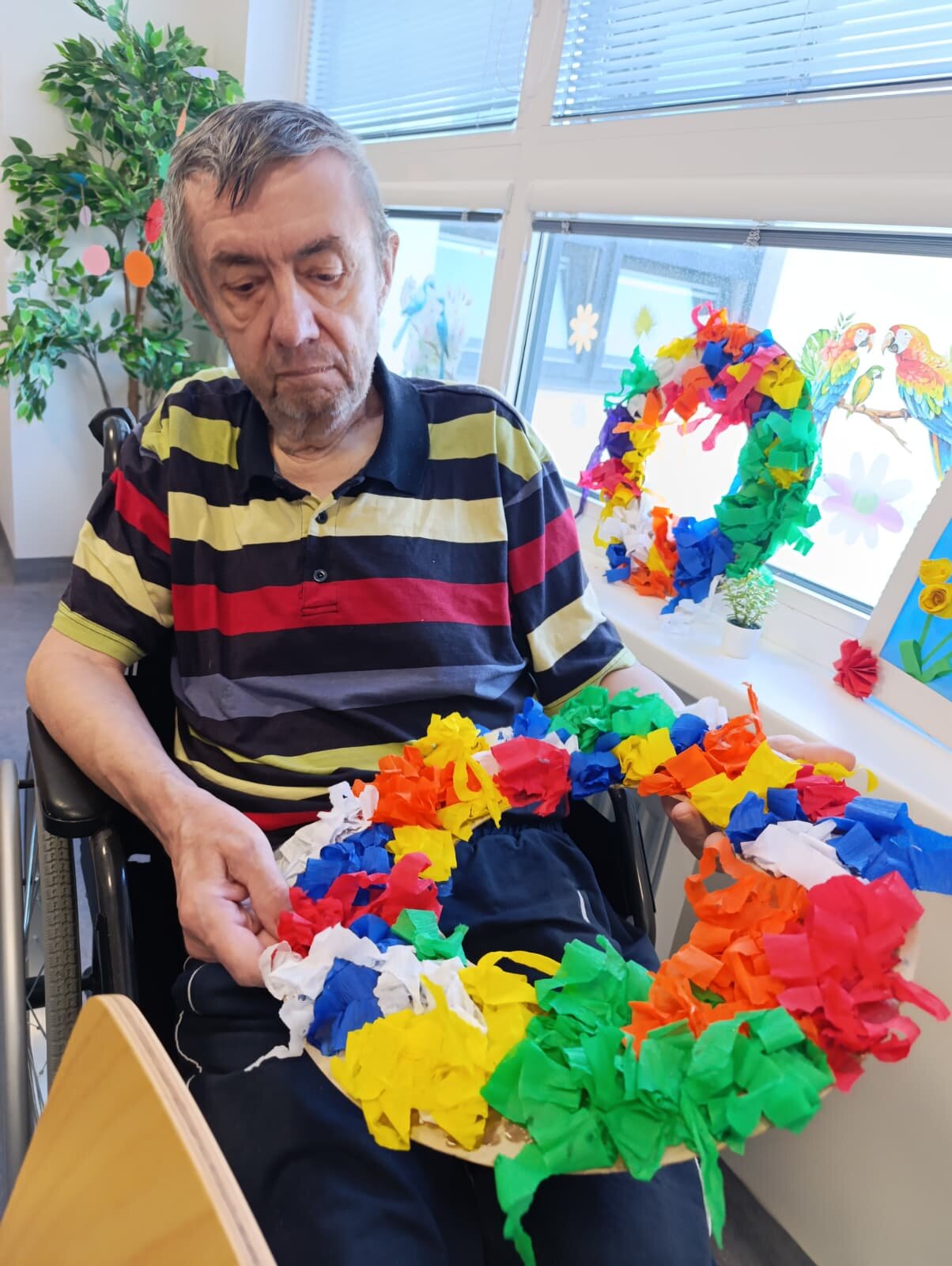 Náš Domov se proměnil v kreativní dílnu! 🎨✂️ S radostí jsme se věnovali tvoření a vznikaly pod rukama našich klientů nádherné věnce a papírové květiny. Každý účastník přidal svůj jedinečný talent a výsledkem jsou pestré a originální kousky, které nám dělají radost a zdobí naše prostory. Bylo úžasné vidět soustředění a uspokojení z povedené práce. Tvoření je pro nás skvělý způsob, jak rozvíjet dovednosti a zároveň se bavit.☺️