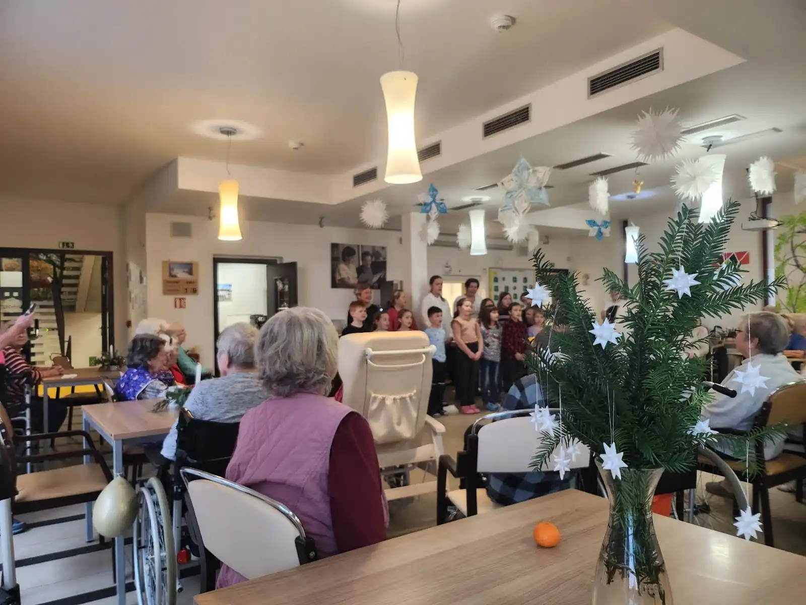 V Senevida Sychrov nás po krátké přestávce navštívily děti z nedaleké školy Radostín. Děti si připravily pro naše klienty hudební vystoupení a následně společnými silami vybarvovali obrázky. Děkujeme za návštěvu!😊