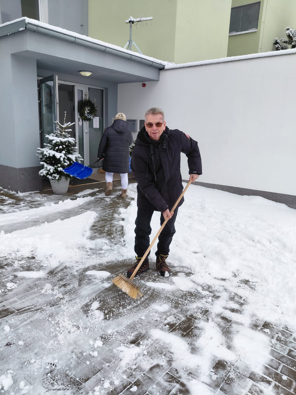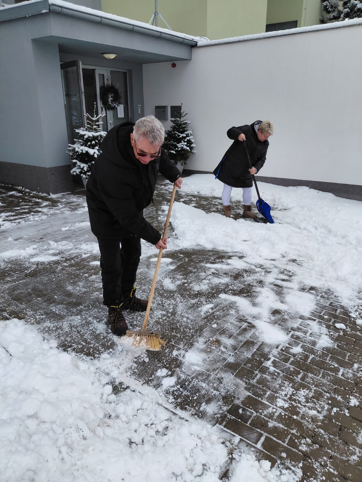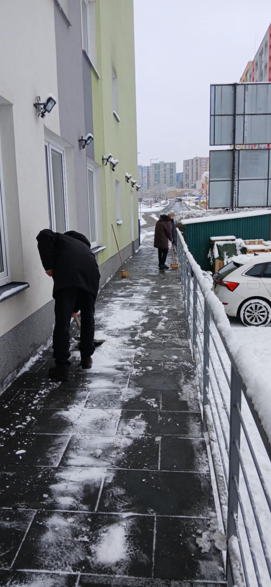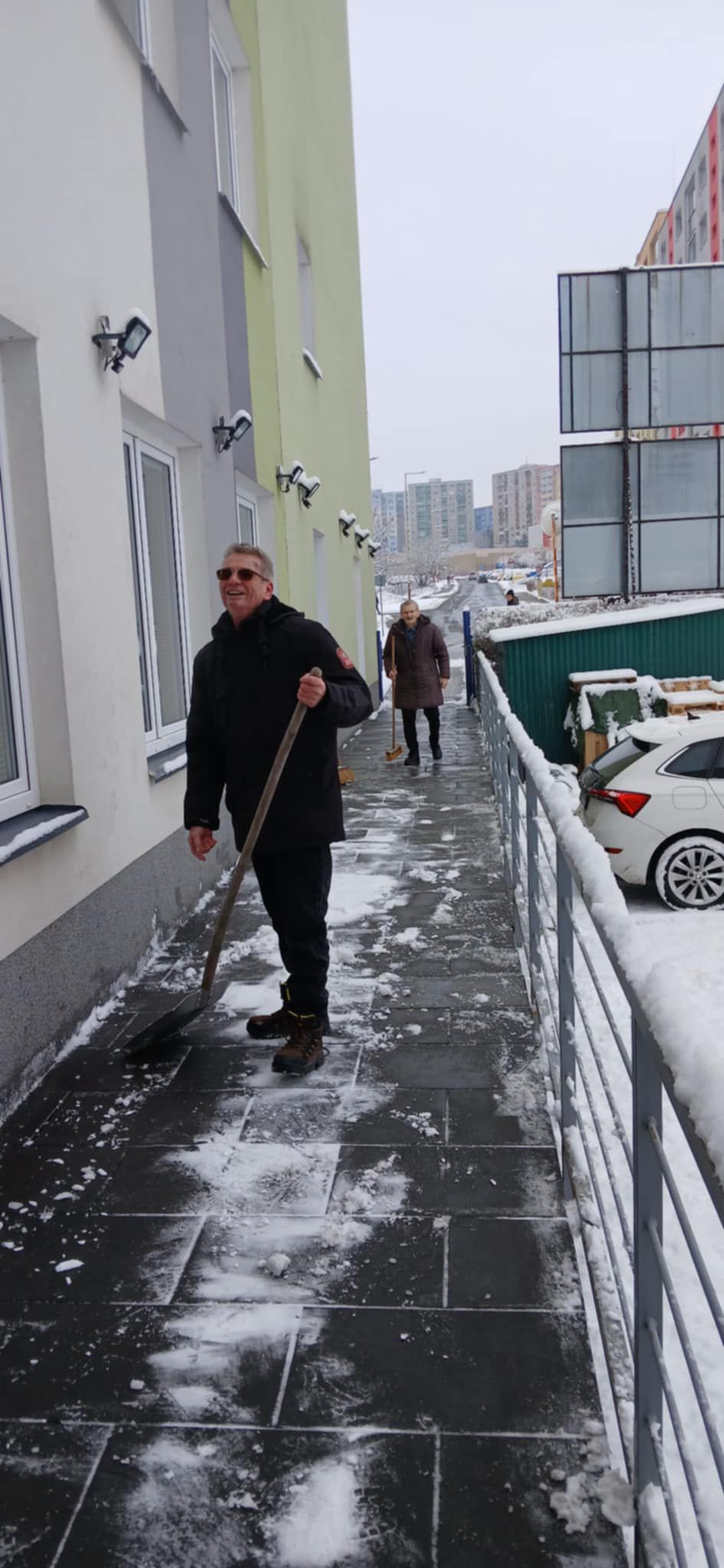 Naše klienty ani nenadálá sněhová nadílka nezaskočí. Sami odklidili sníh z chodníku před naším domovem i boční chodník kolem.