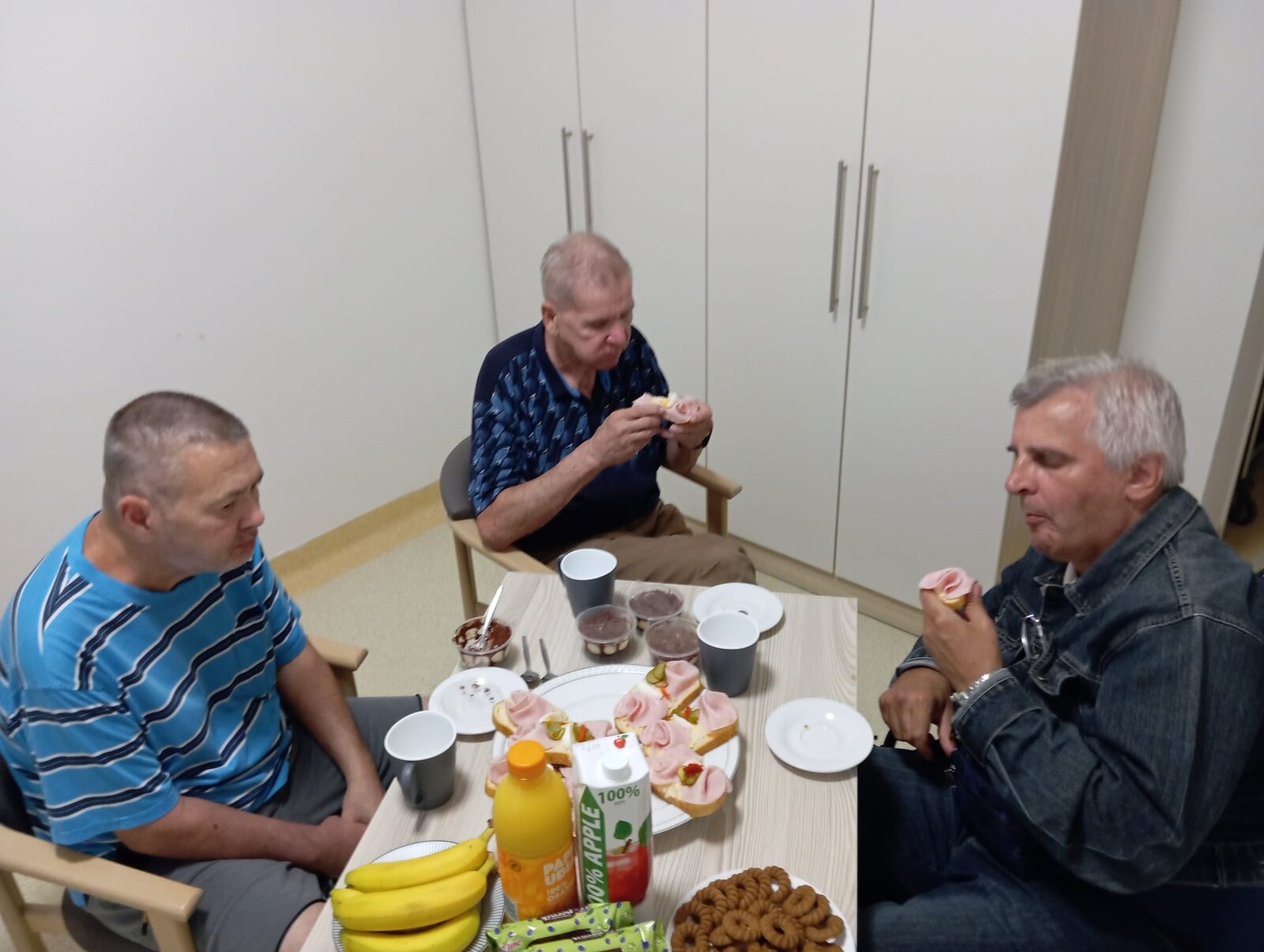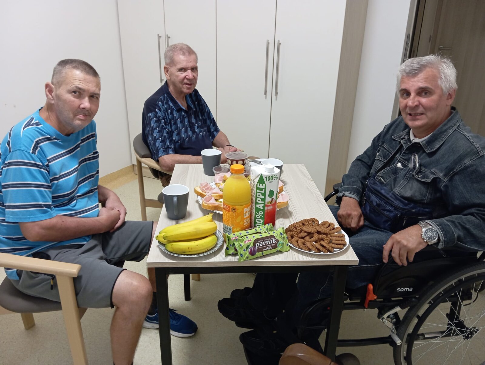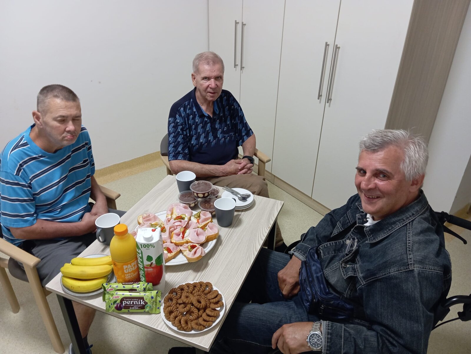 V našem zařízení Senevida Ostrava často vznikají i kamarádství mezi klienty. V tomto duchu proběhla i oslava jednoho z nich. Jeho rodina se postarala o pohoštění a silná trojka, jak těmto pánům říkáme, mohla v klidu slavit a užít si sváteční narozeninový den svého kamaráda.