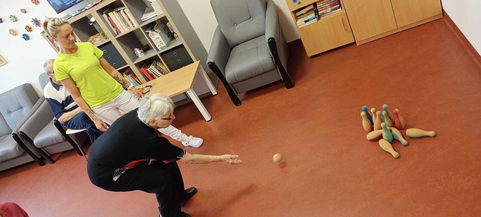 V rámci hraní kuželek podporujeme fyzickou a sociální aktivitu. Tato tradiční hra má bohatou historii a je oblíbená po celém světě i u nás v zařízení 🎉😍