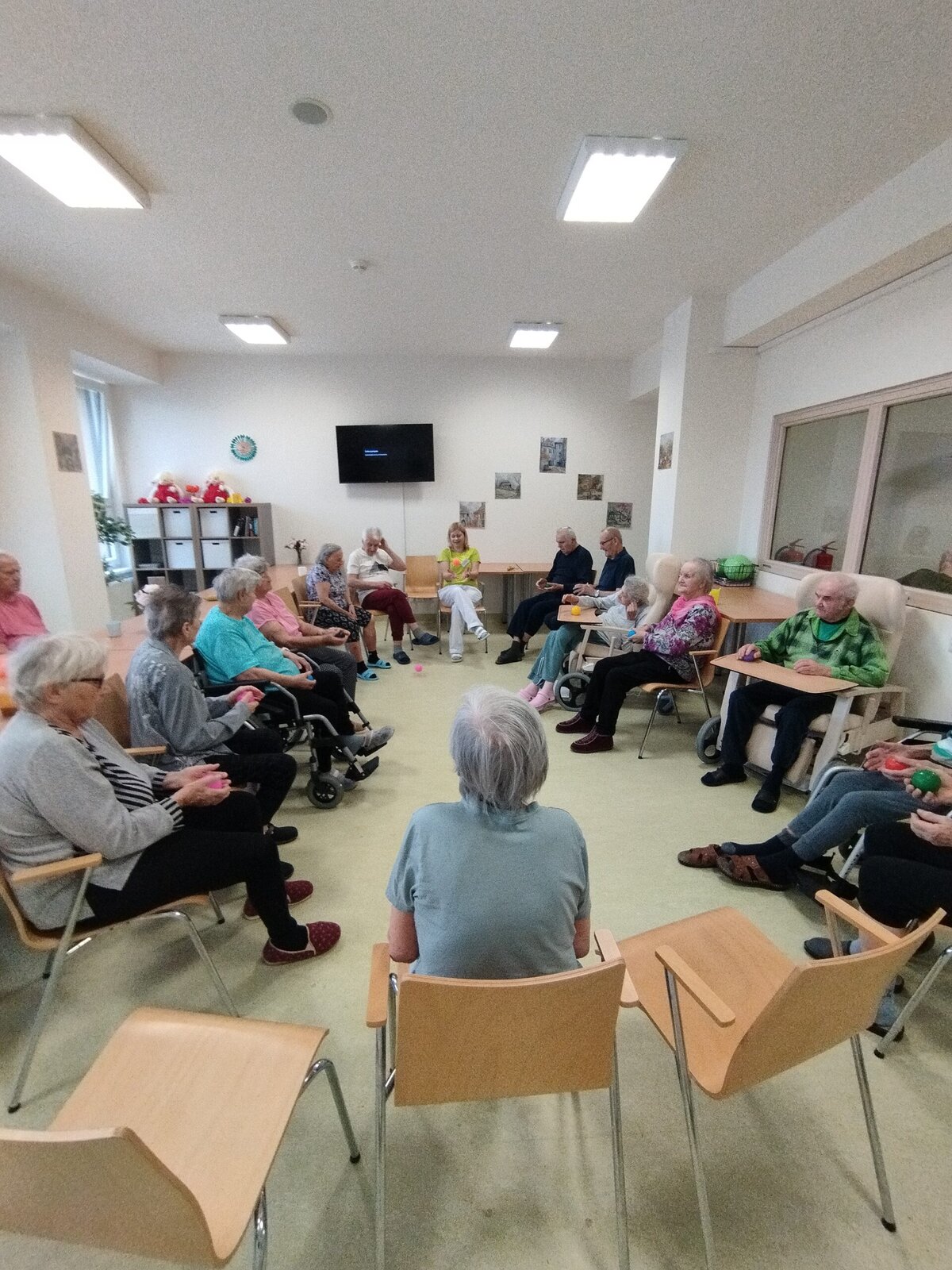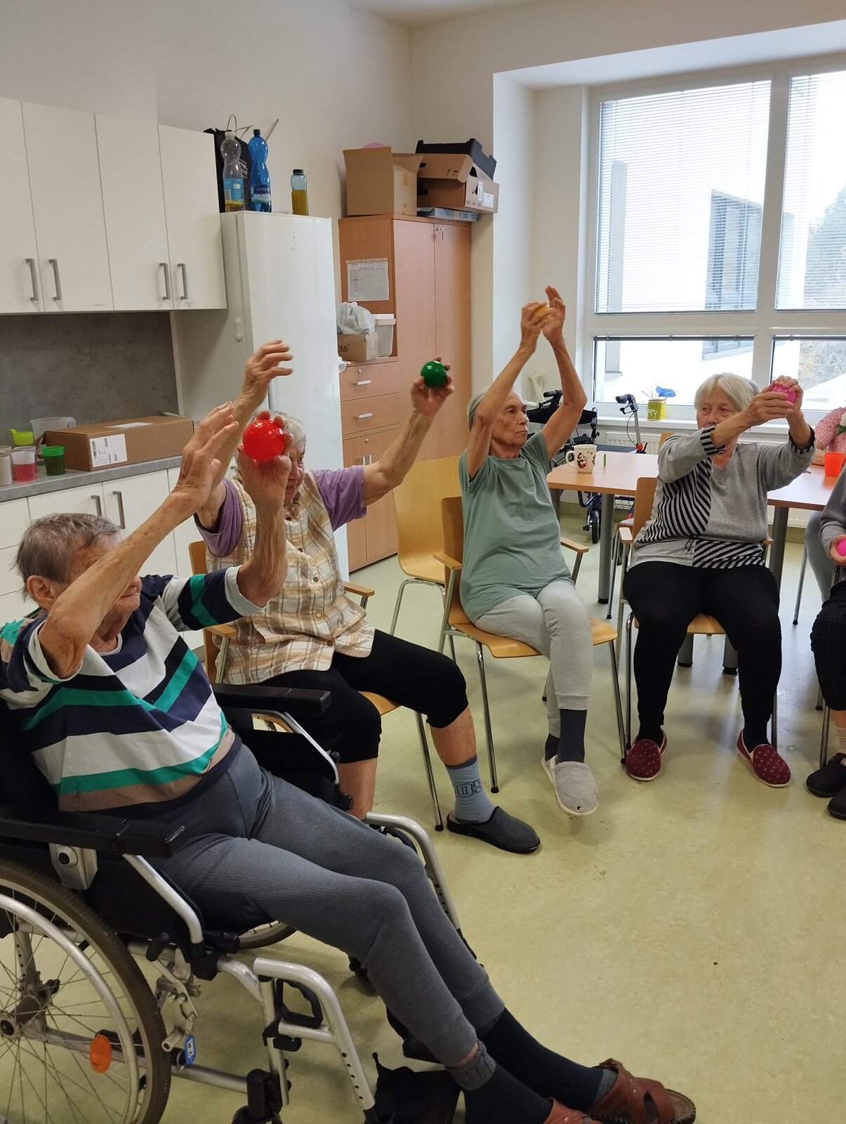 Někteří si u nás v Senevida Nepomuk rádi zahrají fotbal ⚽, jiní zase procvičí ruce pomocí malých míčků. ⚾ Najdou se i tací, kteří se toho nebojí a cvičí na zemi v sedě s overballem. 🥎 Nejdůležitější však je, že se ve cvičení podporujeme navzájem, a tak společně rozvíjíme a posilujeme zachovalé funkce našich organismů. ❤️