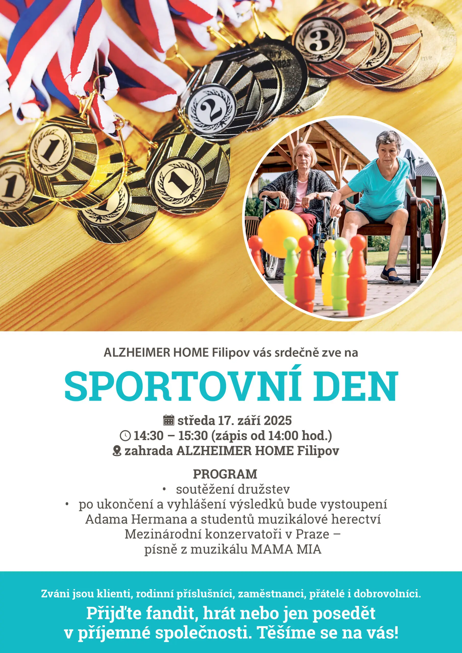 srdečně Vás zveme na Sportovní hry klientů, které se uskuteční ve středu 17.9.2024 od 14:30 hod. na zahradě našeho zámku ve Filipově.