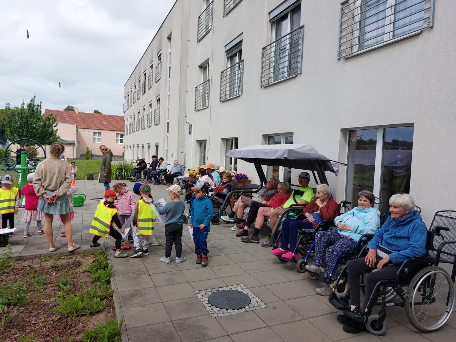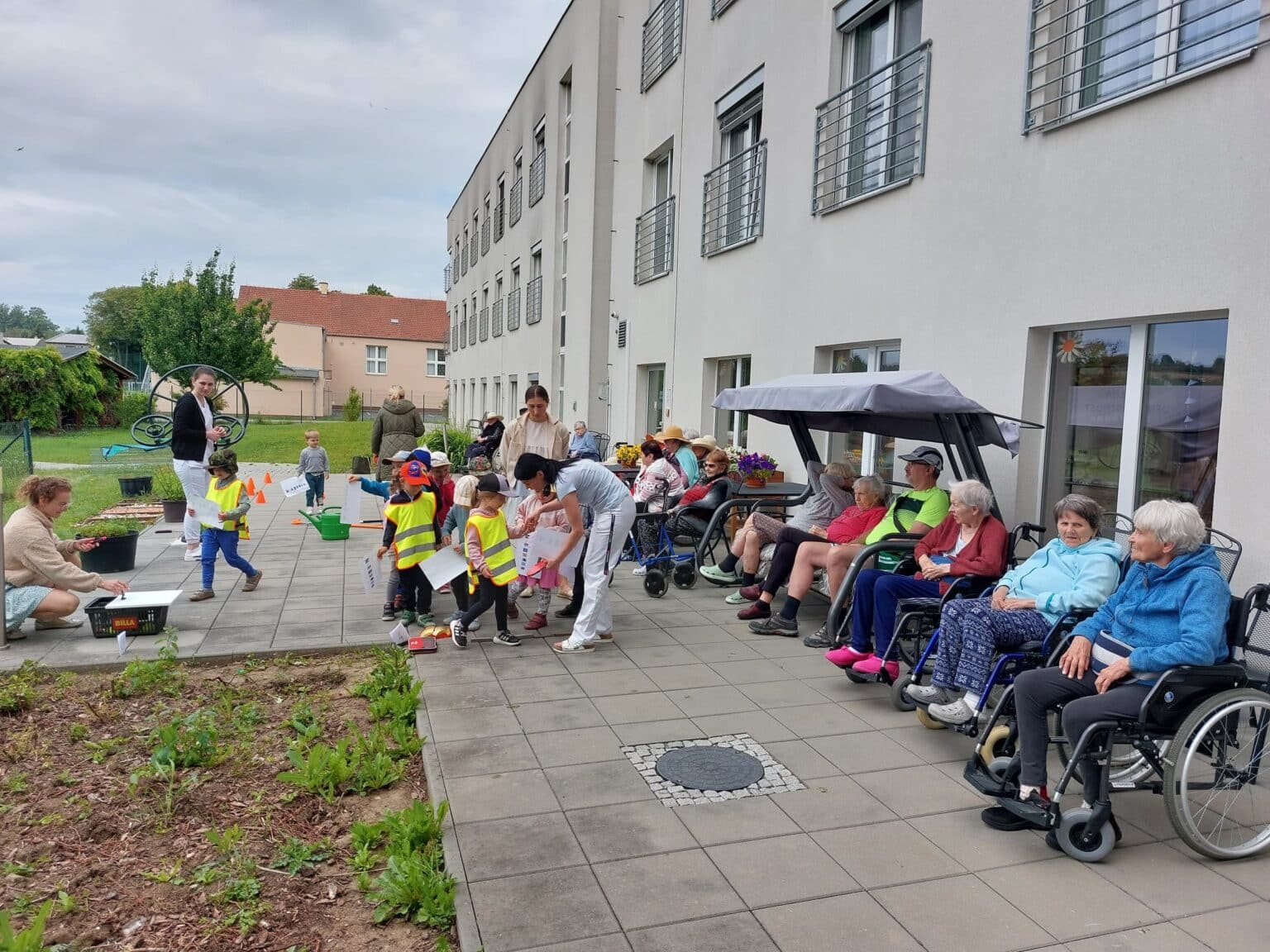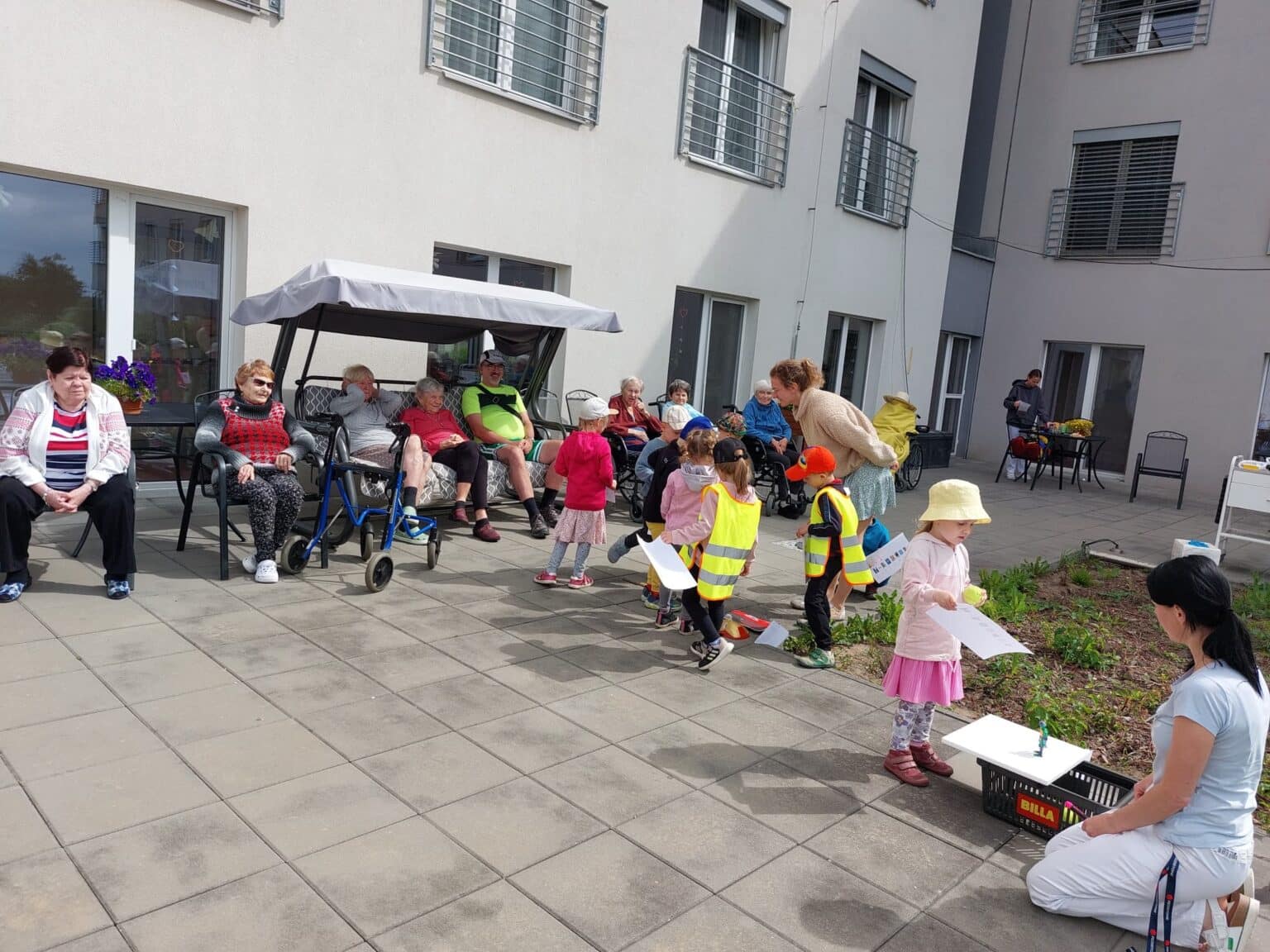 Den byl plný aktivit – od rána až do odpoledne. Spolupráce s mateřskými školkami se nám promítla i do dalšího dne. S blížícím se dnem dětí jsme uspořádali na zahradě našeho domova sportovní den.