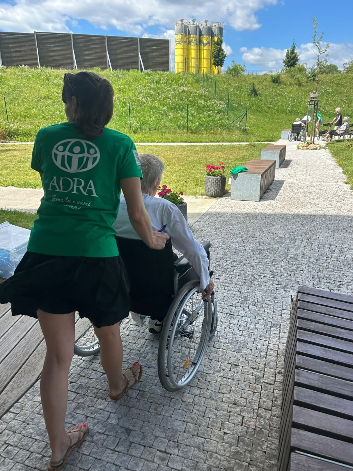 Na konci června jsme měli možnost využít opět štědrosti organizace ADRA a osobní angažovanosti dobrovolníků, kteří nás navštívili a strávili s námi dopoledne plné aktivit na zahradě našeho domova.