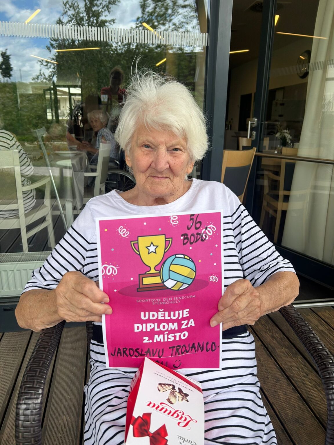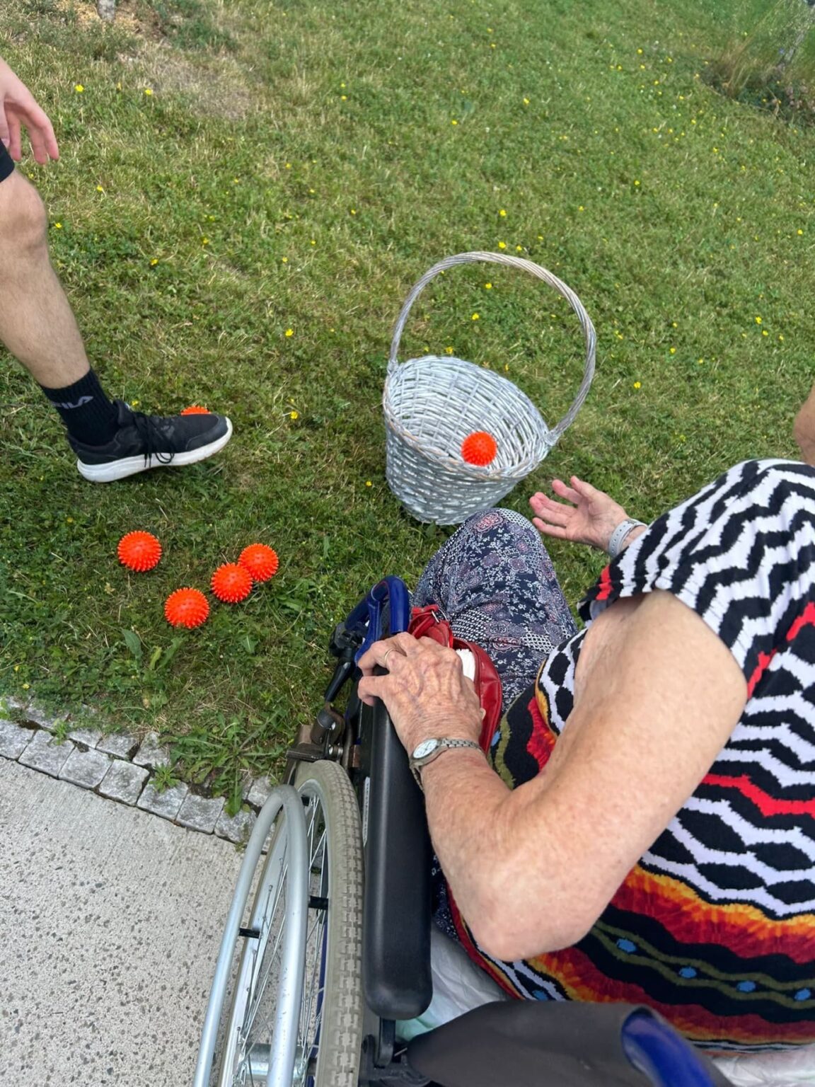 Celý den se nesl v duchu „Sportovního dne“, konkrétní aktivity jsme samozřejmě upravili možnostem klientů. Soutěžilo se například v hodu na terč, petagu nebo kuželkách.
