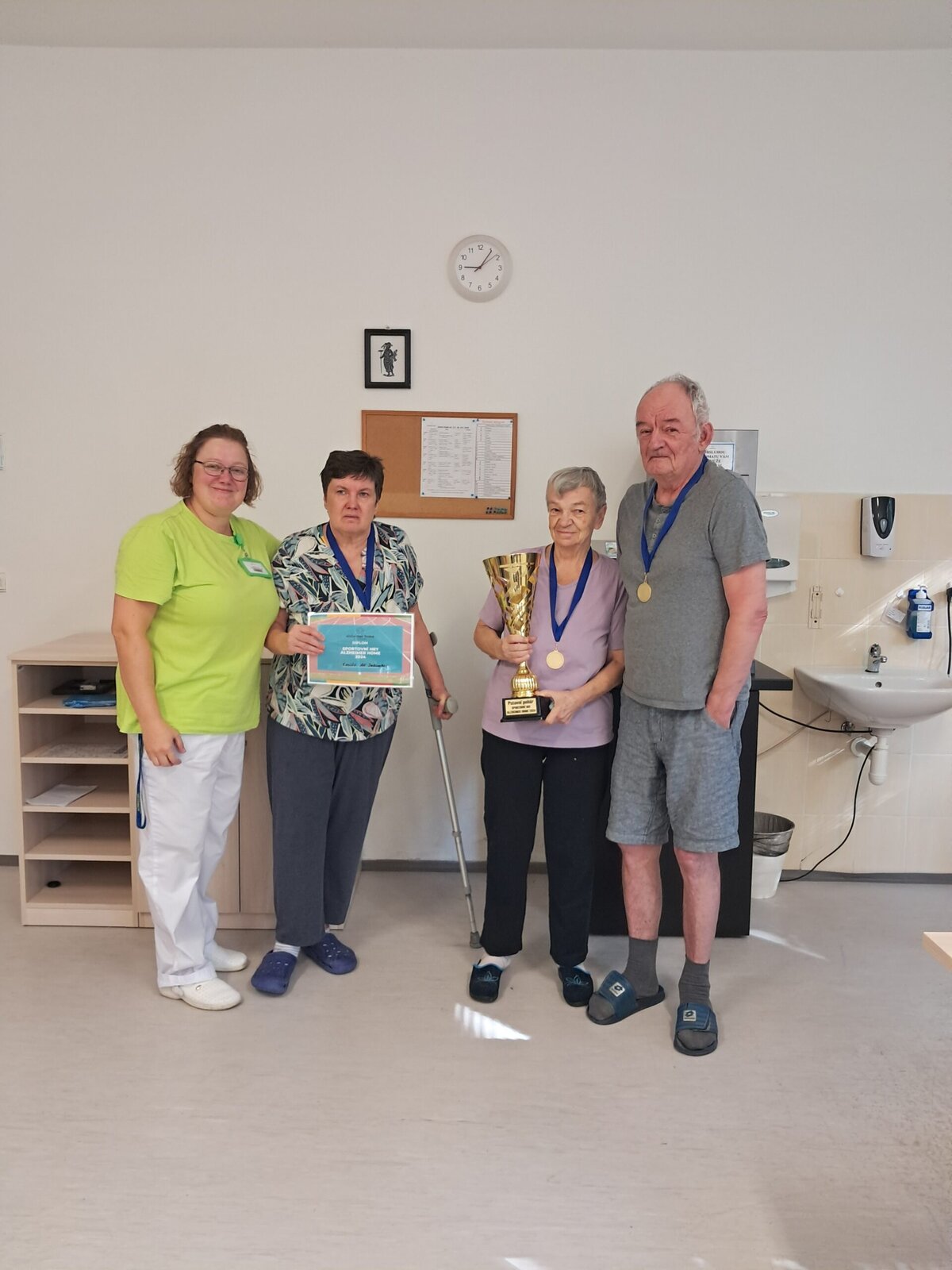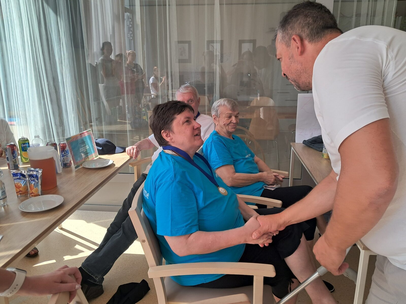 Dnes jsme pro náš tříčlenný tým zorganizovali oslavu vítězství, paní ředitelka klientům poděkovala za skvělou reprezentaci našeho zařízení, nechyběl přípitek a něco sladkého k snědku. Gratulujeme všem klientům! 👏 Děkujeme jim za účast a díky také patří pořadatelům za kvalitní organizaci a zábavu. Moc jsme si to užili a těšíme se na příští hry👍.