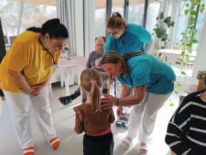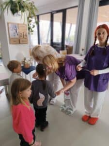 Paní učitelky i děti však nezapomněly ani na naše klienty a připravily si pro ně malé vystoupení a zazpívaly jim několik písniček a říkanek.