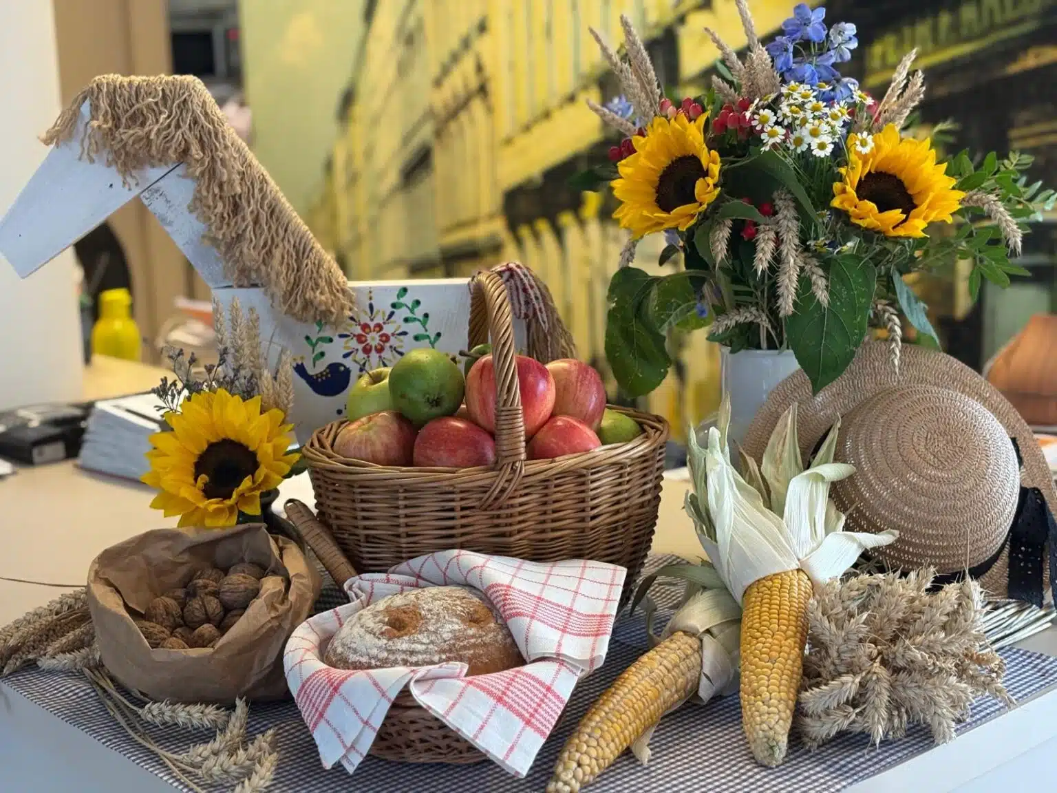 Pan Karel Kekeši s akordeonem v ruce zahrál a zazpíval na úvod. Než se paní ředitelka postavila k mikrofonu, aby přivítala všechny hosty, klienty i zaměstnance, převzali pomyslnou štafetu právě zaměstnanci a zazpívali dvě nacvičené lidovky. Ještě šéfkuchař objasnil nabízené menu, sestavené tak, aby demonstrovalo téma letošní slavnosti. V nabídce byly různé druhy mas i jitrnic, koláčů i kremrolí, dalších salátů a dobrot. K pití bylo podáváno zlatavé pivo i víno, kofola i káva. Zvláště děti, ale také nejeden klient, si přišel na své u pultu se zmrzlinou.