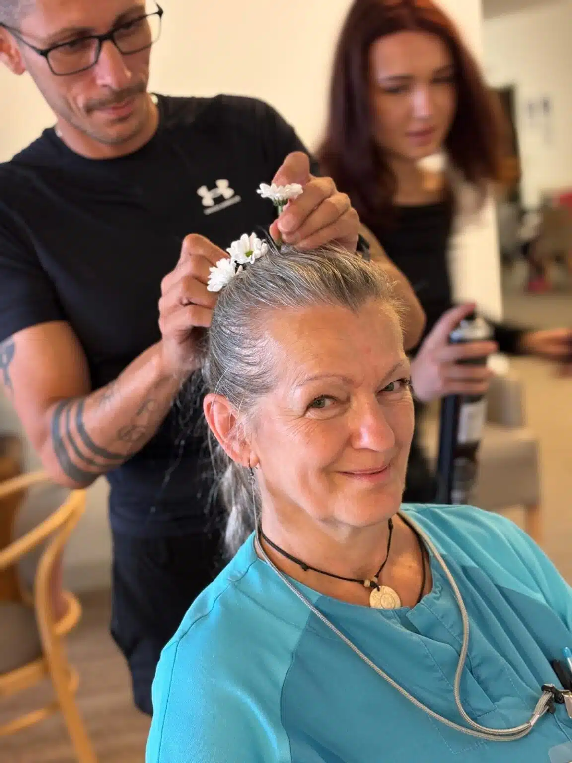 Zahrada je díky dobrovolníkům krásně uklizená, sluníčko by mělo také chvíli svítit. Teď už jen postavit přístřešky, naaranžovat kytky a dobroty, dodělat cukroví, nafouknout balónky, vetknout květy do copů. To a spousta dalších důležitých činností byla potřeba udělat, aby ve 14:00 hodin 10. září 2025 mohla vypuknout největší sláva na půdě SeniorCentra Klamovka.