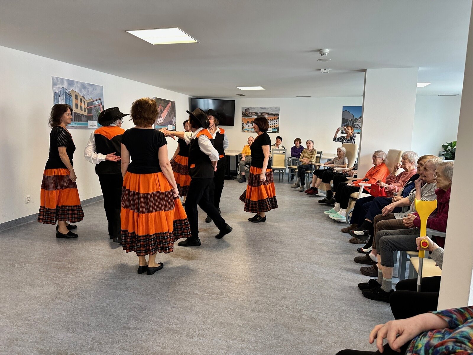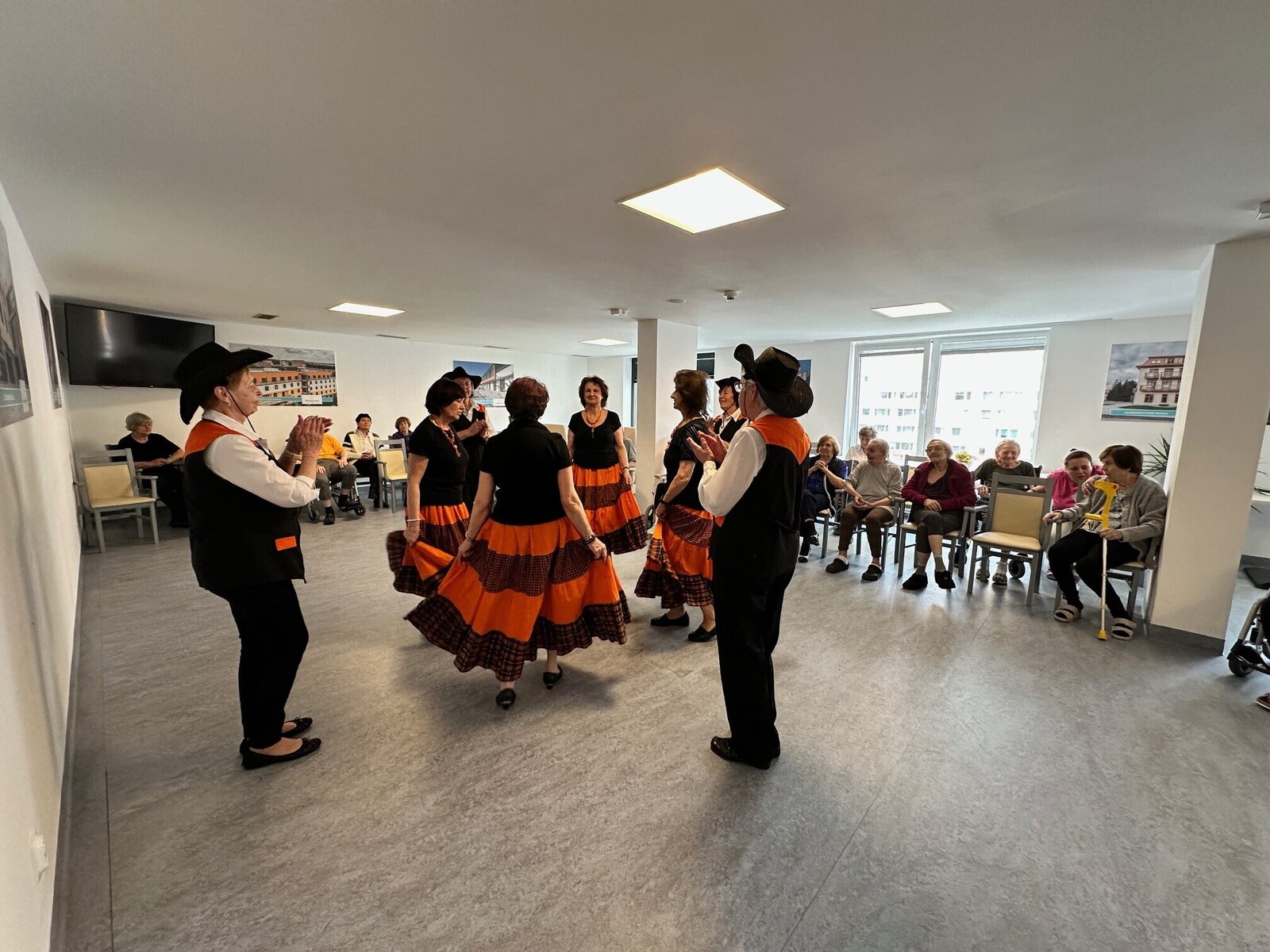 Klientům z ALHEIMER HOME Jasmín přišla předvést svůj um taneční skupina Hortenzie. Našim klientům dámy předvedly hezké a energické taneční vystoupení. 💃 Naši klienti si maximálně užili nejen jejich tanec, ale i výběr písní, na které zatančily. 🎶 Byly to totiž ty klasické hity z tancovaček, které naši klienti v mládí tak rádi navštěvovali. Děkujeme za Vaše krásné vystoupení. 💙