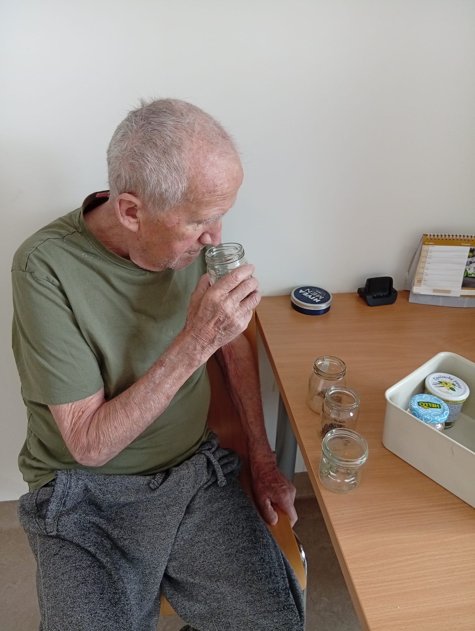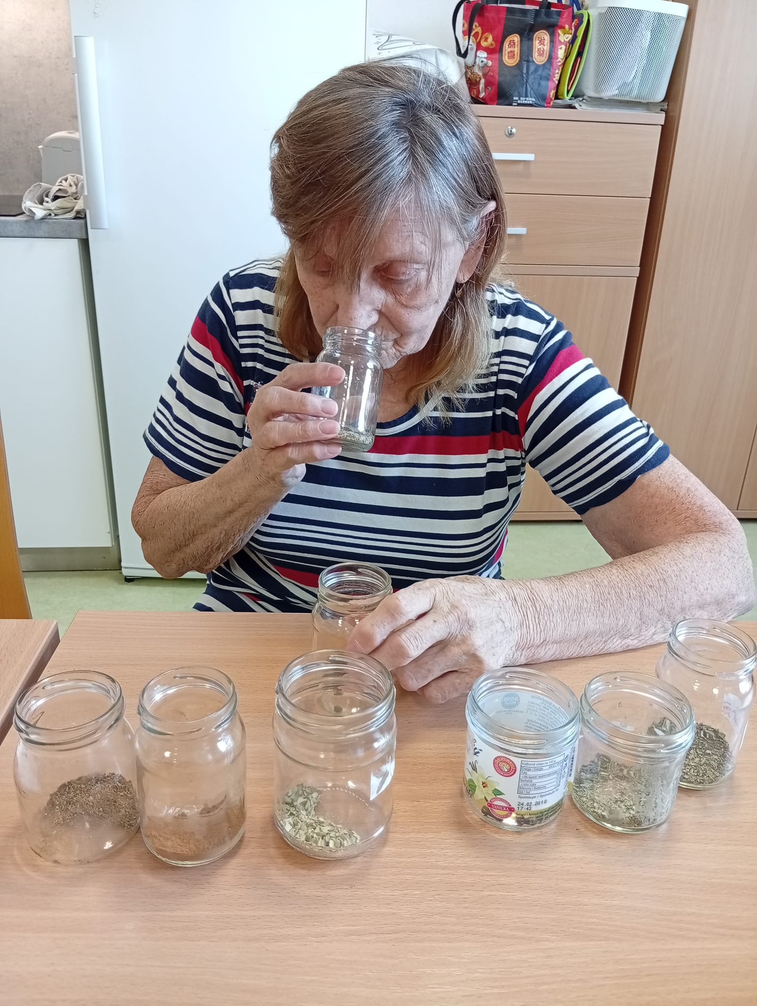 V Senevida Nepomuk klienti zapojili nos! 👃 Klienti se sešli k aktivitě zaměřené na smyslovou stimulaci, konkrétně na trénink čichu pomocí různých druhů koření. K dispozici byla celá řada intenzivních vůní – od skořice přes hřebíček. Smyslová aktivizace přinesla mnoho zábavy a probudila krásné vzpomínky.