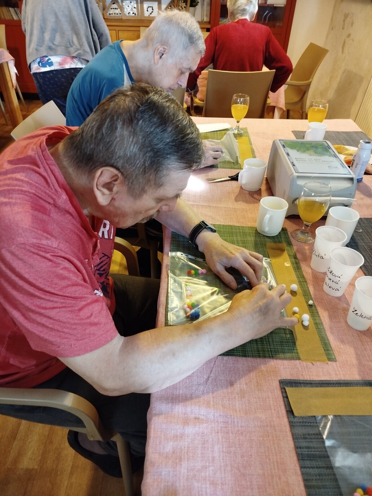 Dnes jsme si v Senevida Pyšely v rámci procvičení jemné motoriky zahráli na popelku. Protlačovali jsme kuličky přes otvor a dále podle barev roztřídili.