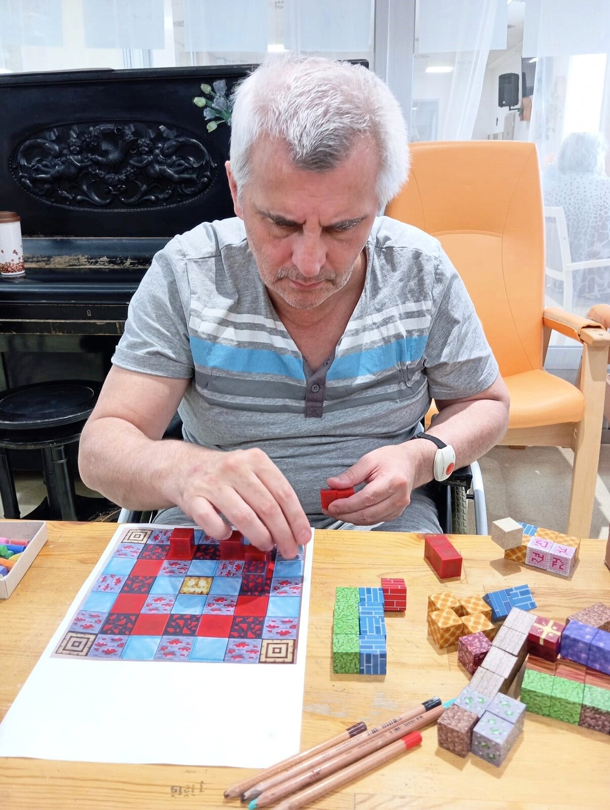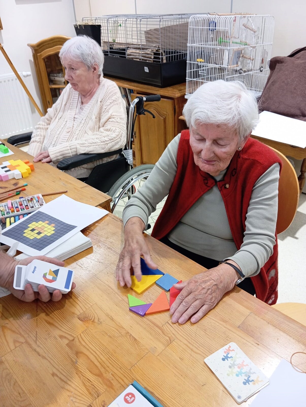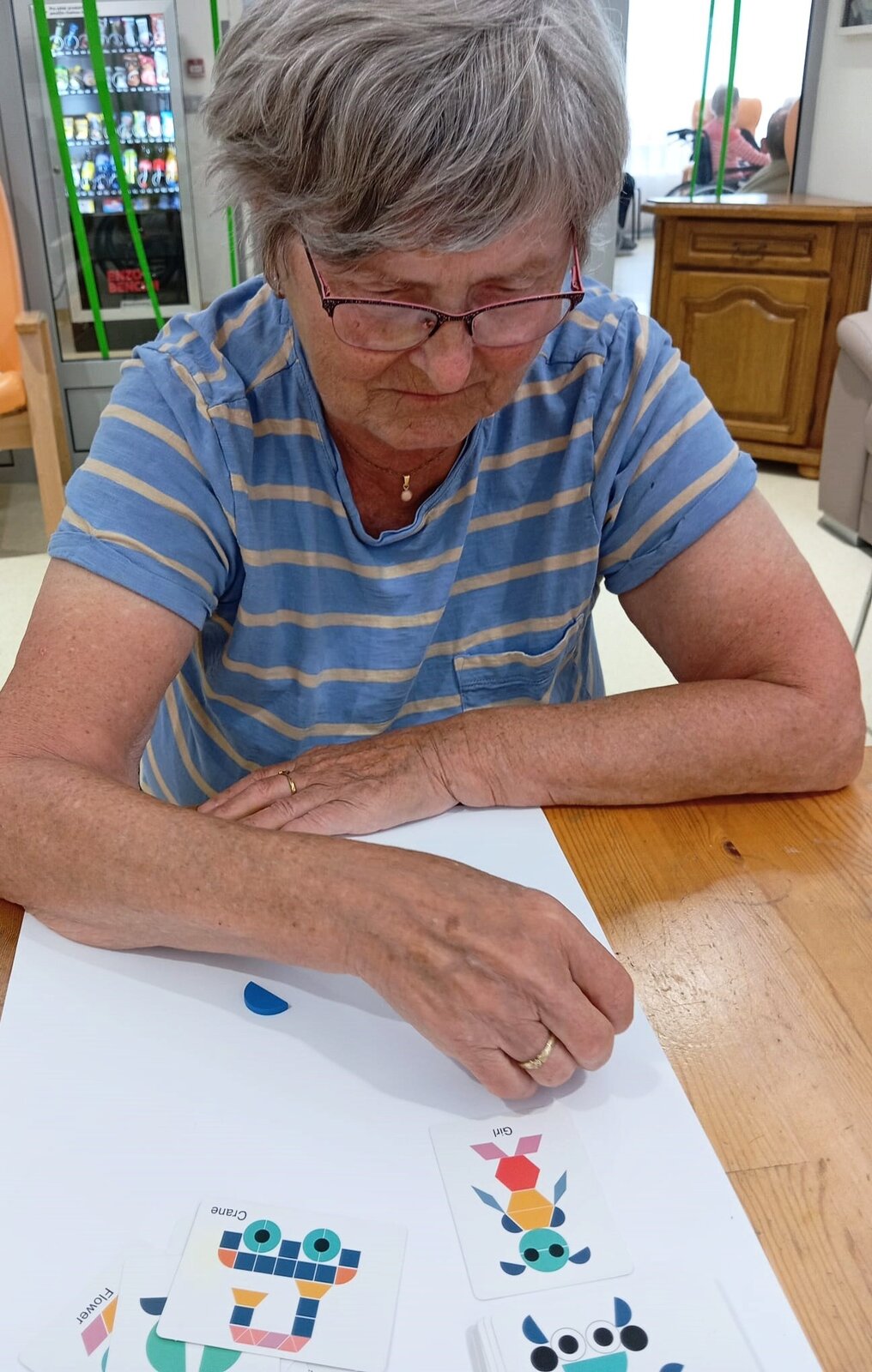 K oblíbeným patří například osmisměrky, domino, skládání obrazců, ale i vybarvování obrázků v daných obrysech. Ruku v ruce se při těchto aktivitách procvičuje i jemná motorika, která je důležitá k zvládání běžných denních činností, jakými je třeba oblékání, hygiena, nebo používání příboru.