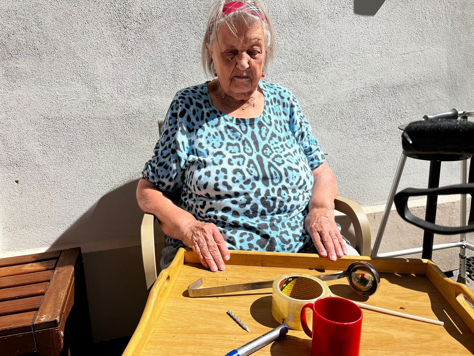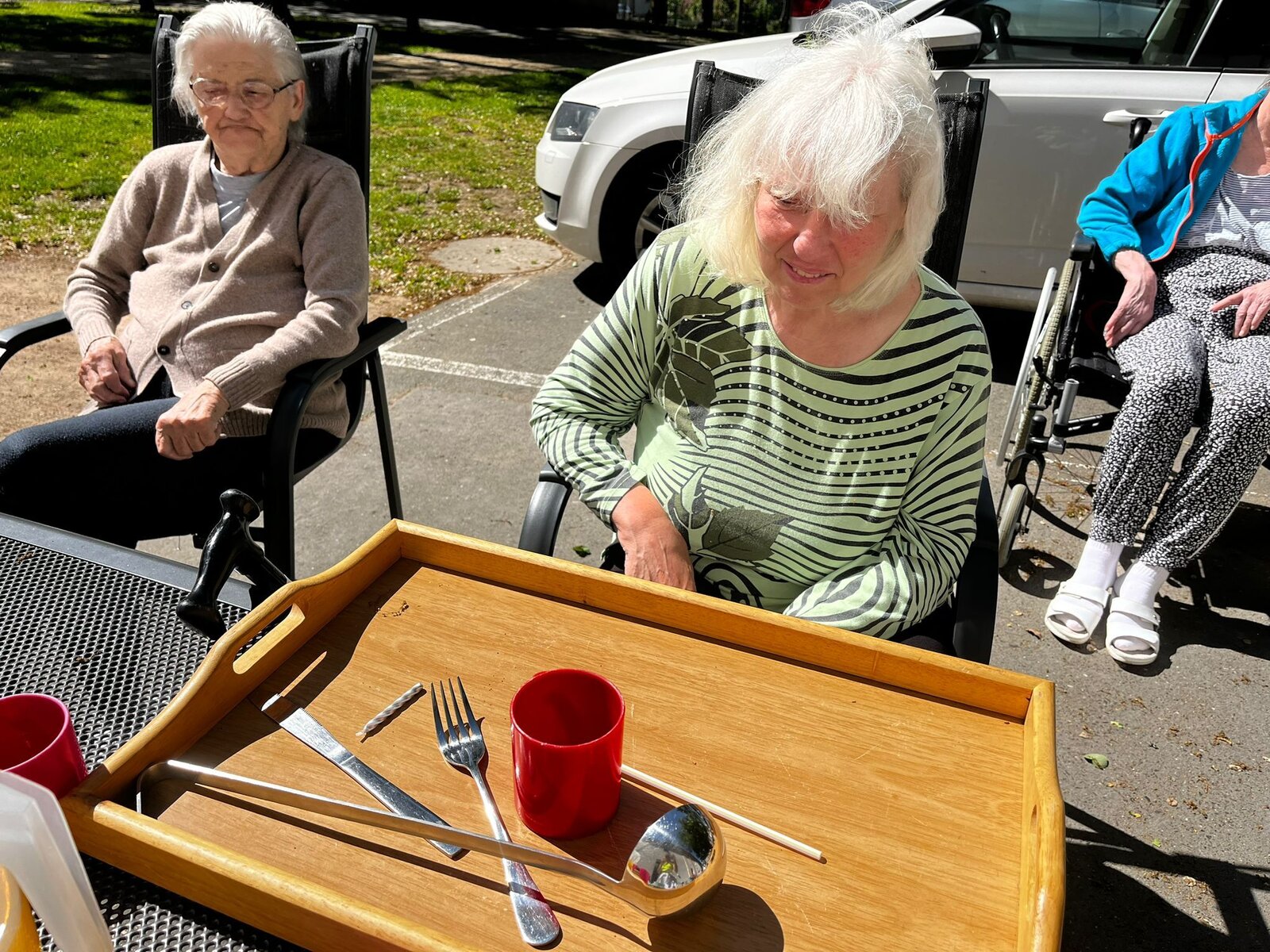 S klienty jsme trénovali krátkodobou paměť. Jejich úkolem bylo zapamatovat si co nejvíce předmětů. Dále jsme se snažili si zapamatovat nákupní seznam, nebo recept. Klienti se dobře bavili, a to to více, že se aktivita konala venku při krásném počasí.