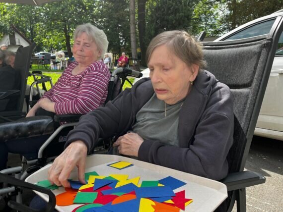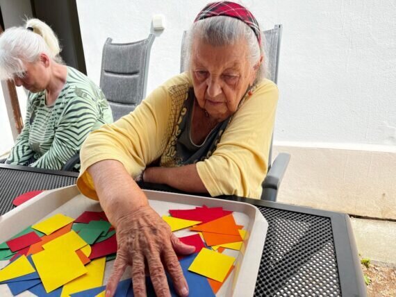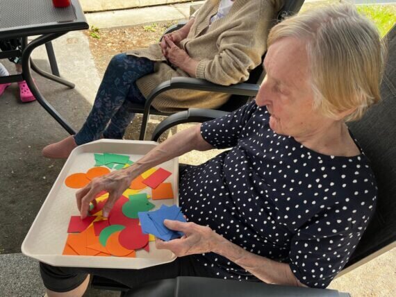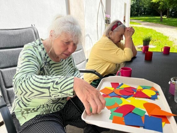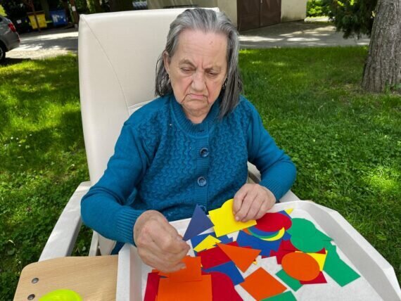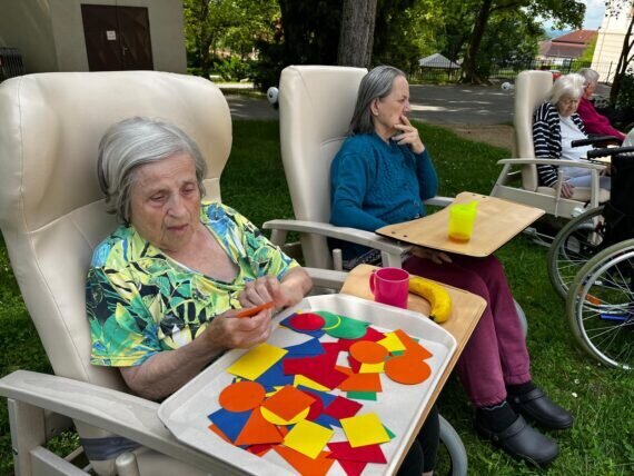 S našimi klienty v Senevida Pyšely dbáme i na trénování paměti. S barevnými geometrickými tvary jsme procvičovali jemnou motoriku, třídění podle tvarů a barev, počítání. A to vše pěkně venku na čerstvém vzduchu.
