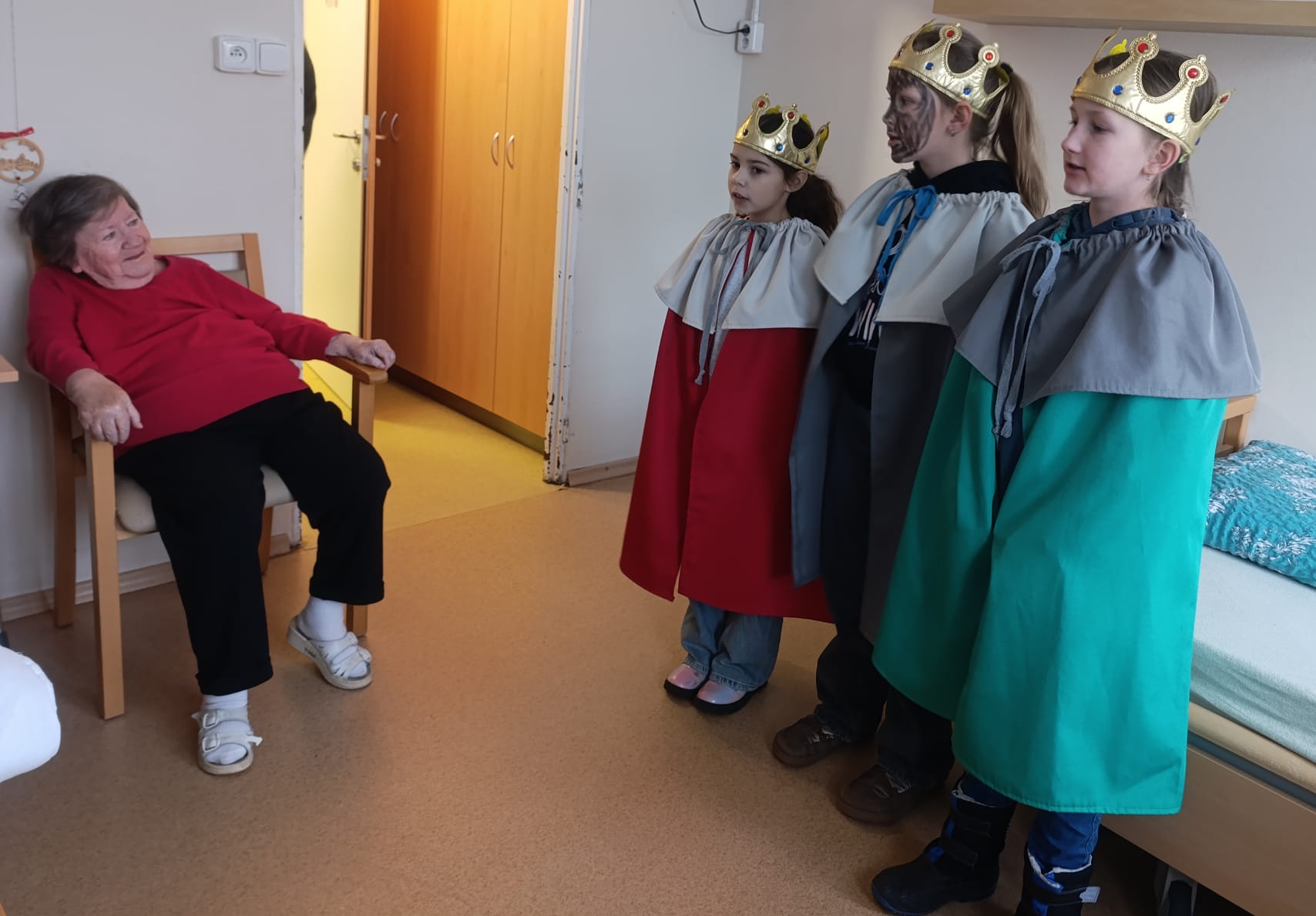 Dnes v našem domově proběhla milá návštěva Tří králů z Charity Písek. Klienti byli seznámeni s tradicí Tří králů a společně jsme si připomněli význam tohoto svátku. Návštěvu doprovázelo zpívání tříkrálových písní, do kterého se někteří klienti s radostí zapojili. Součástí programu bylo také tradiční napsání požehnání na dveře posvěcenou křídou.