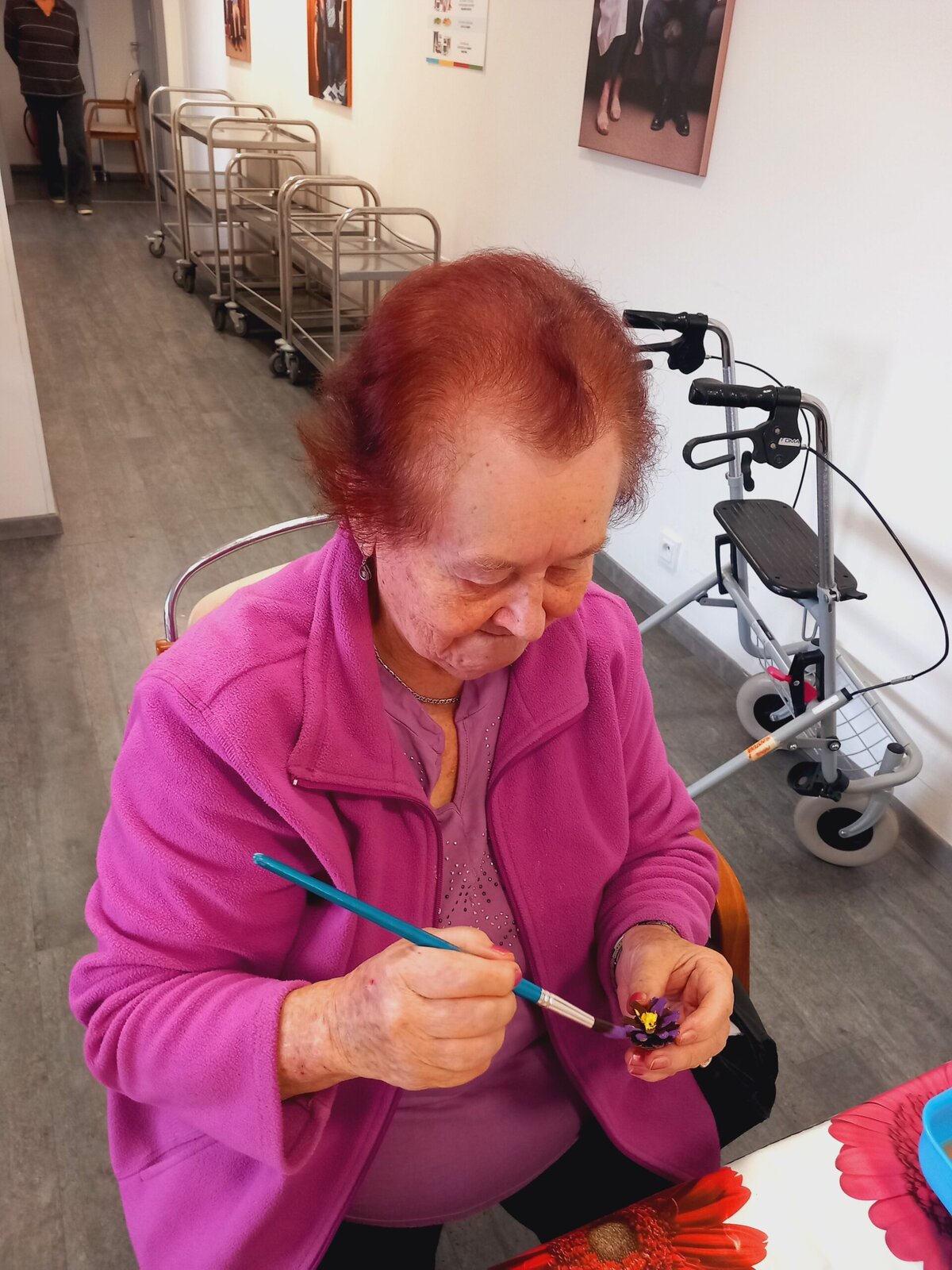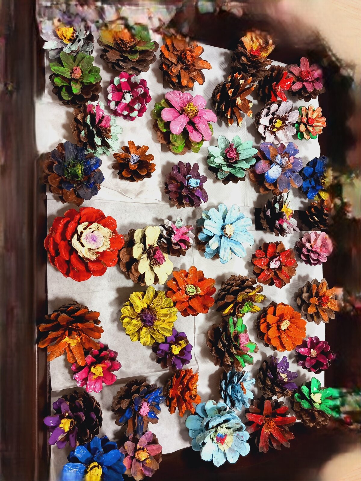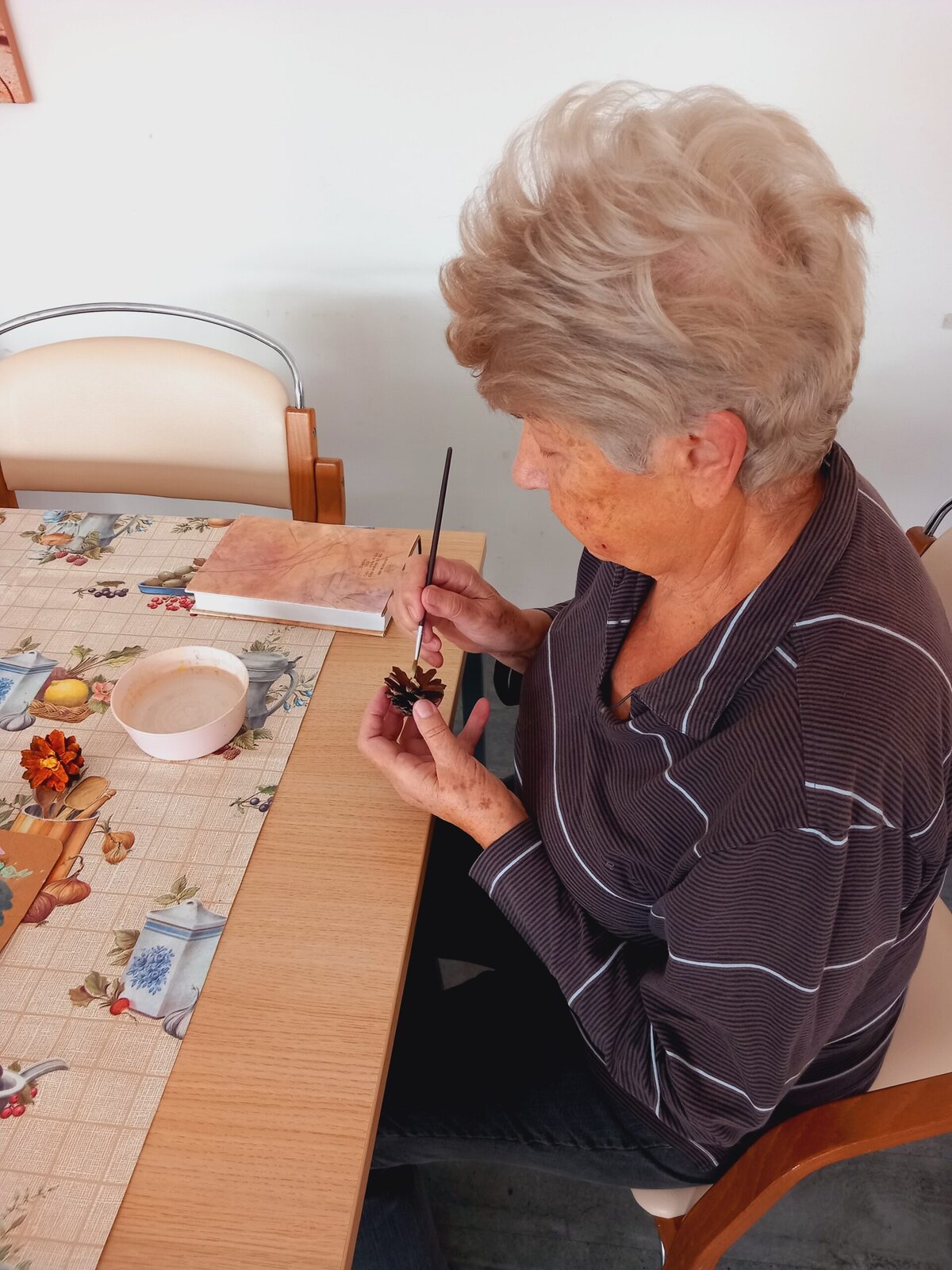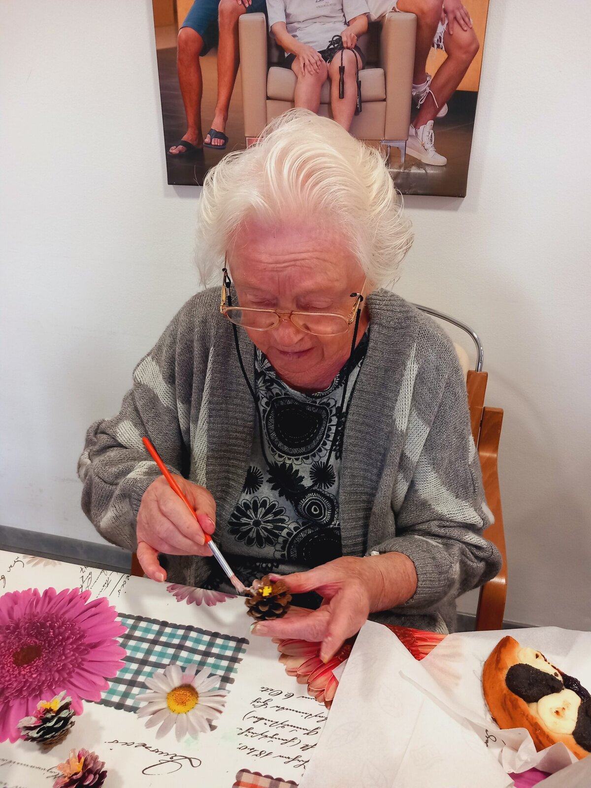 V Senevida Pitkovice jsme malovali na šišky. Z rozpůlených šišek jsme temperami vytvořili barevné květiny. Klienti malovali se zaujetím a podařilo se jim vykouzlit opravdu krásné květiny. Z hotových výrobků vytvoříme obraz pro naše malé přátele z MŠ Křeslice.