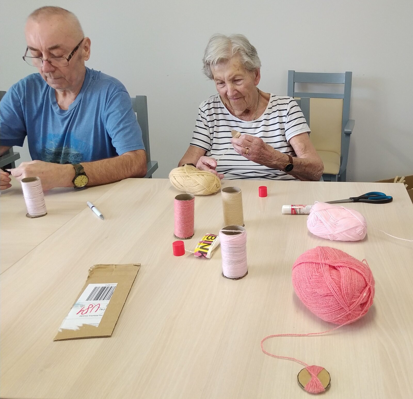 Dnes jsme se vrhli do tvoření rozkošných dárečků pro naše malé kamarády ze školky. 🧒 Děti nám často dělají radost nejen jejich návštěvou ale také tím, že nám často nosí krásné výrobky, které nám zdobí aktivizační místnosti a nástěnky. 😊 Při pohledu na tyto krásné výrobky si vždy vzpomeneme na tyto veselé návštěvy.