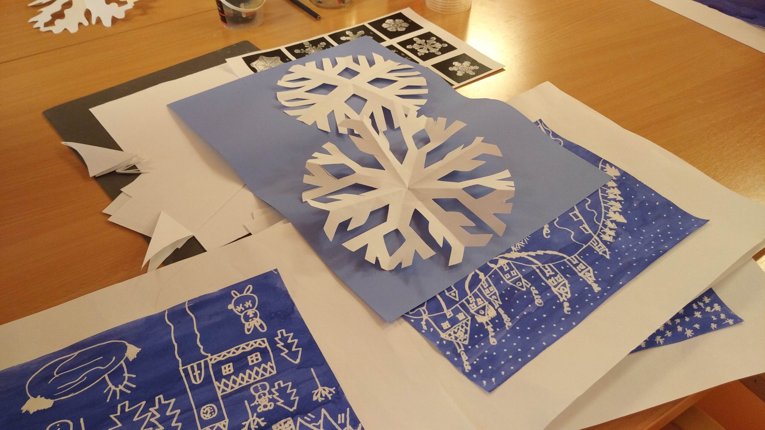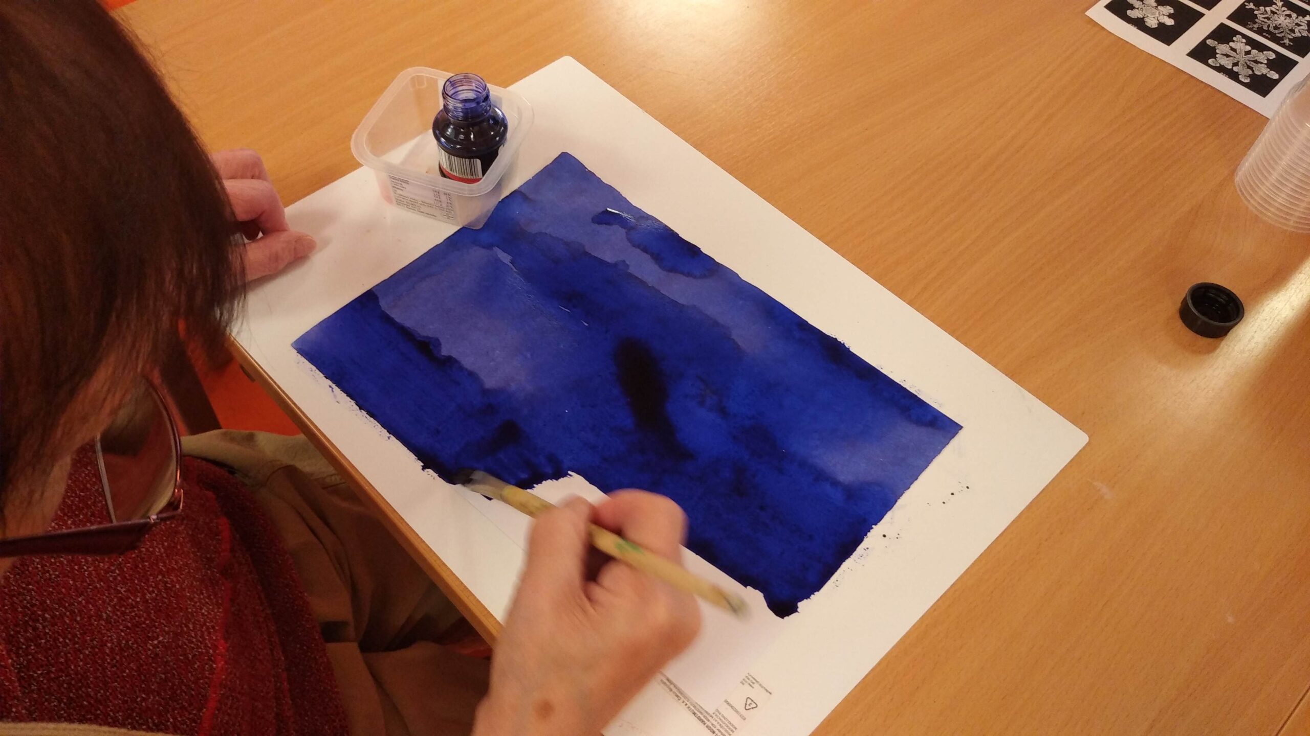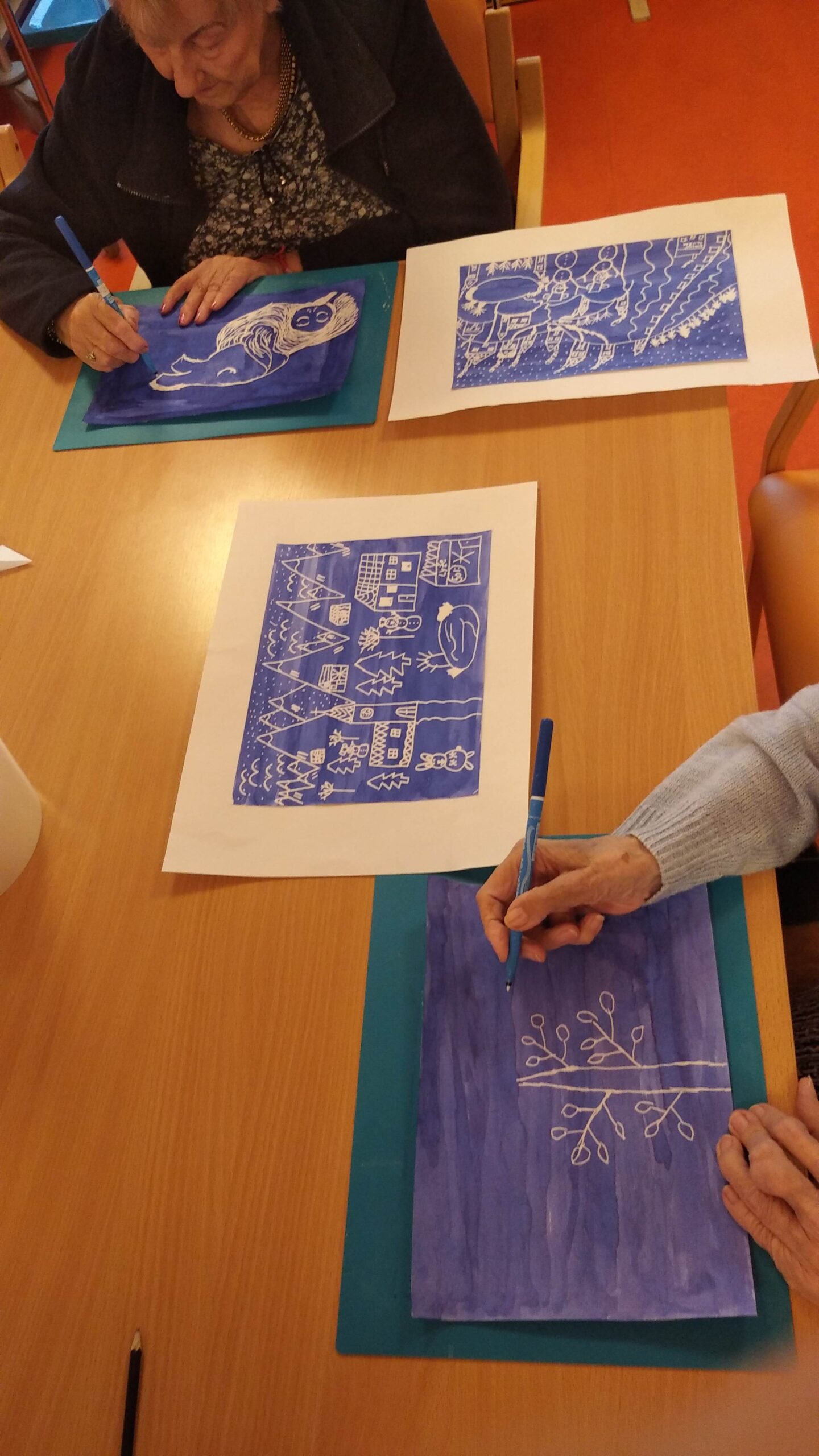 V rámci tvořivé dílny jsme se tentokrát ponořili do zimní atmosféry a společně tvořili zimní krajinky za pomocí inkoustu a zmizíku.