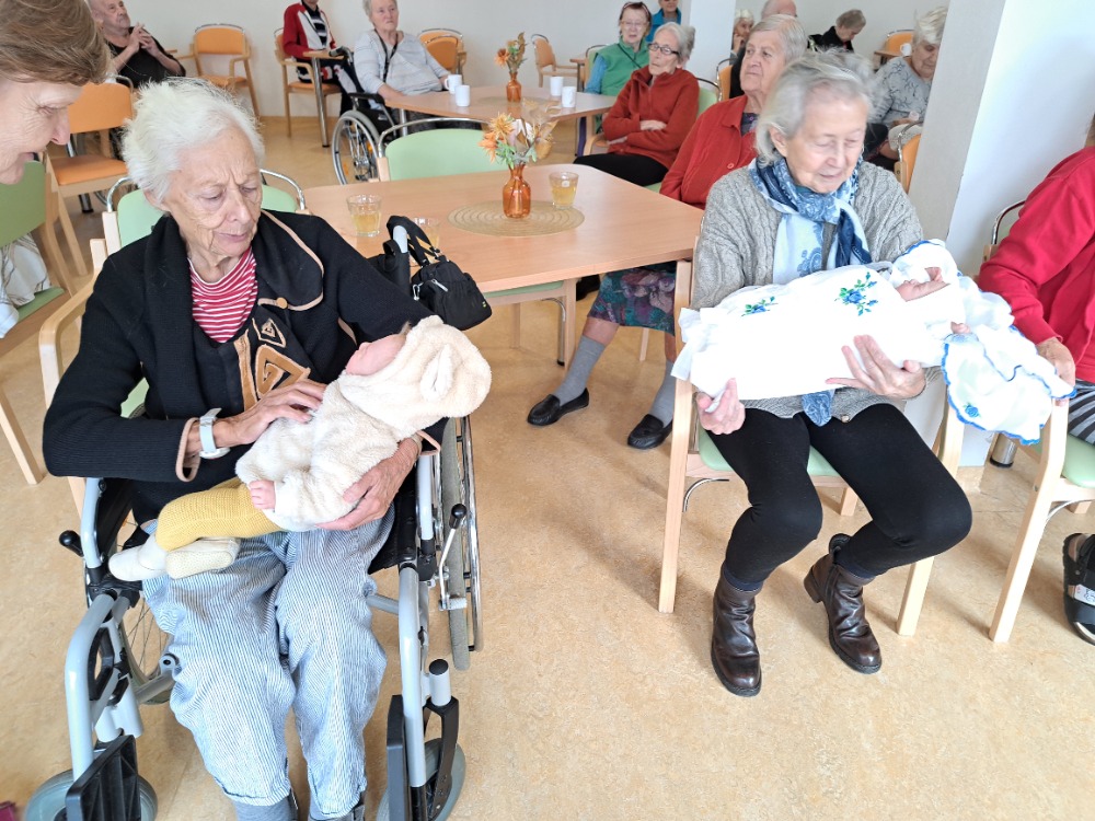 Po poutavé přednášce si mohli klienti každou z panenek pochovat, prohlédnout si je zblízka a vyzkoušet si, jak realisticky působí. Setkání vzbudilo velké nadšení – mnohým připomnělo mládí, rodičovské či prarodičovské vzpomínky, a atmosféra byla plná radosti i dojetí.