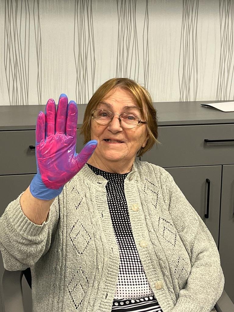 Také jsme se věnovali kreativnímu tvoření, vystřihovali jsme výzdobu na okna, otiskovali ruce
