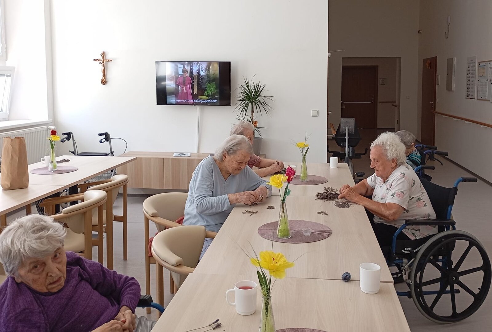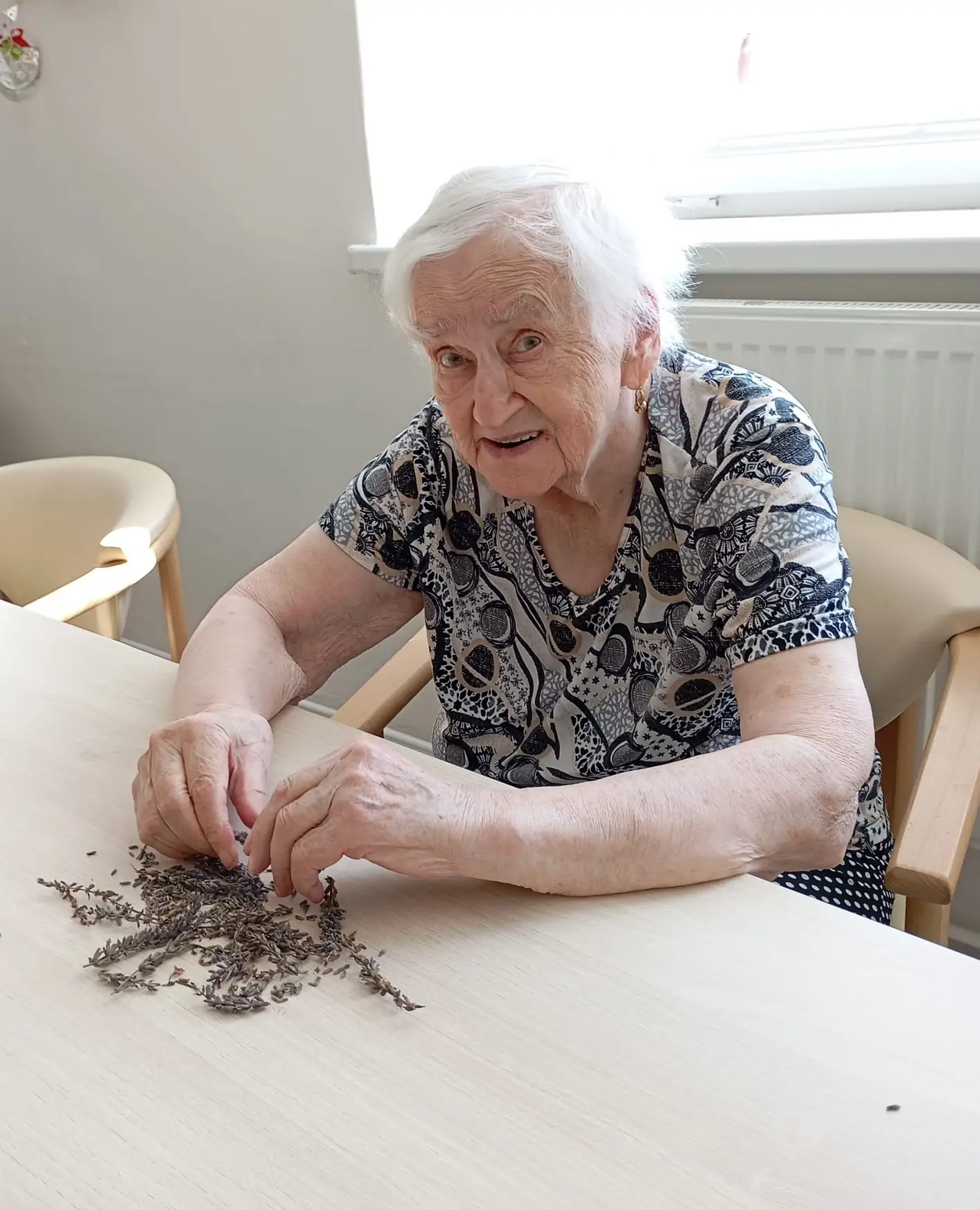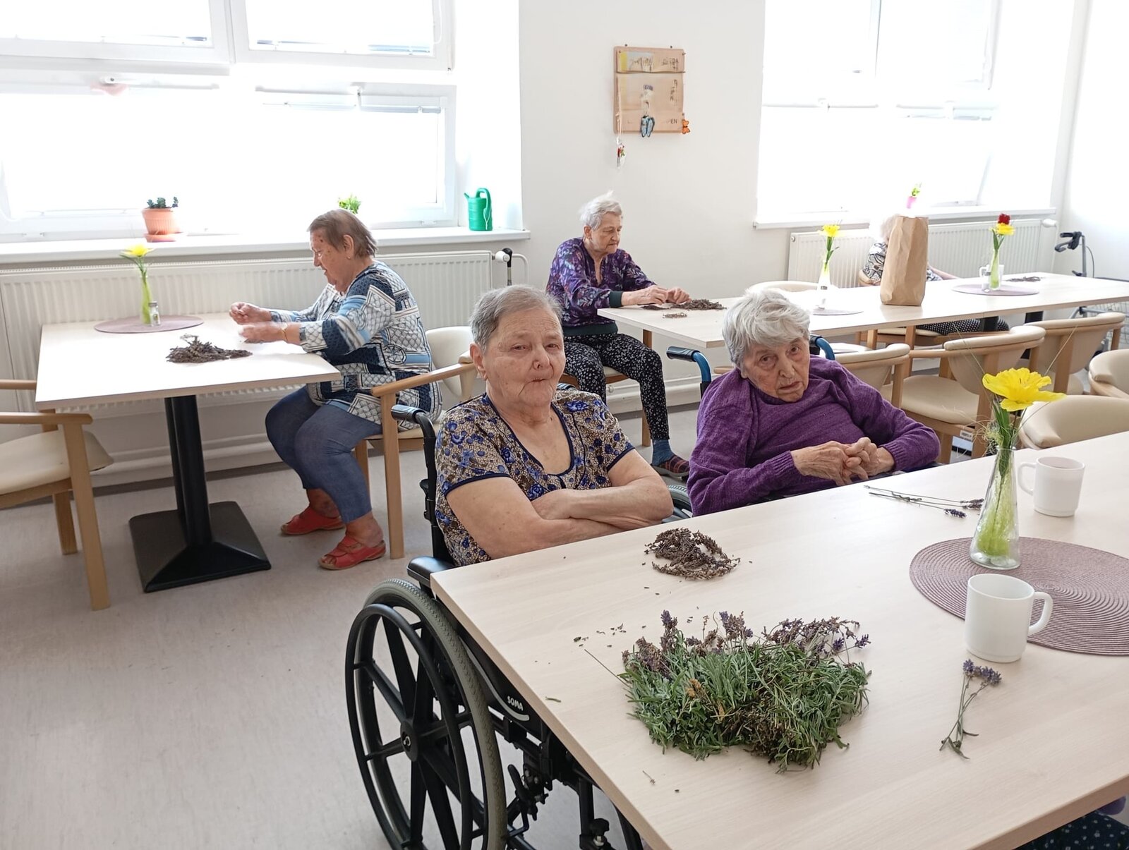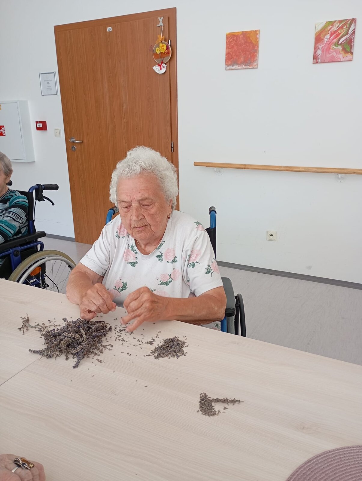 S klienty Senevida Jablunkov společně zpracováváme letošní úrodu levandule. V dalších dnech s ní budeme plnit látkové sáčky, které nám budou připomínat letní čas a provoní náš domov. Celou aktivitu propojujeme se smyslovou stimulací – klienti si užívají vůni, dotek i barvu levandule. Povídáme si o vzpomínkách na zahrádky a při práci si pouštíme písně o květinách.