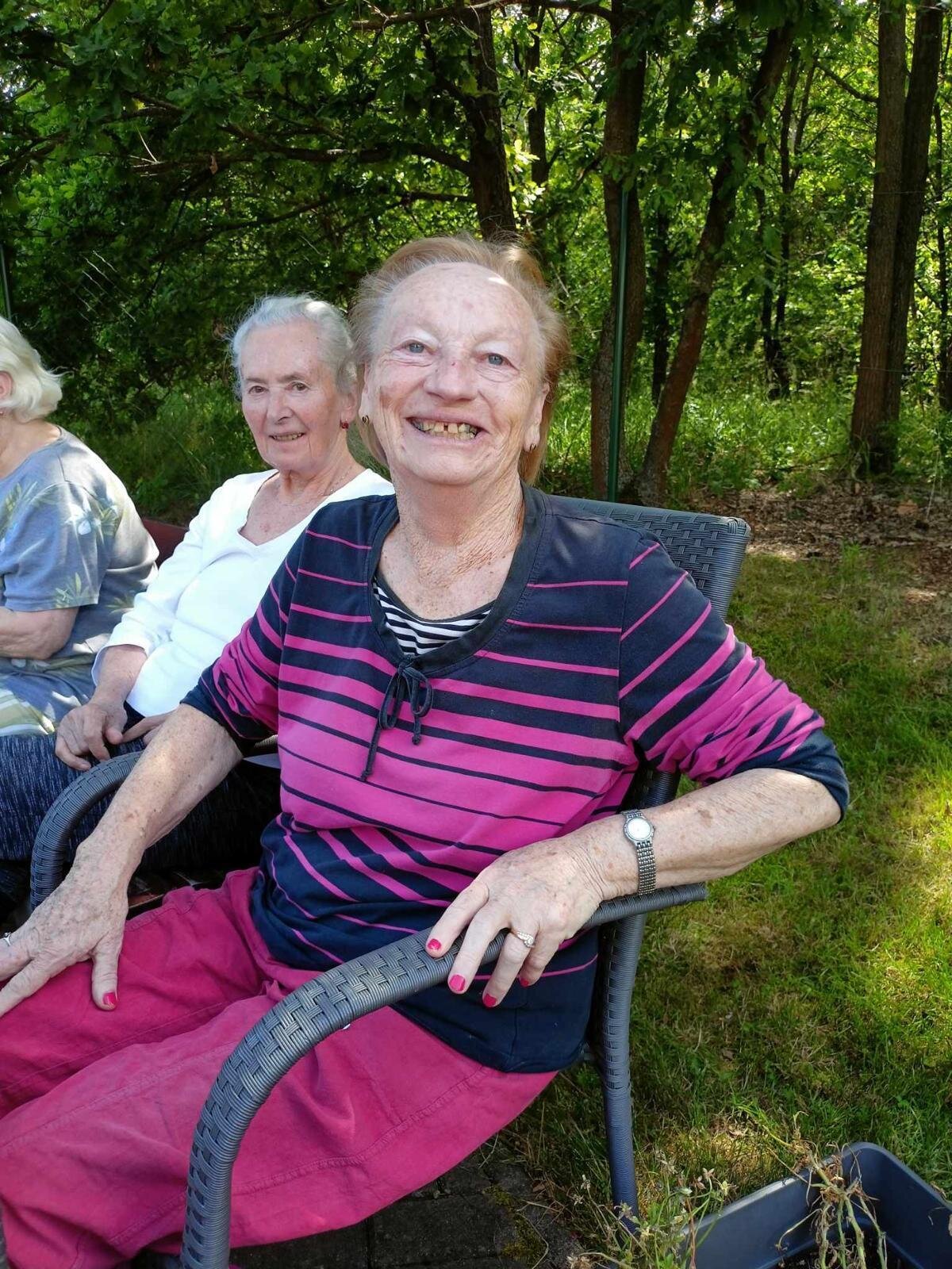 S klobouky na hlavě nás sluníčko netrápí a užíváme si, že neprší. Proč bychom nevyužili naši zahradu. Dá se tu krásně posedět a popovídat. :-)