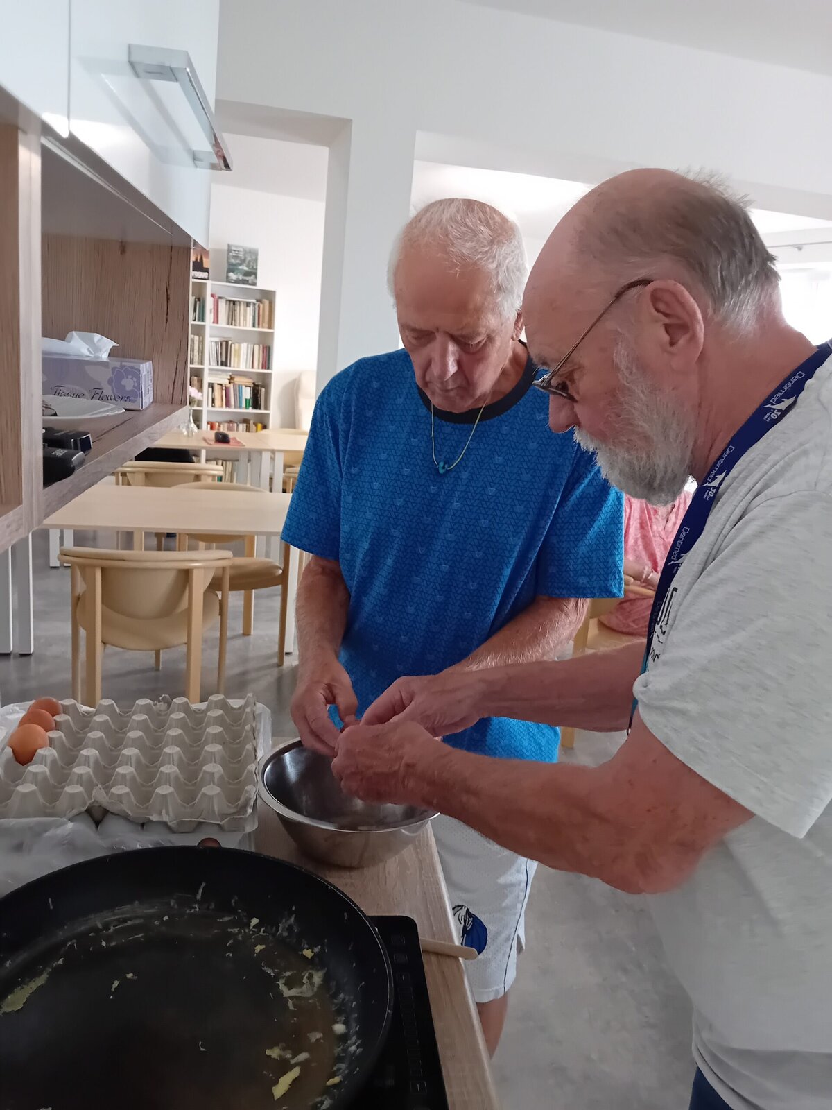 V rámci odpolední klubu jsme si dnes s klienty Senevida Kateřinice k odpolední svačině připravili vaječnou omeletu. Klienti si přípravu i samotné vaření moc užili.